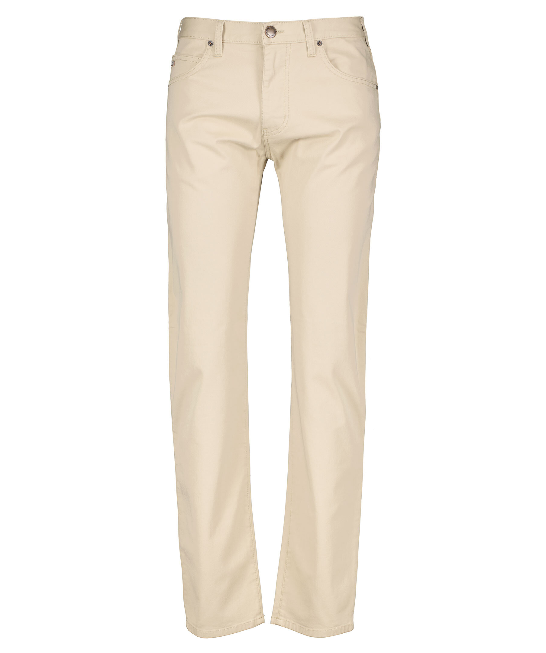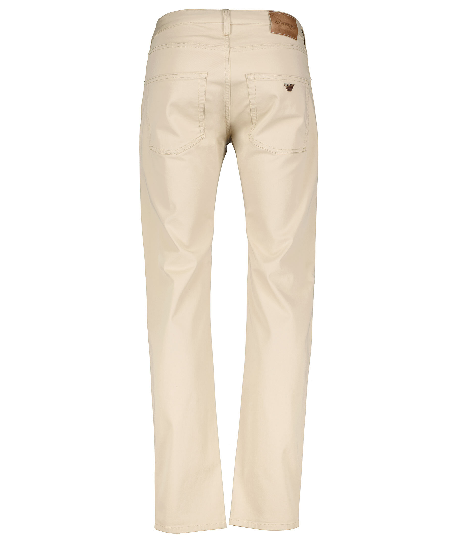 Beigea jeans i regular fit från Emporio Armani. Tillverkade i bomullsstretch. Femficksmodell, logotyp i metall på bakfickan och på den lilla fickan fram. Gylf med dold dragkedja och knapp samt hällor för bälte.