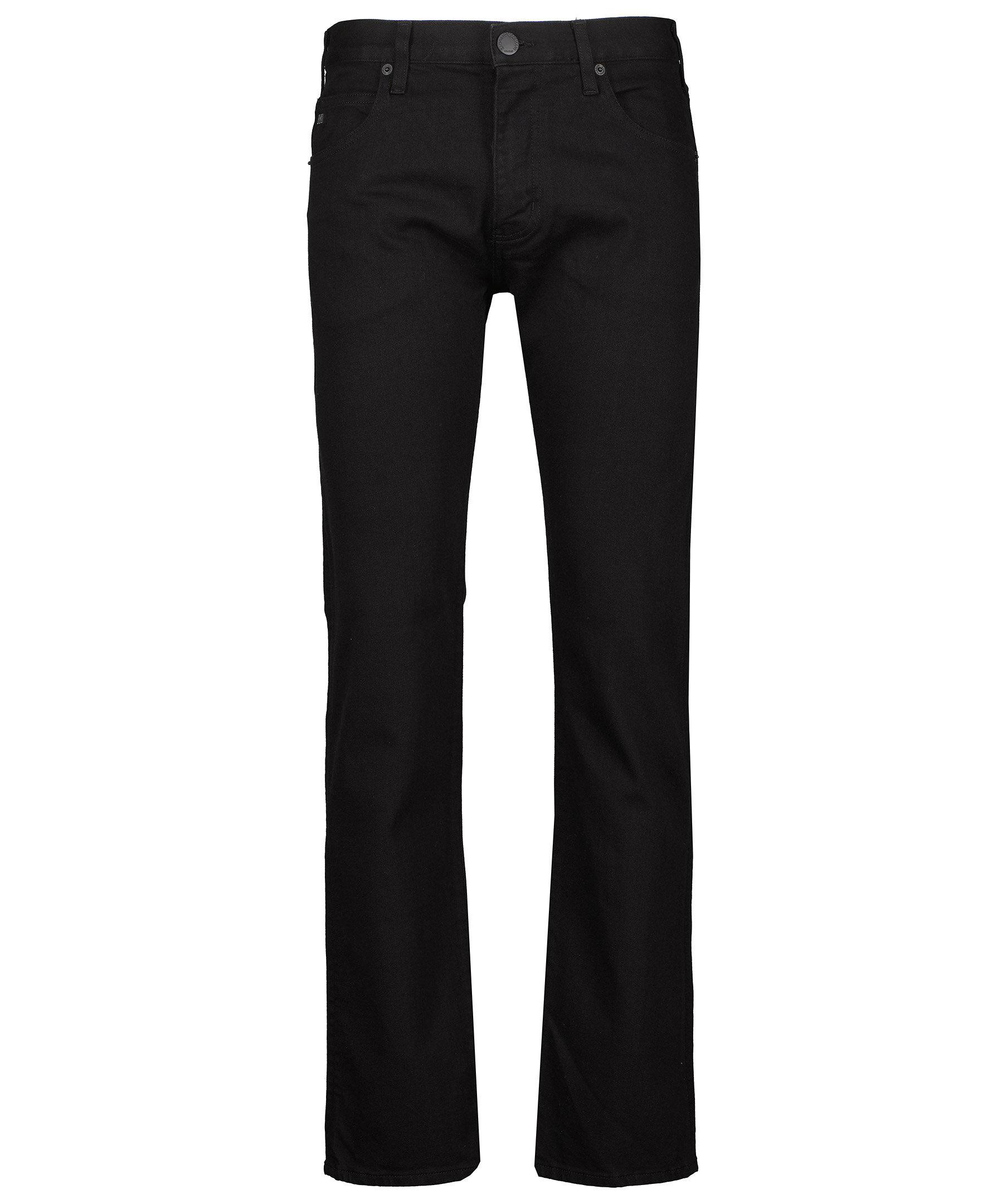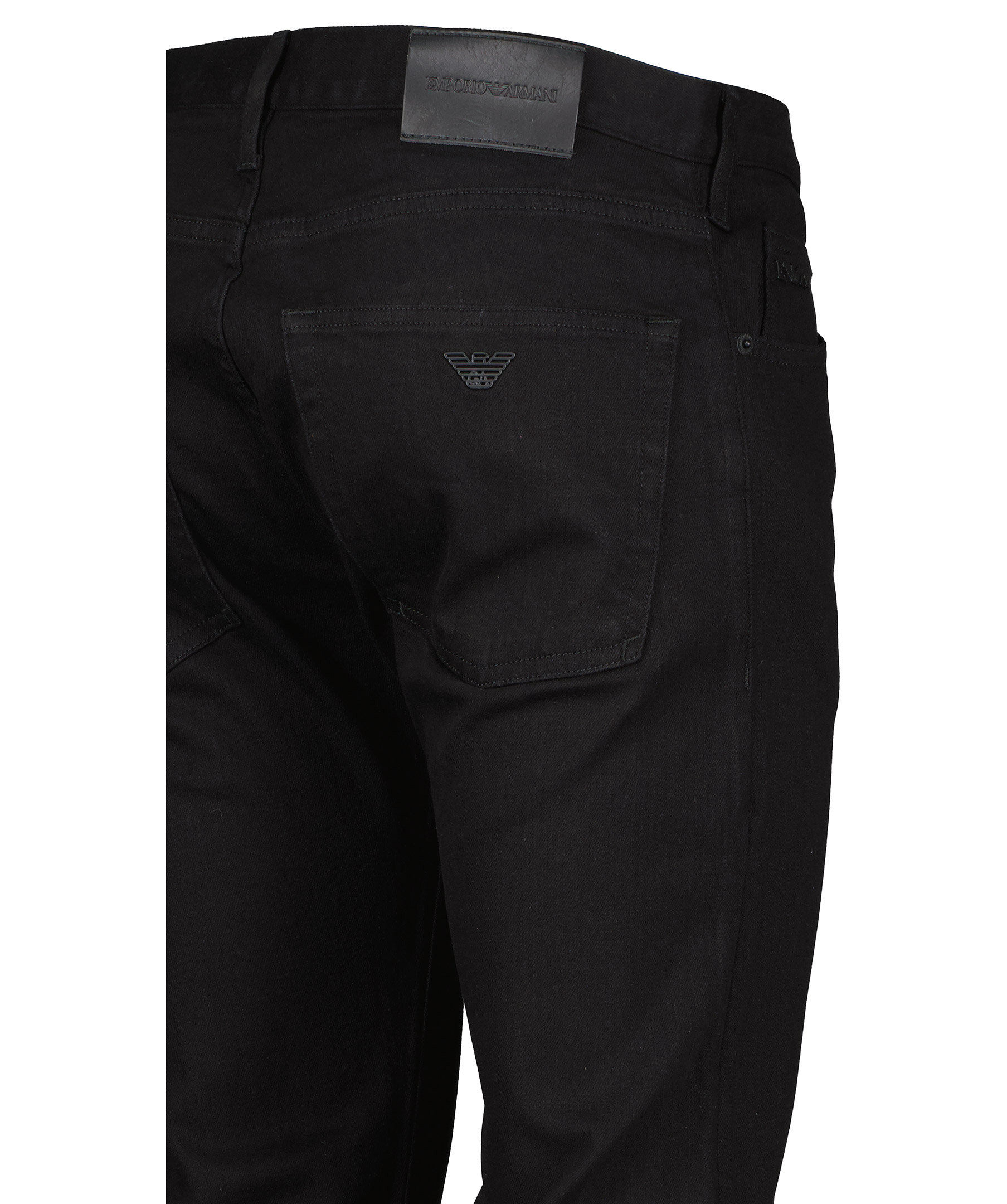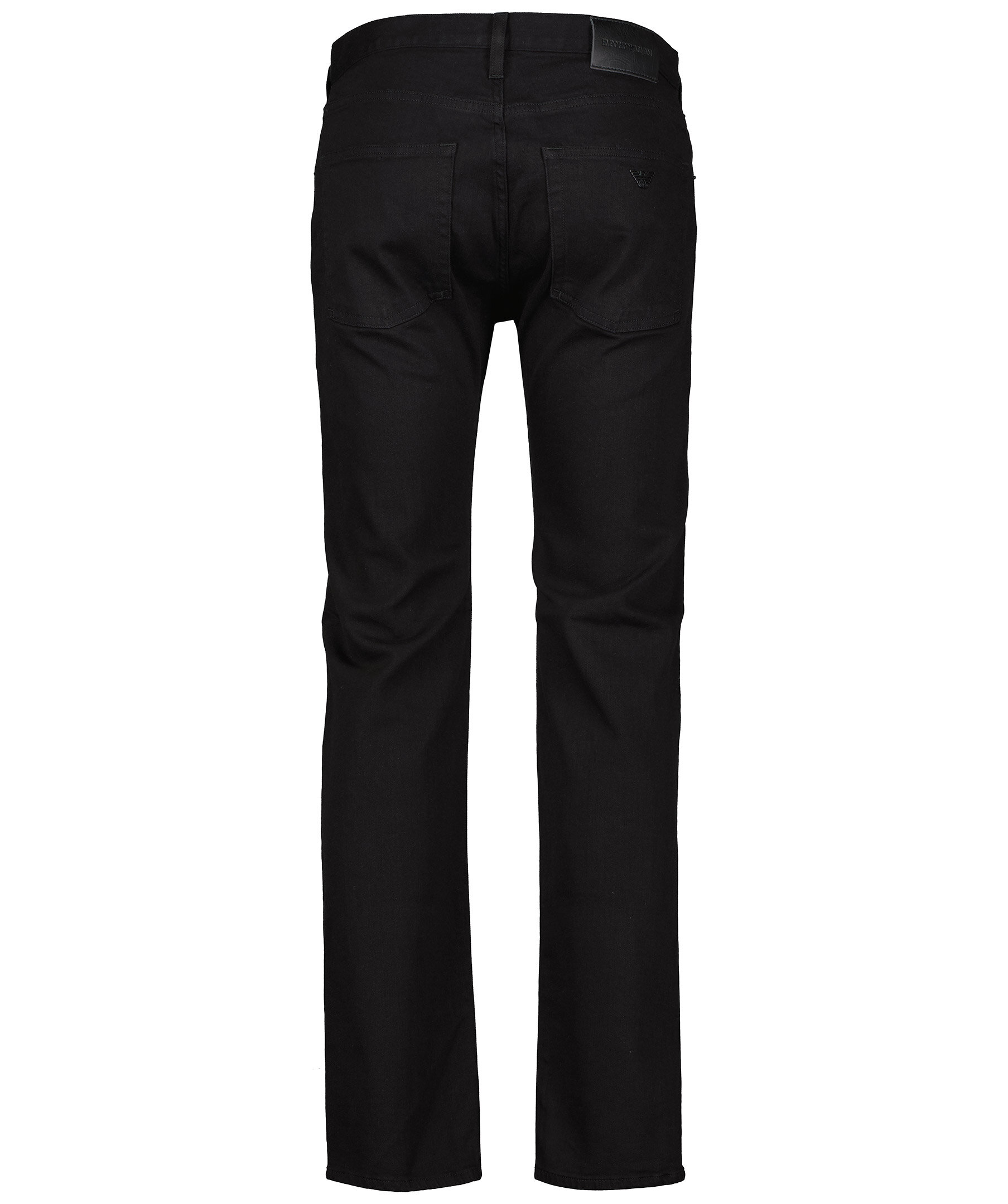 Svarta jeans i regular fit från Emporio Armani. Tillverkade i bomullsstretch. Femficksmodell, logotyp i metall på bakfickan och på den lilla fickan fram. Gylf med dold dragkedja och knapp samt hällor för bälte.