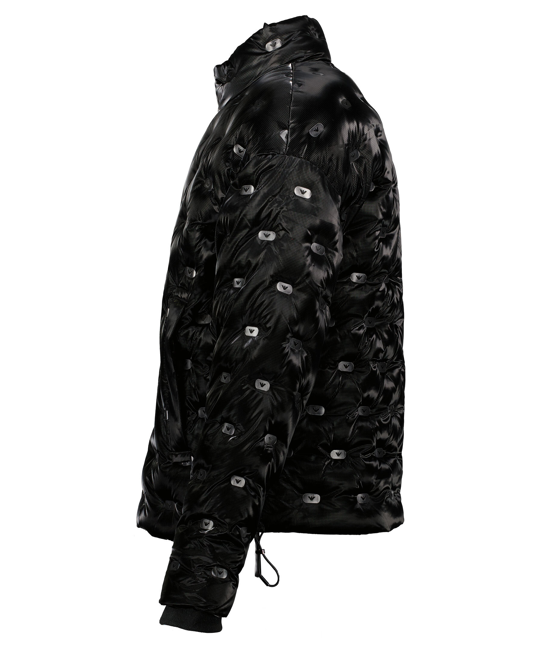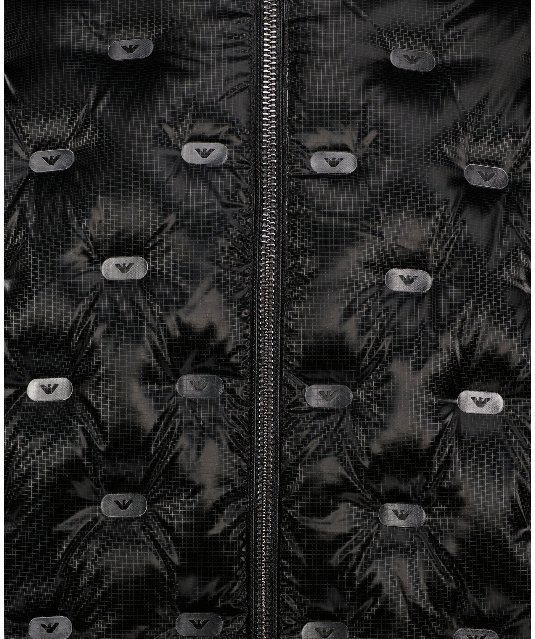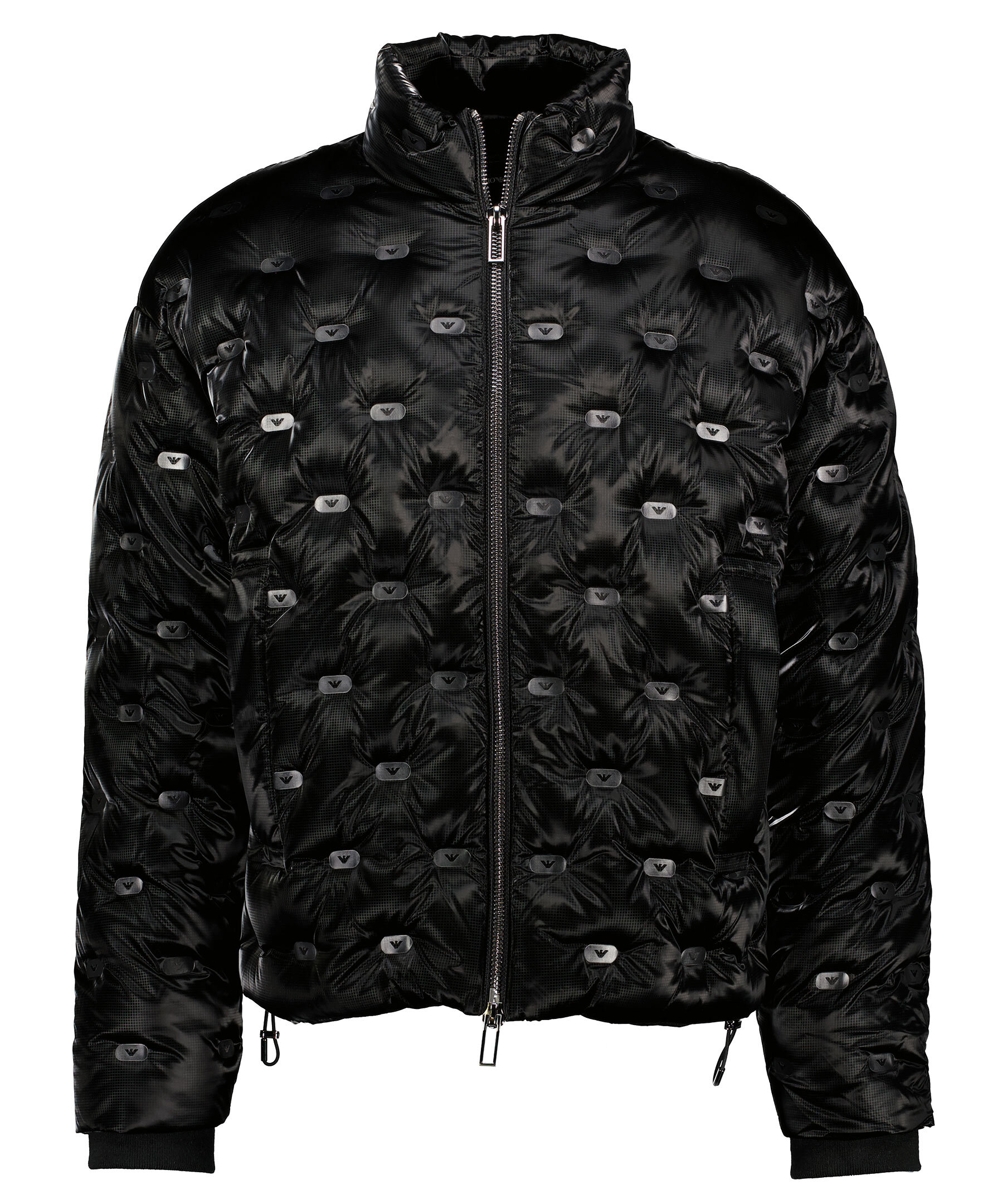 Svart, glansig jacka från Emporio Armani med genomgående logotyptryck på jackan. Tillverkad i 100% polyester. Jackan har två ytterfickor med dragkedja samt två innerfickor på vänster sida med dragkedja. Jackan stängs med tvåvägsdragkedja.
