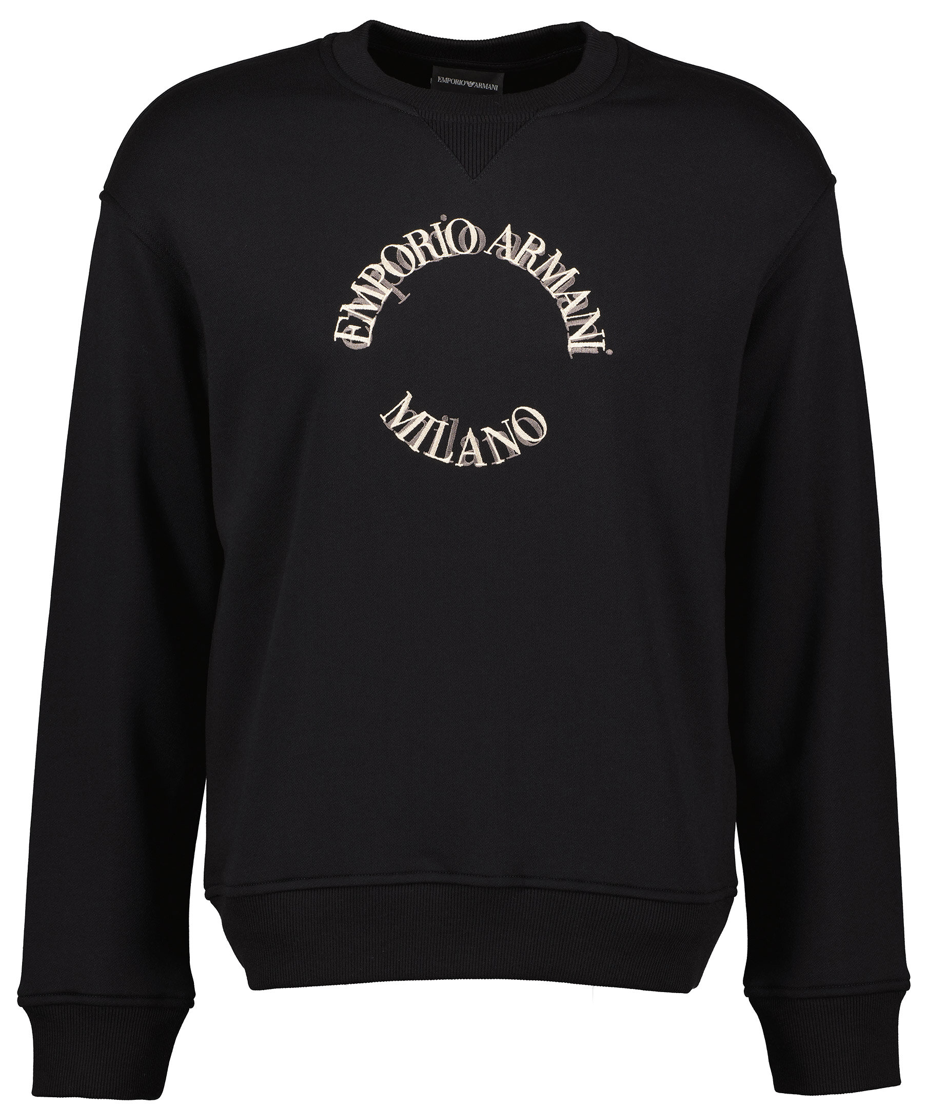 Svart sweatshirt från Emporio Armani. Stor brodyr på bröstet, rundad hals, muddar i ärmslut. Tillverkad i modal och bomull.