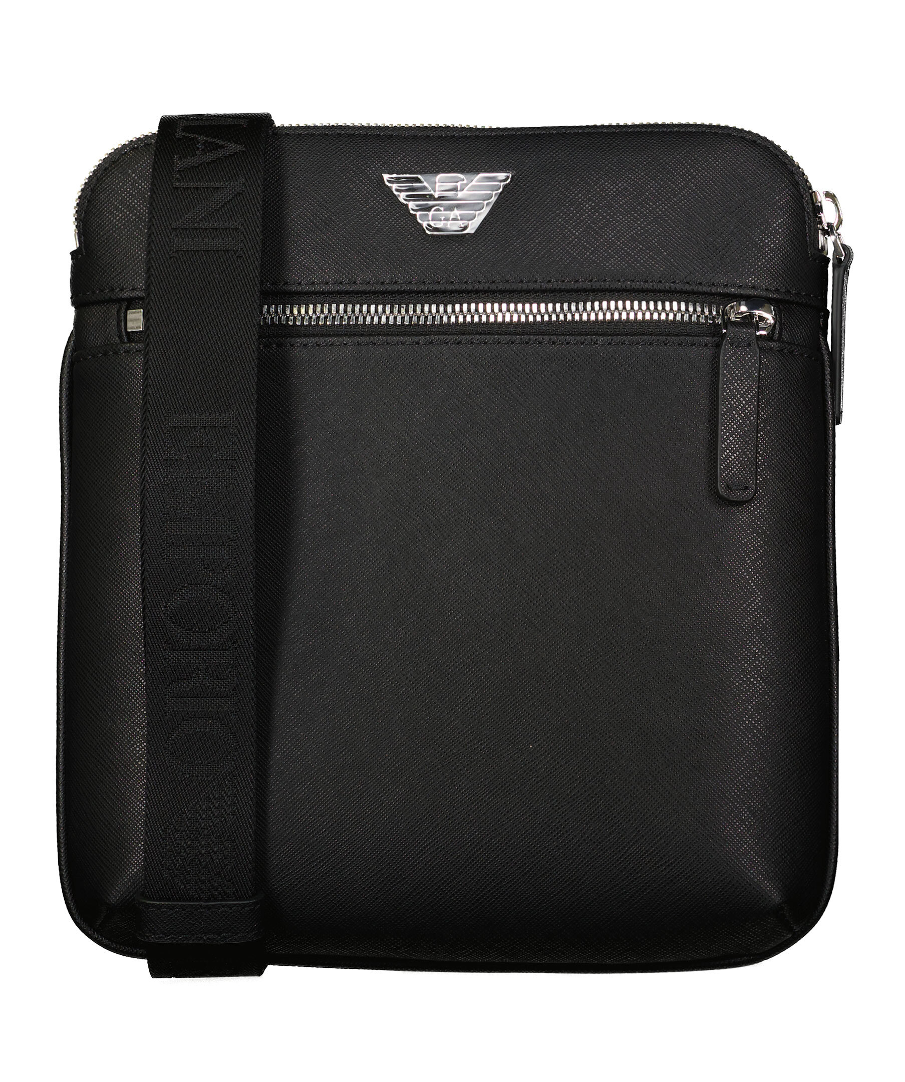 Svart väska i läder från Emporio Armani. Två fack som stängs med dragkedja. Innerfack med dragkedja.