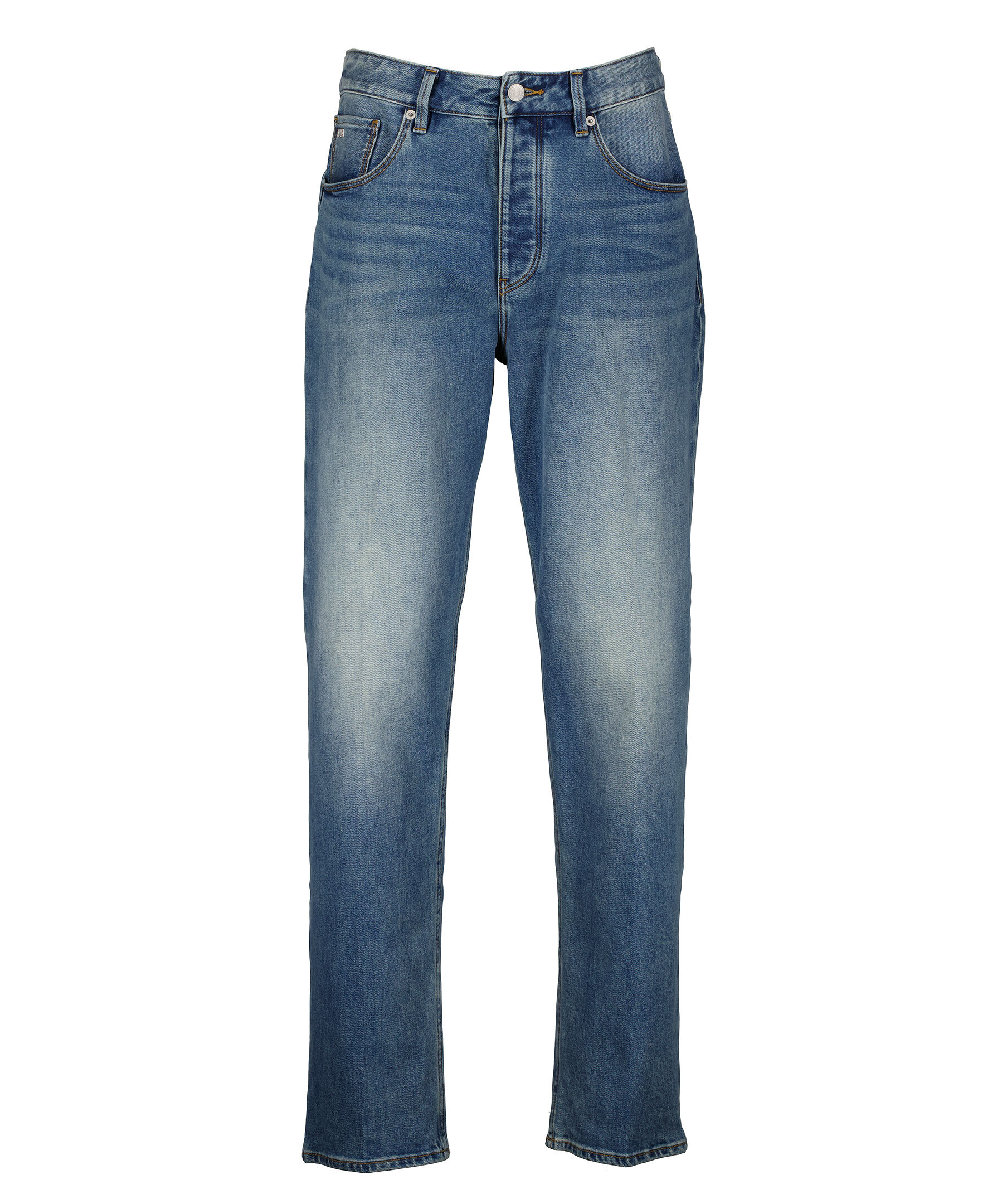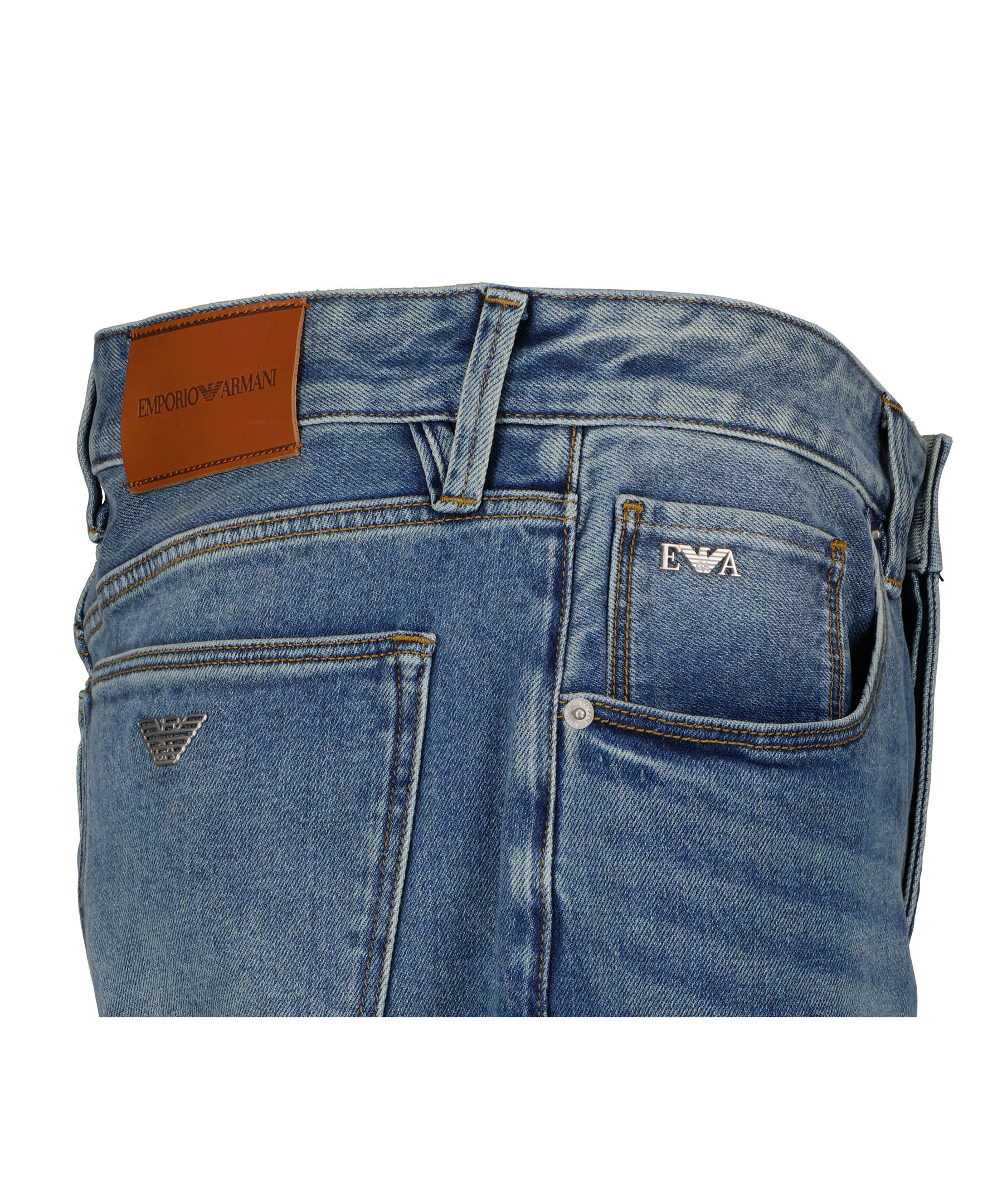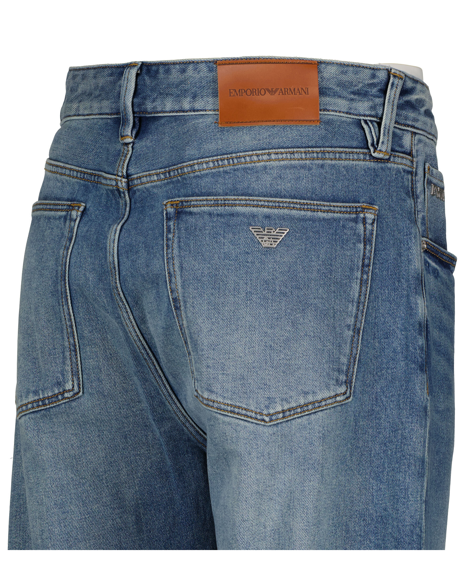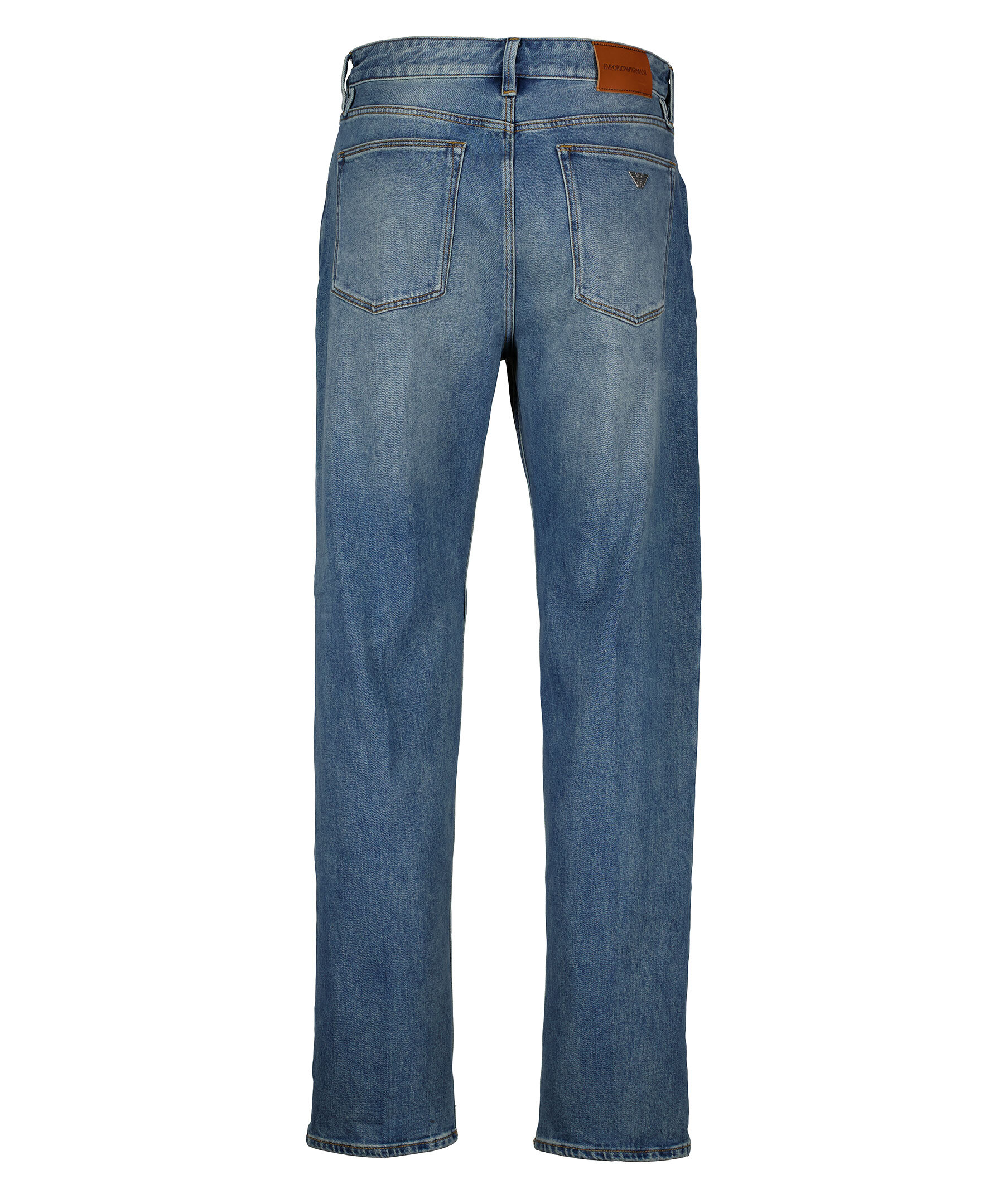 Blåa jeans från Emporio Armani i en rak modell. Tillverkade i en bomullsblandning. Fyra fickor samt en myntficka med en liten metallogotyp på. Metallogotyp på ena bakfickan.