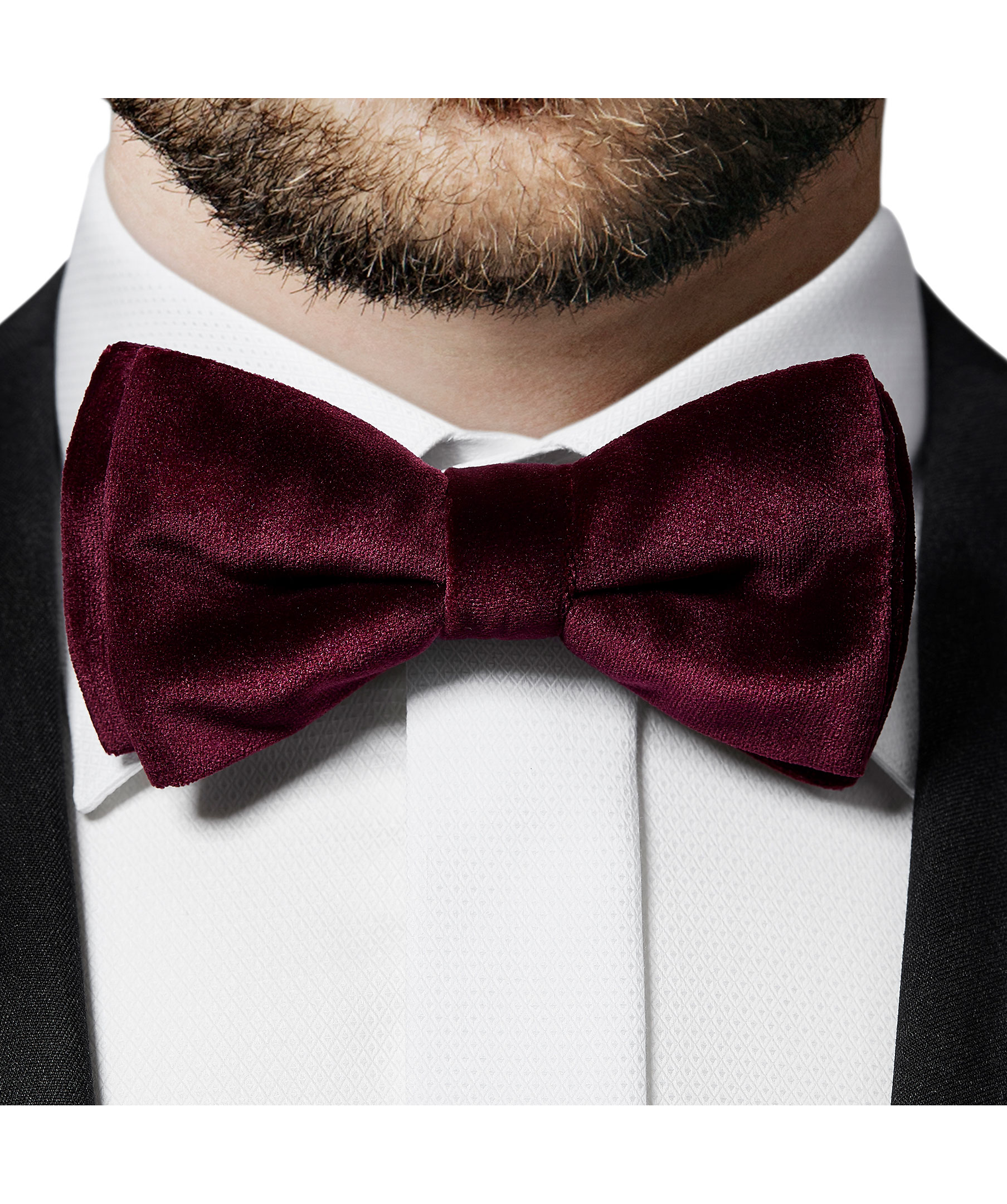 Mörkröd färdigknuten fluga i sammet från Eton. Tillverkad i polyester.
