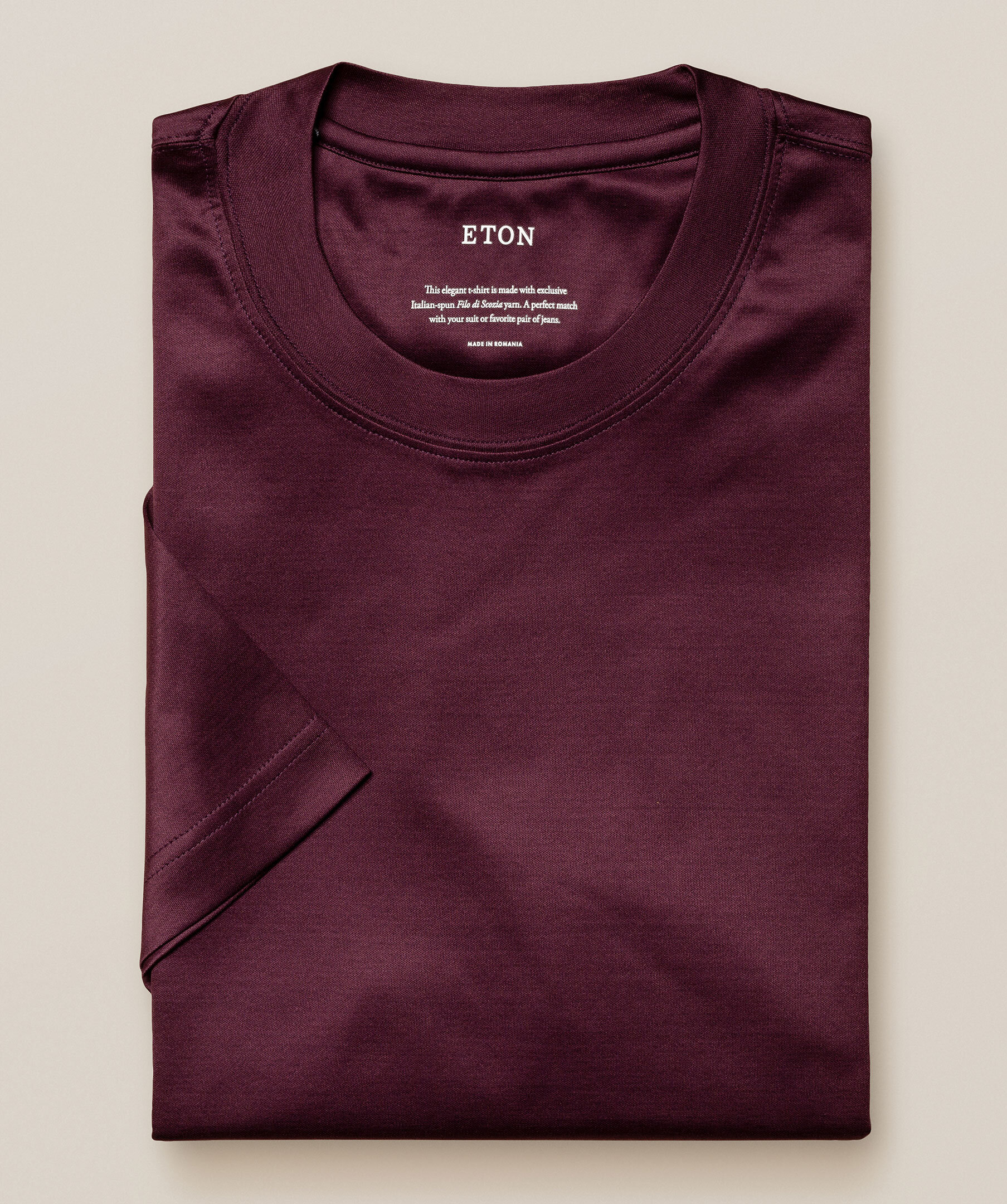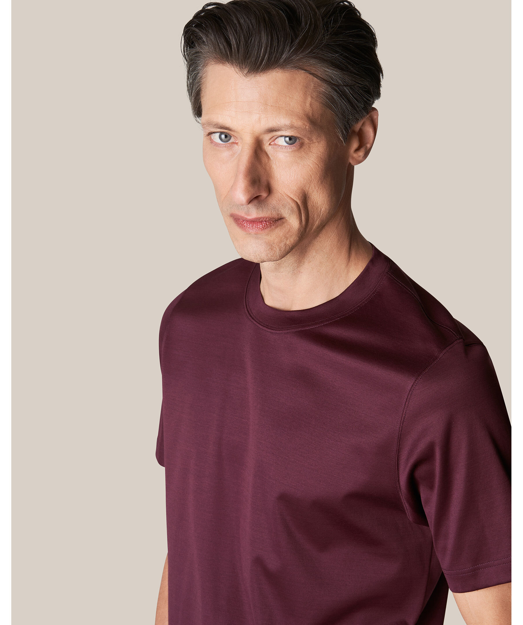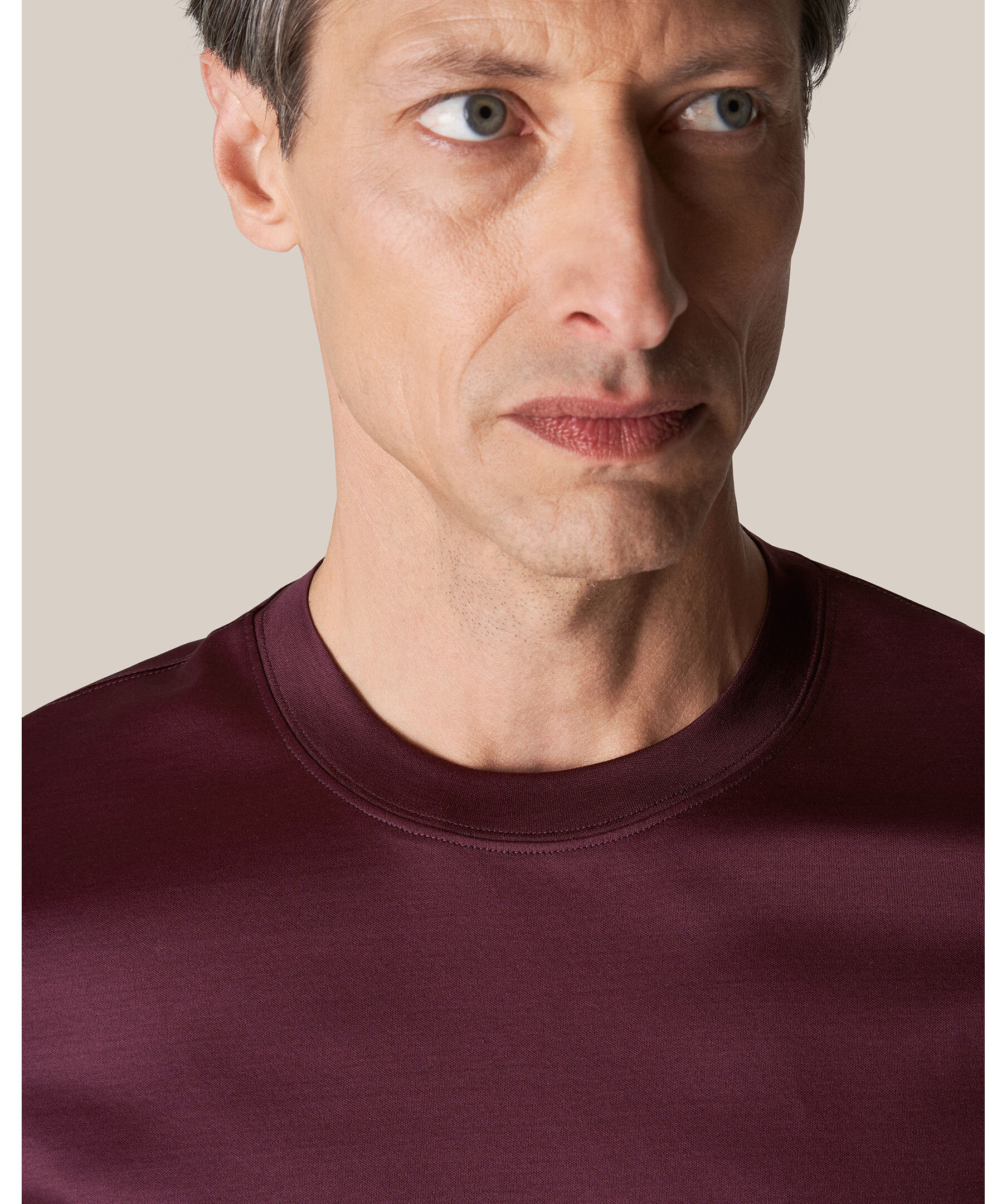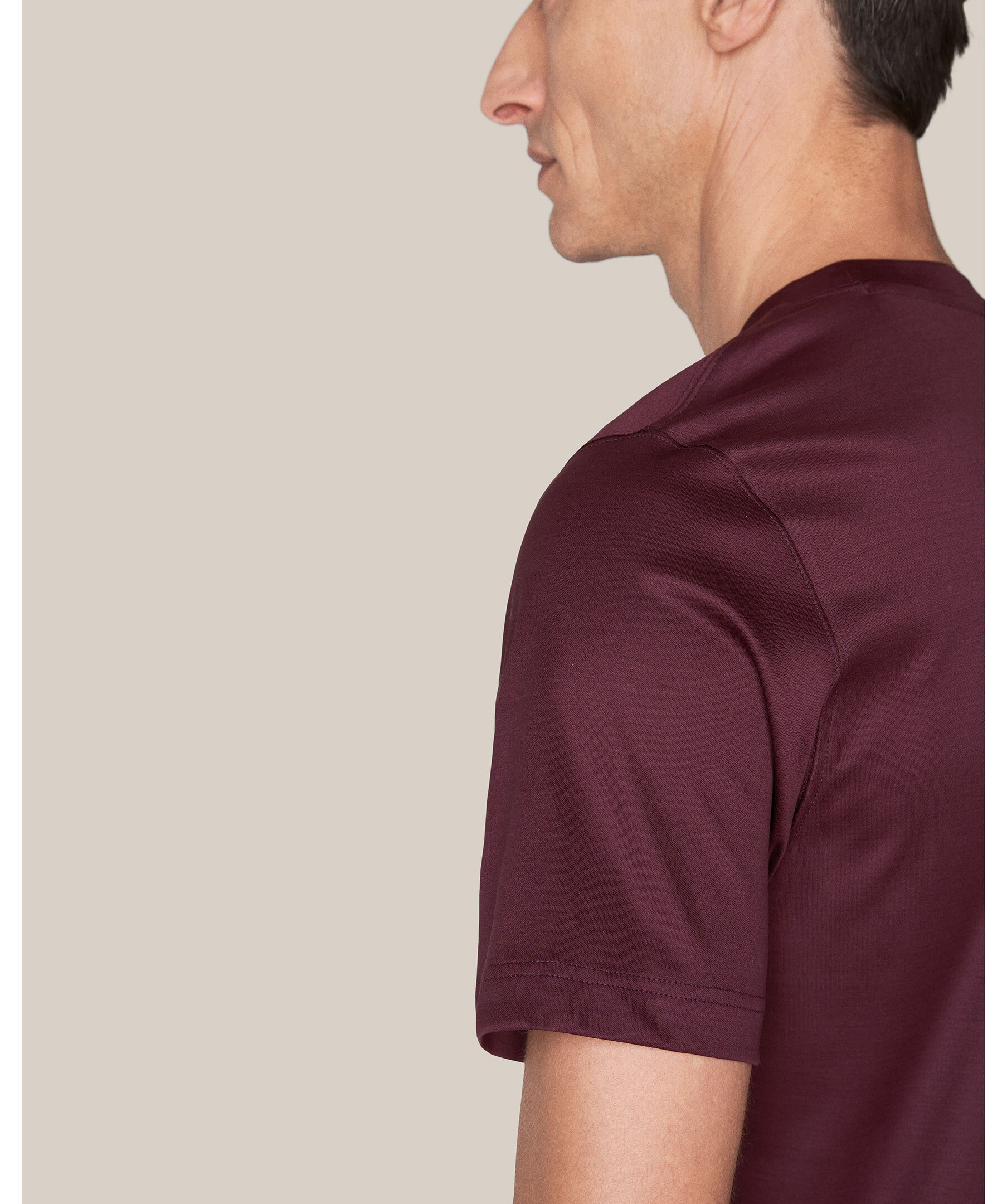 T-shirten med stort T ett smart lager på lager-plagg för en lyxig look och känsla. Ett av våra viktigaste plagg i basgarderoben med klassisk rundad krage i fyllig interlock-stickad jersey. Det supermjuka tyget är ett rent nöje att ha på sig. Med tekniken dubbelmercerisering ger Filo di Scozia-garnet en lyxig glans åt t-shirten.