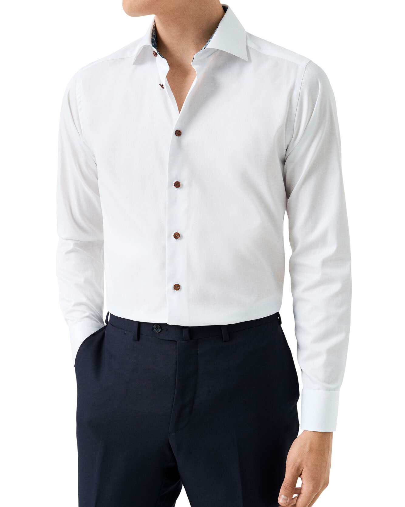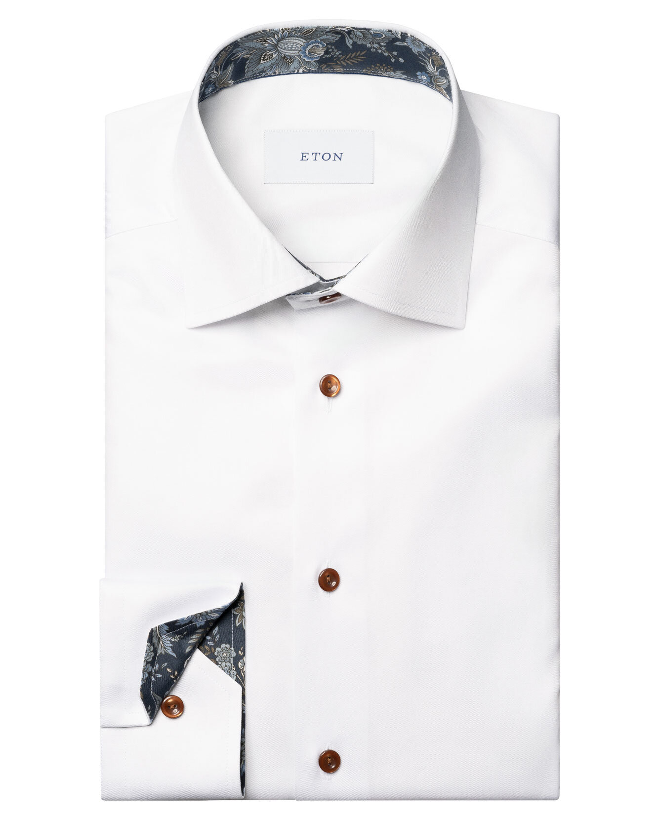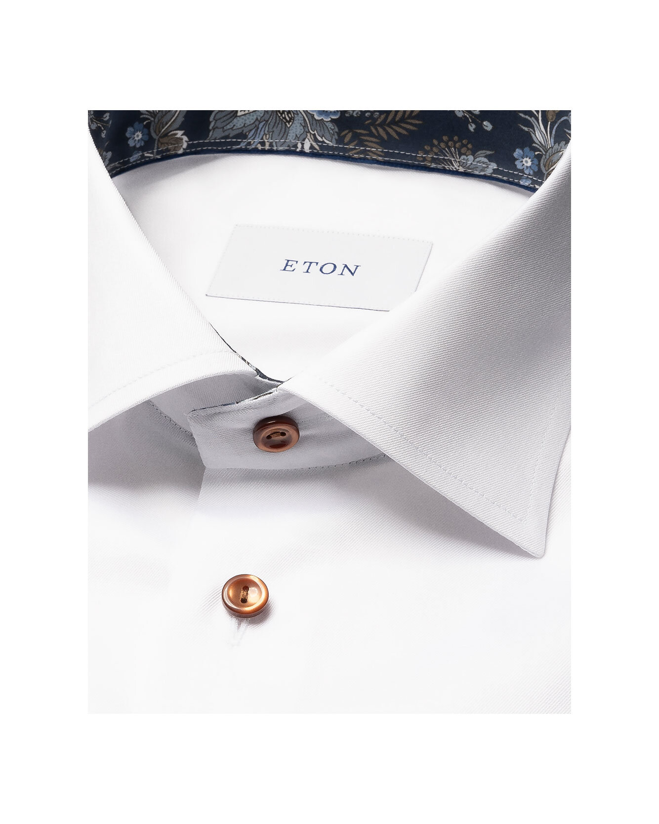 Business shirt med cut away-krage från Eton. Enkel manschett. Floralmönstrad avigsida. Vid passform (contemporary fit).