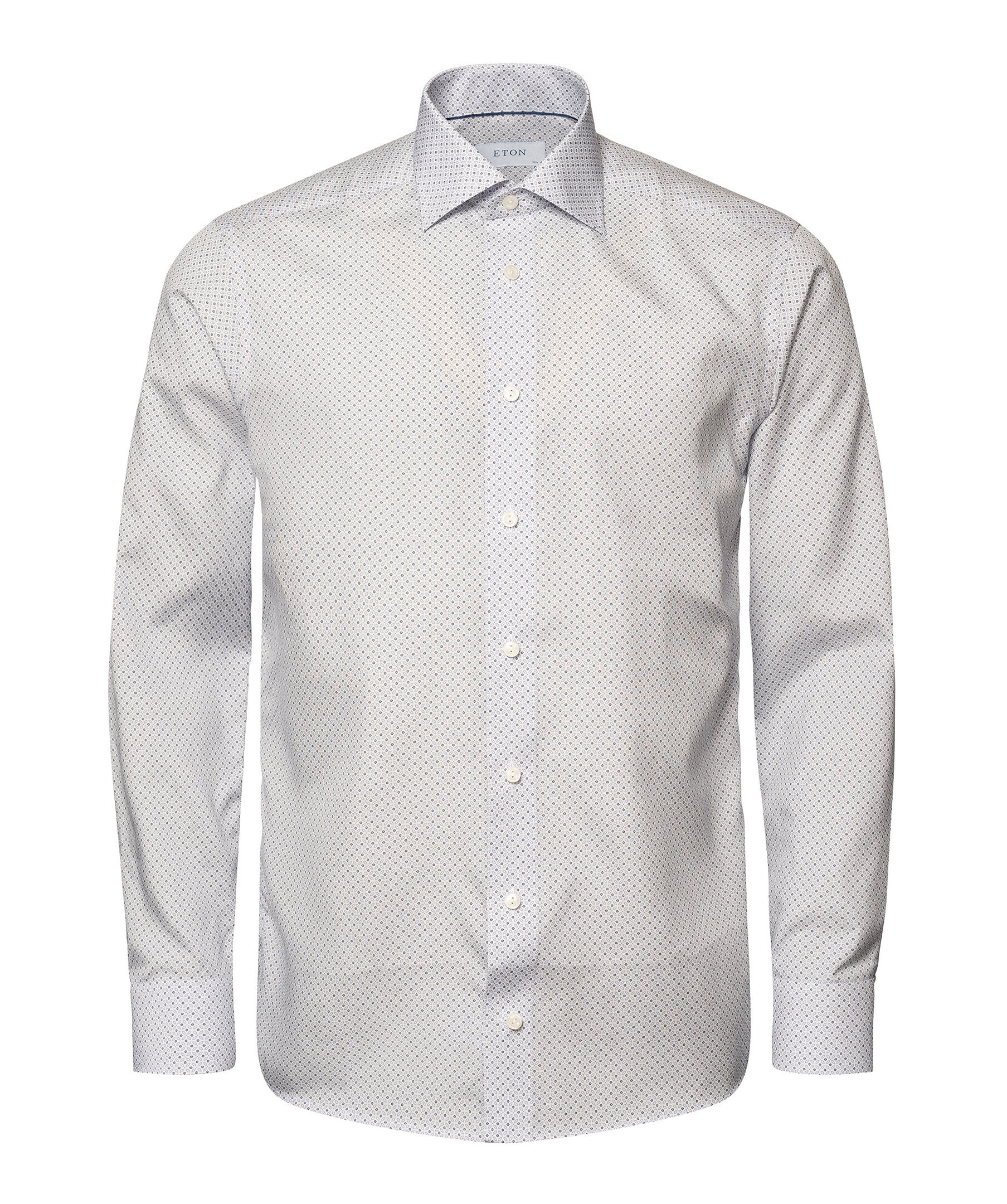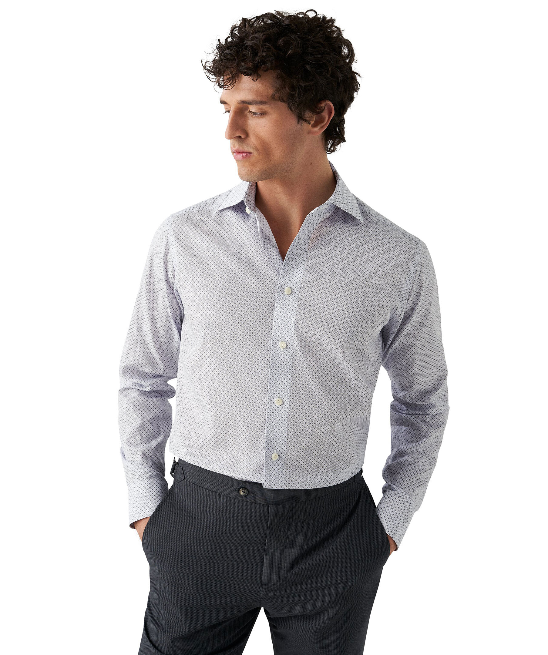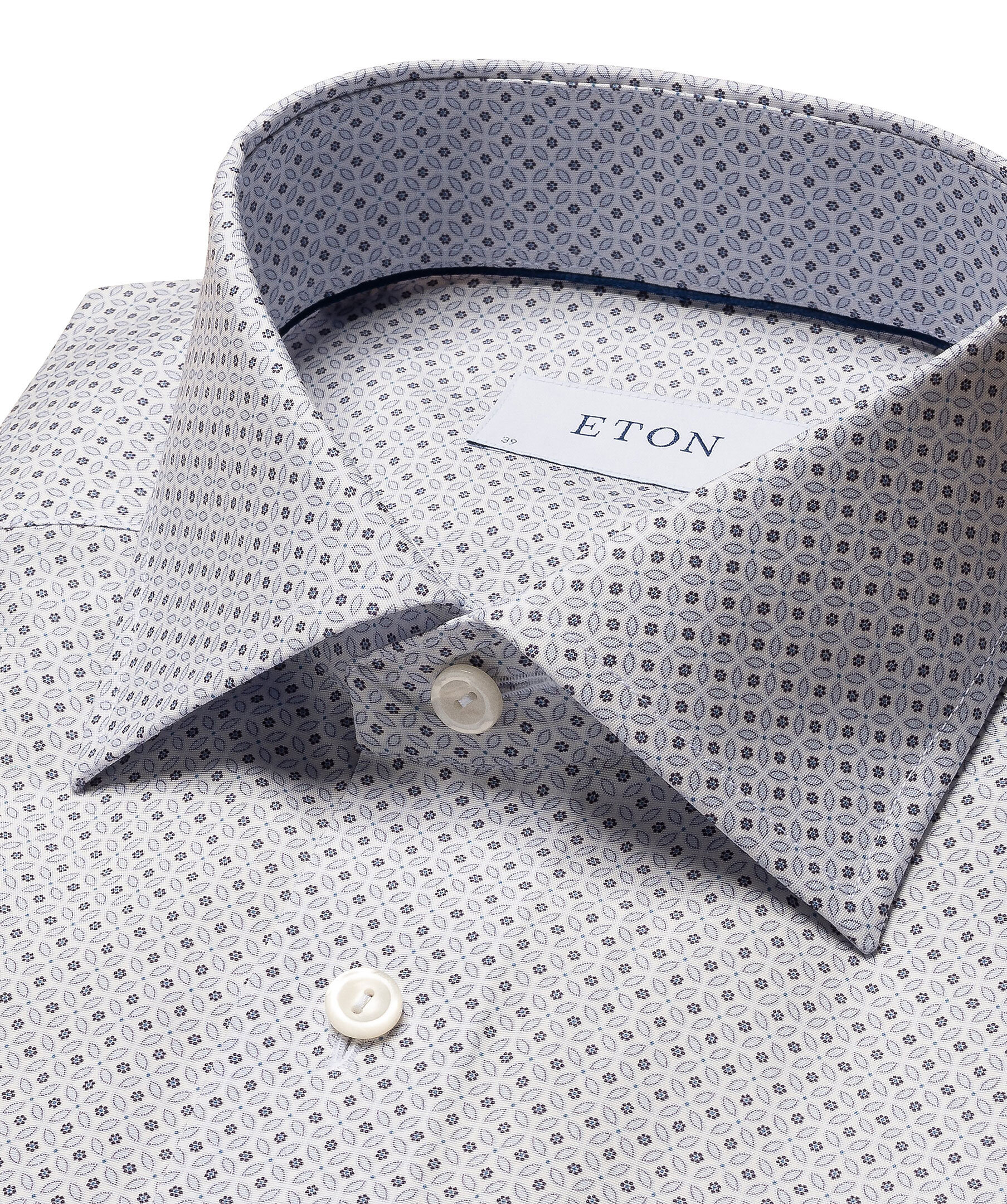 En tidlös kostymskjorta i 100 % bomull med ett diskret blommigt mikromönster tryckt på vårt Signature Poplin-tyg för en krispig look och känsla med fina detaljer. Ett mångsidigt nyckelplagg med cut away-krage och rundade, enkla manschetter. – 100 % bomull.