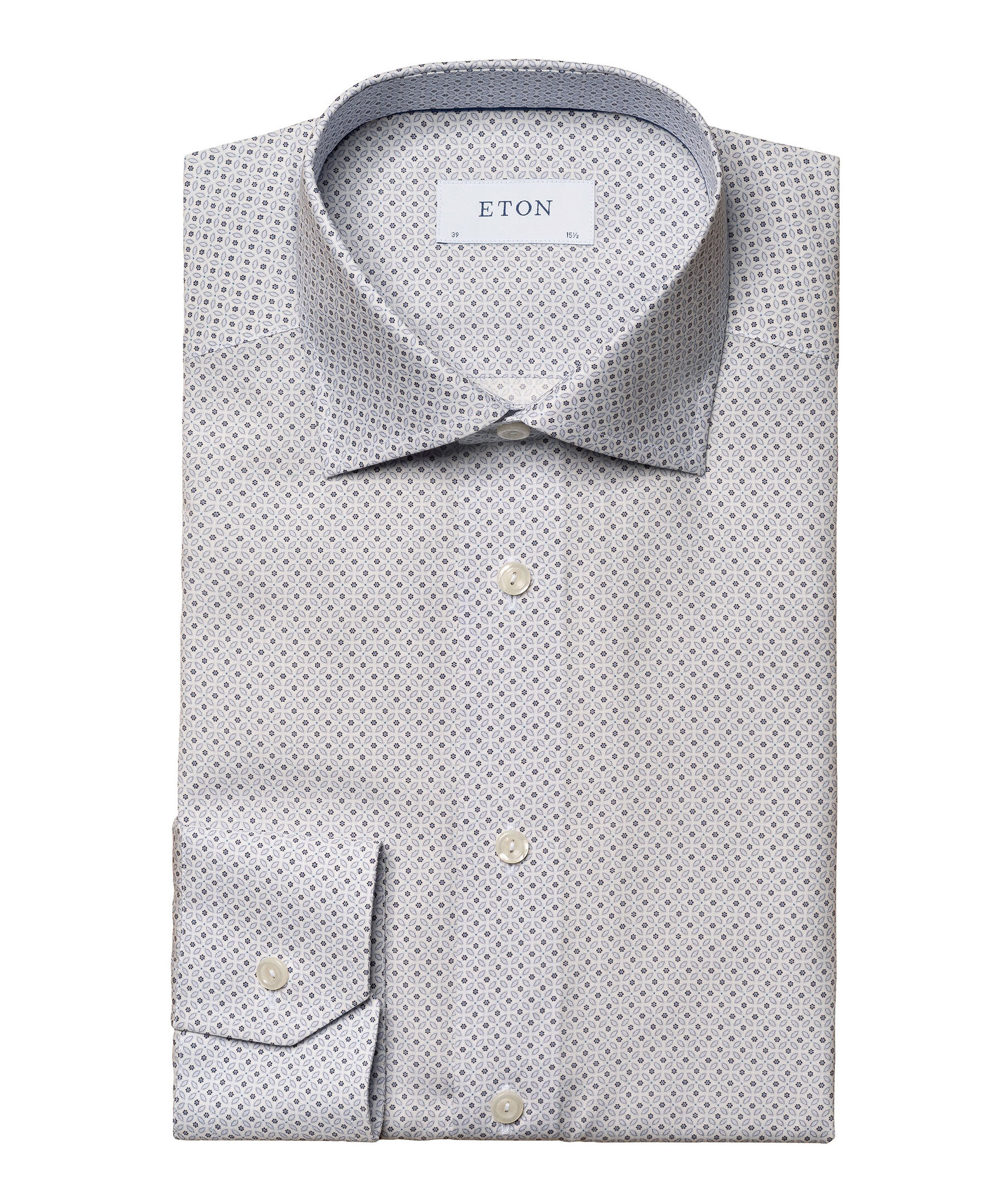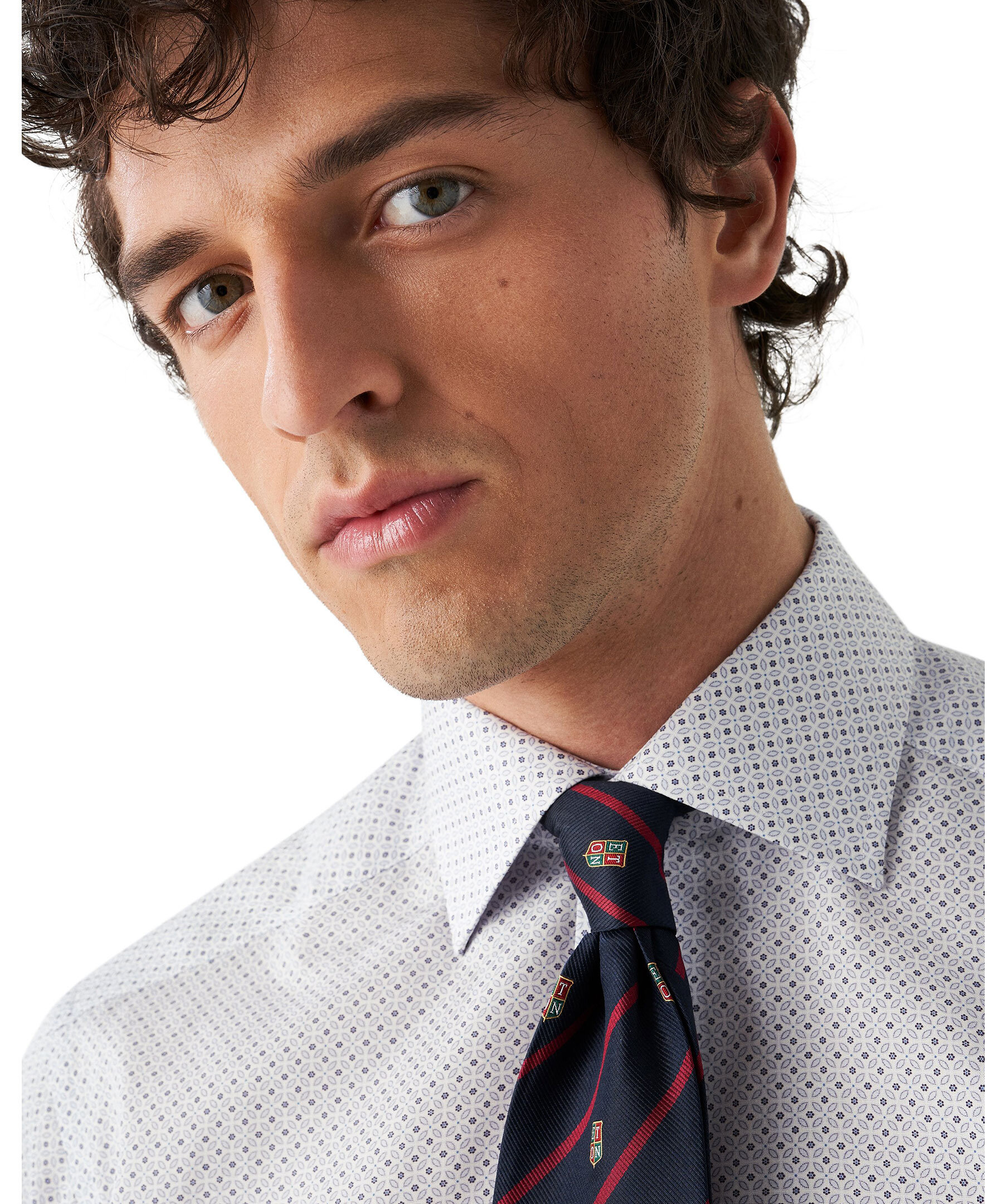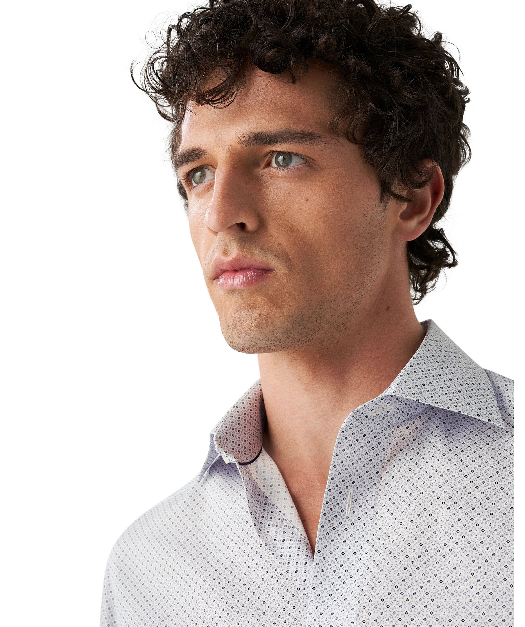 En tidlös kostymskjorta i 100 % bomull med ett diskret blommigt mikromönster tryckt på vårt Signature Poplin-tyg för en krispig look och känsla med fina detaljer. Ett mångsidigt nyckelplagg med cut away-krage och rundade, enkla manschetter. – 100 % bomull.
