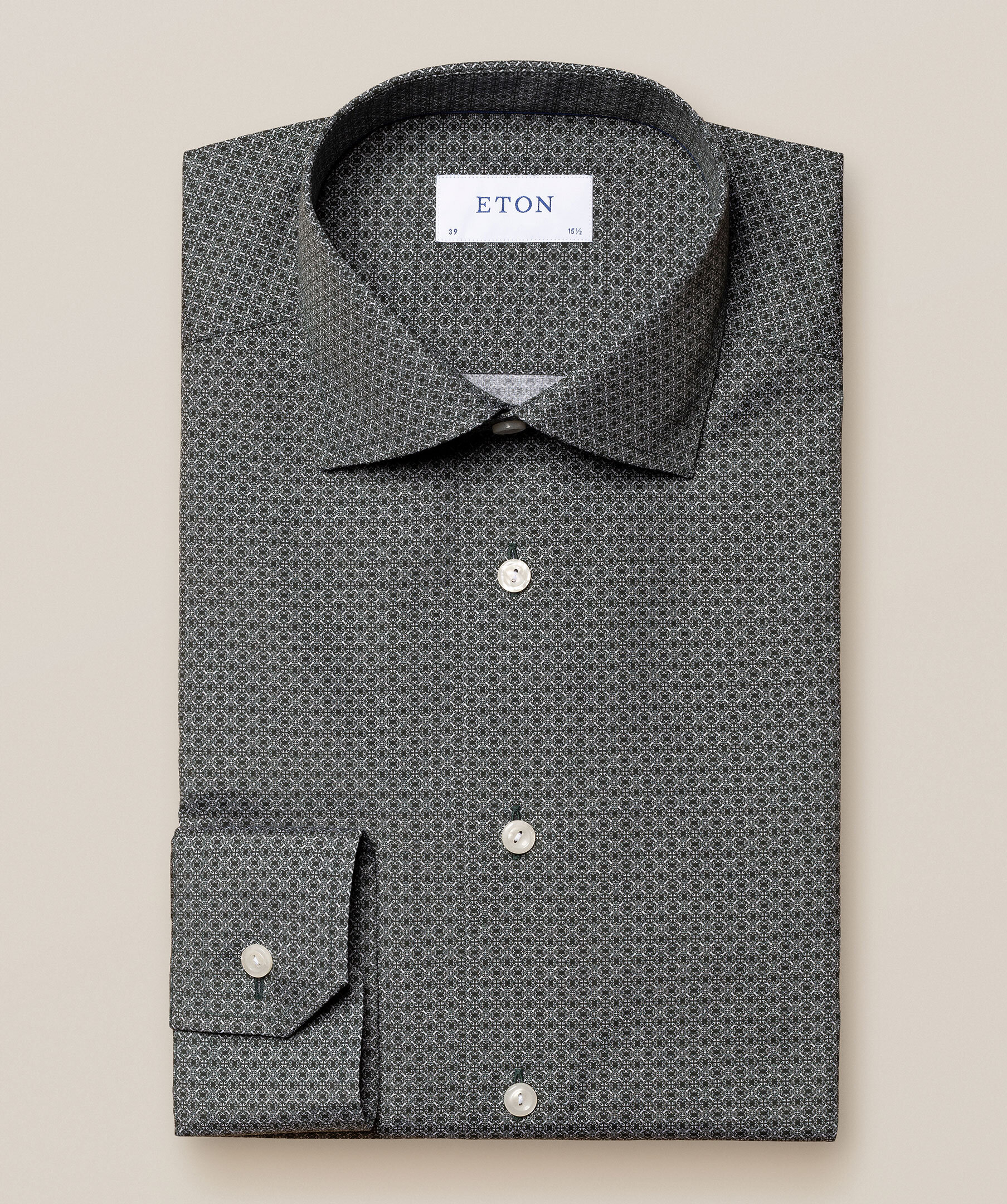 Skjorta i Etons Signature poplin med ett elegant geometriskt mönster. Ett oslagbart val i genren modern businessklädsel.