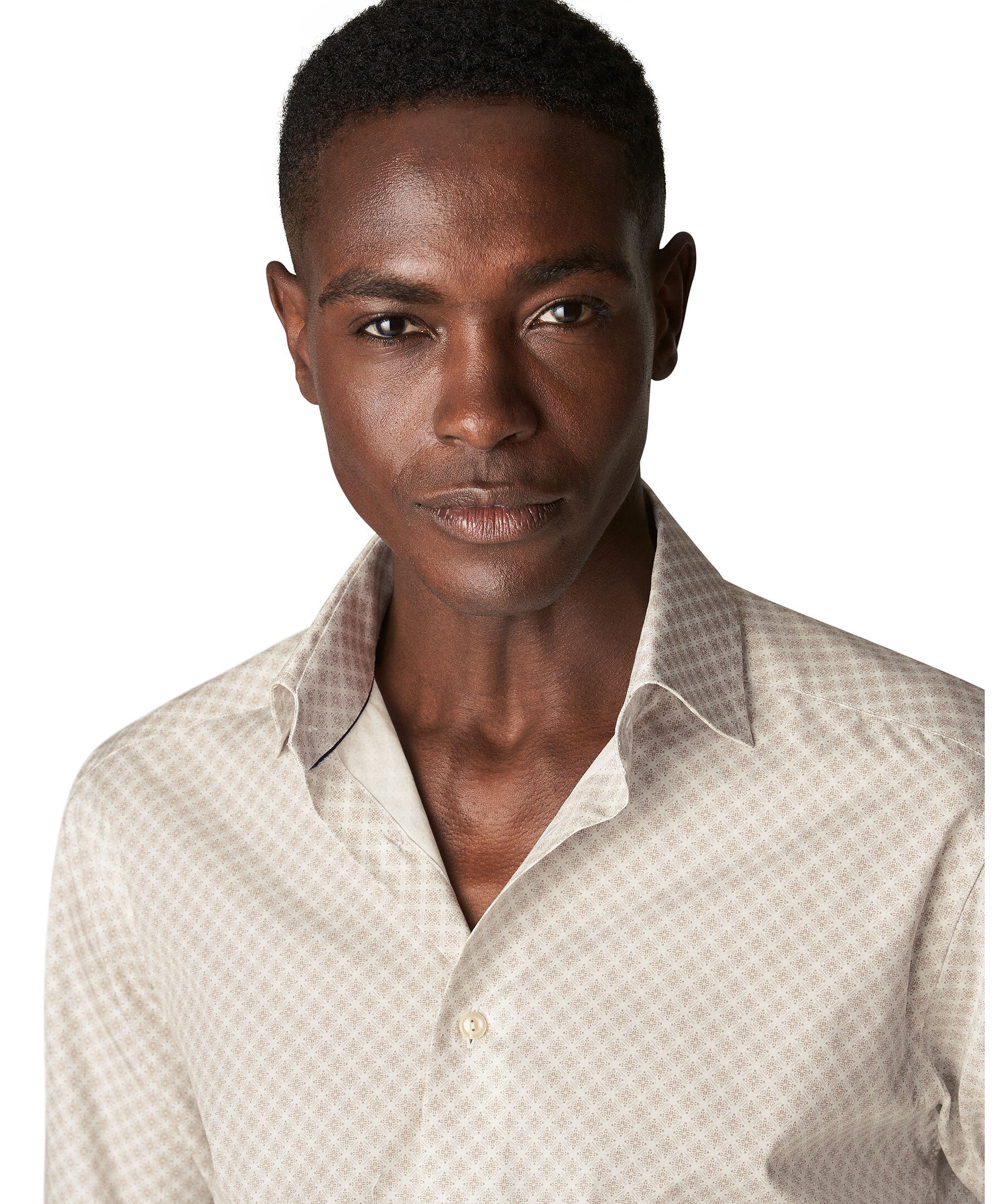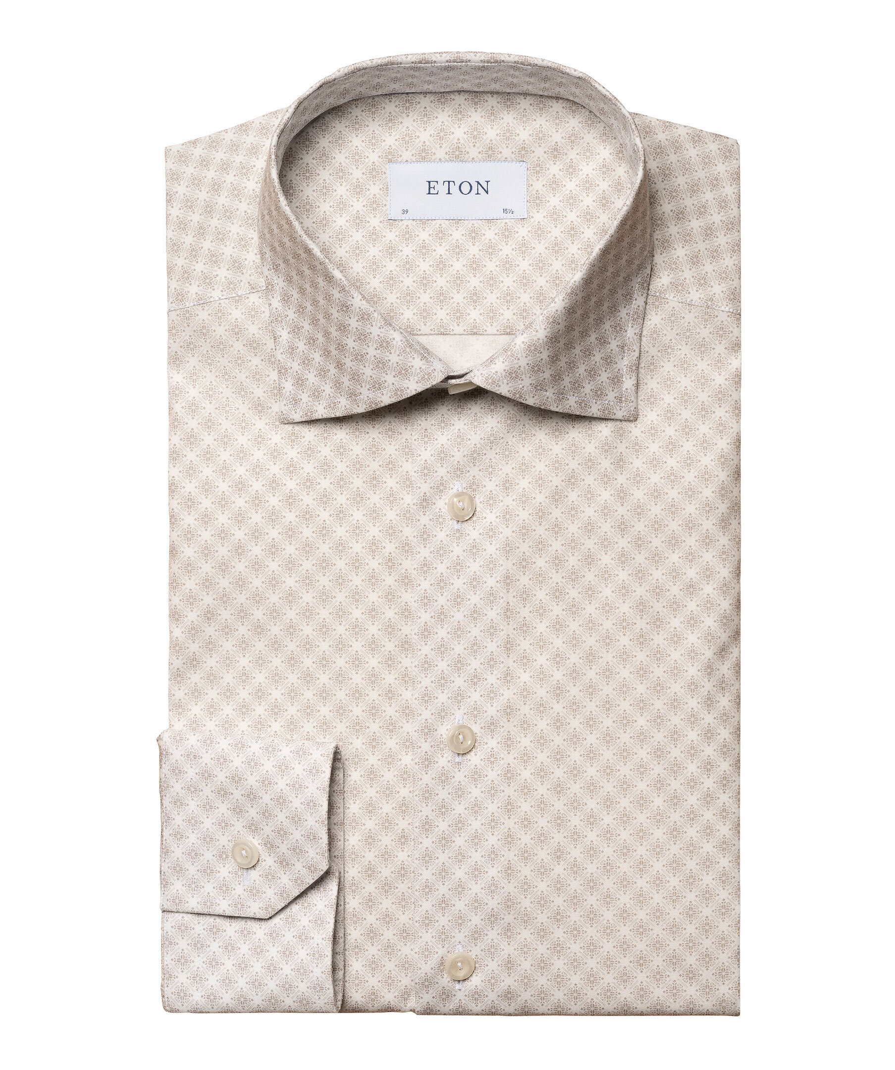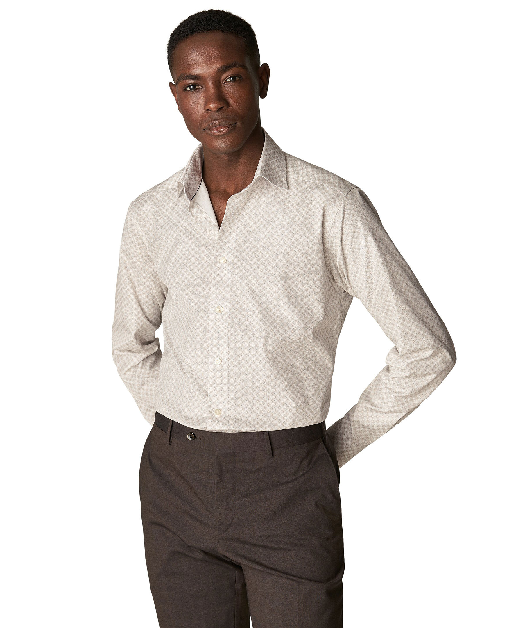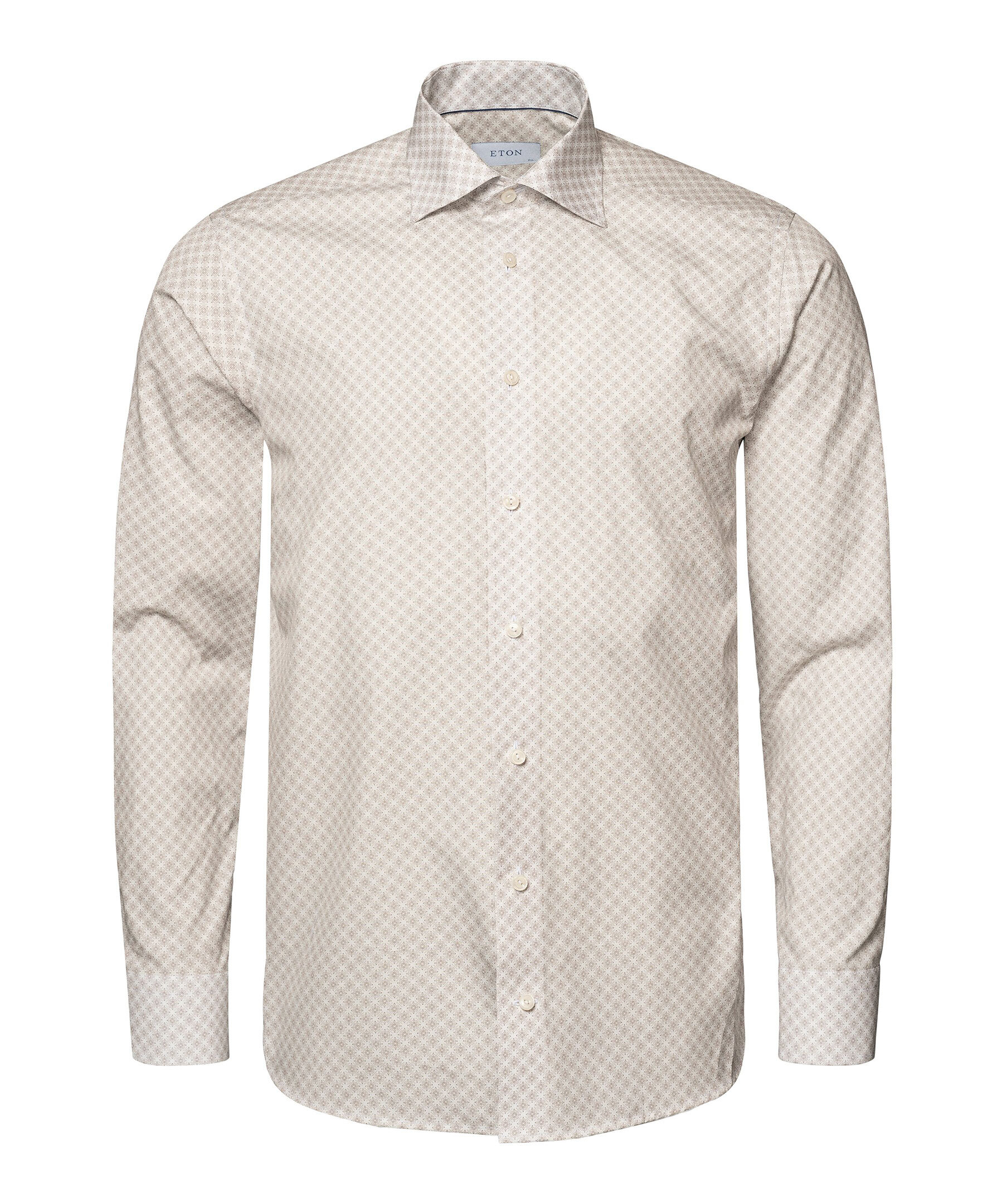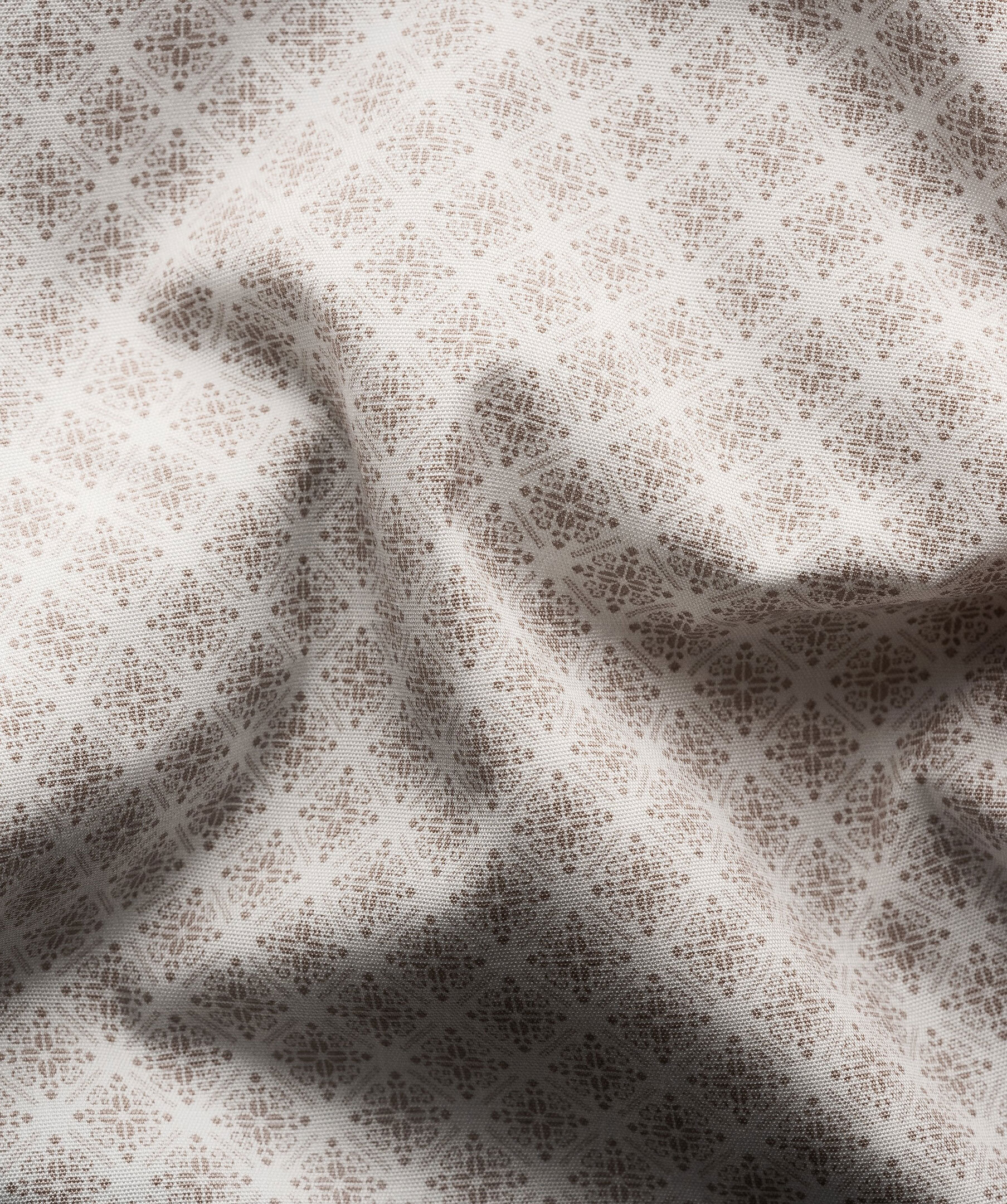 Vår klassiska, strykfria skjorta i Signature Poplin, nu med ett fantastiskt medaljongmönster. Skjortan har en elegant lyster och en slät och snygg finish. Den är lätt men samtidigt tålig, faller vackert och har vita knappar.