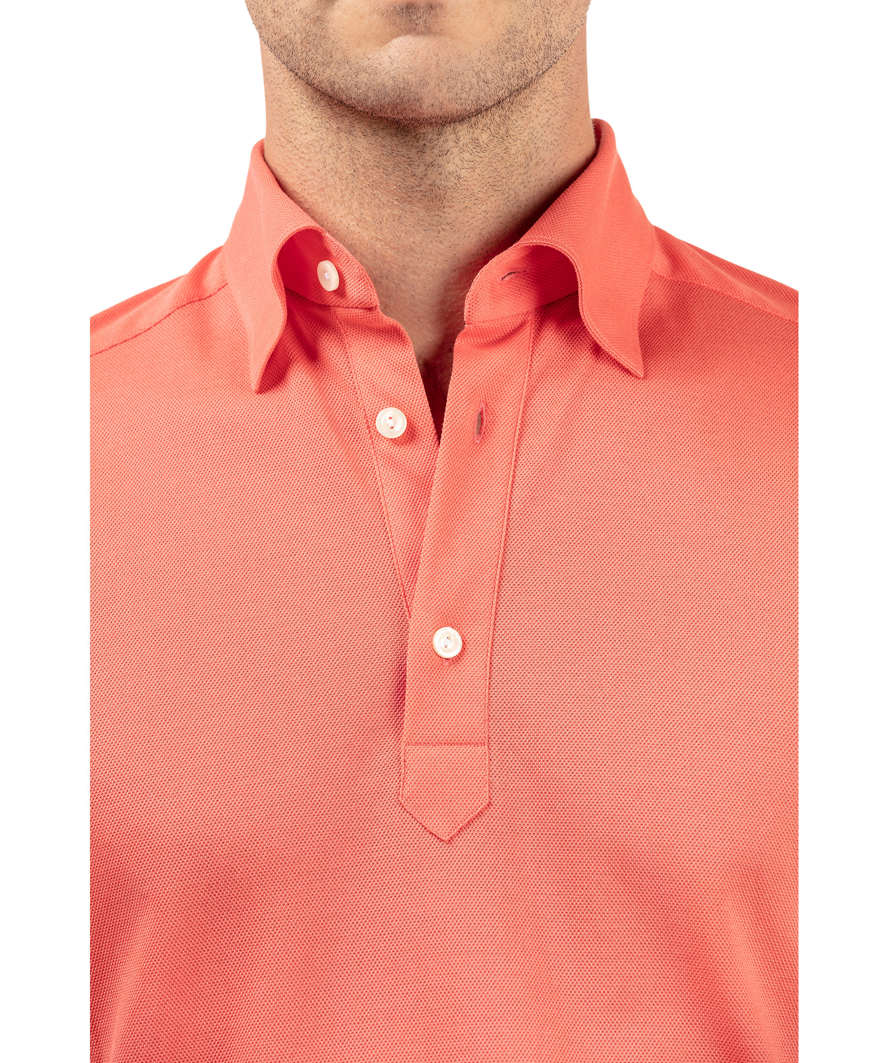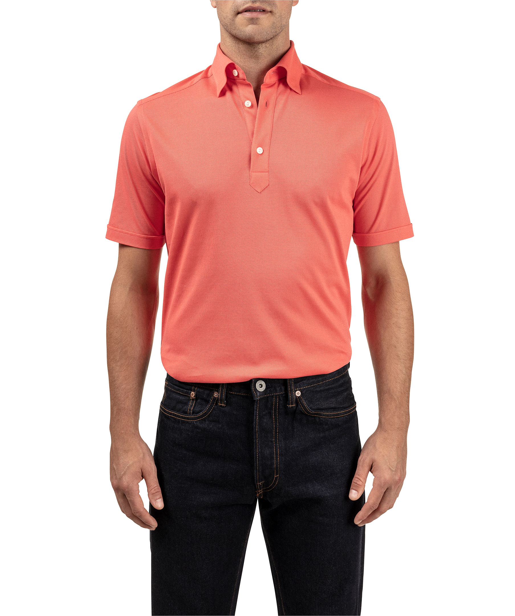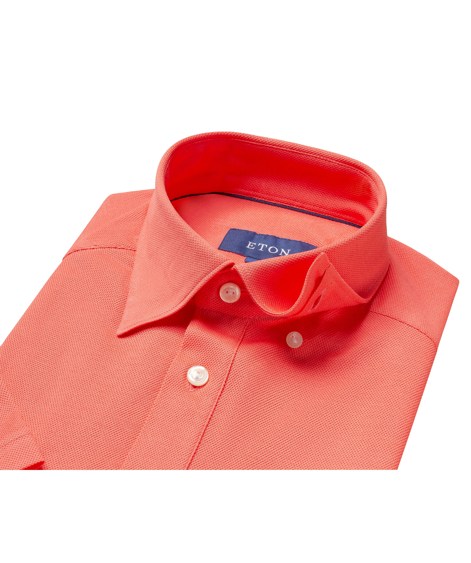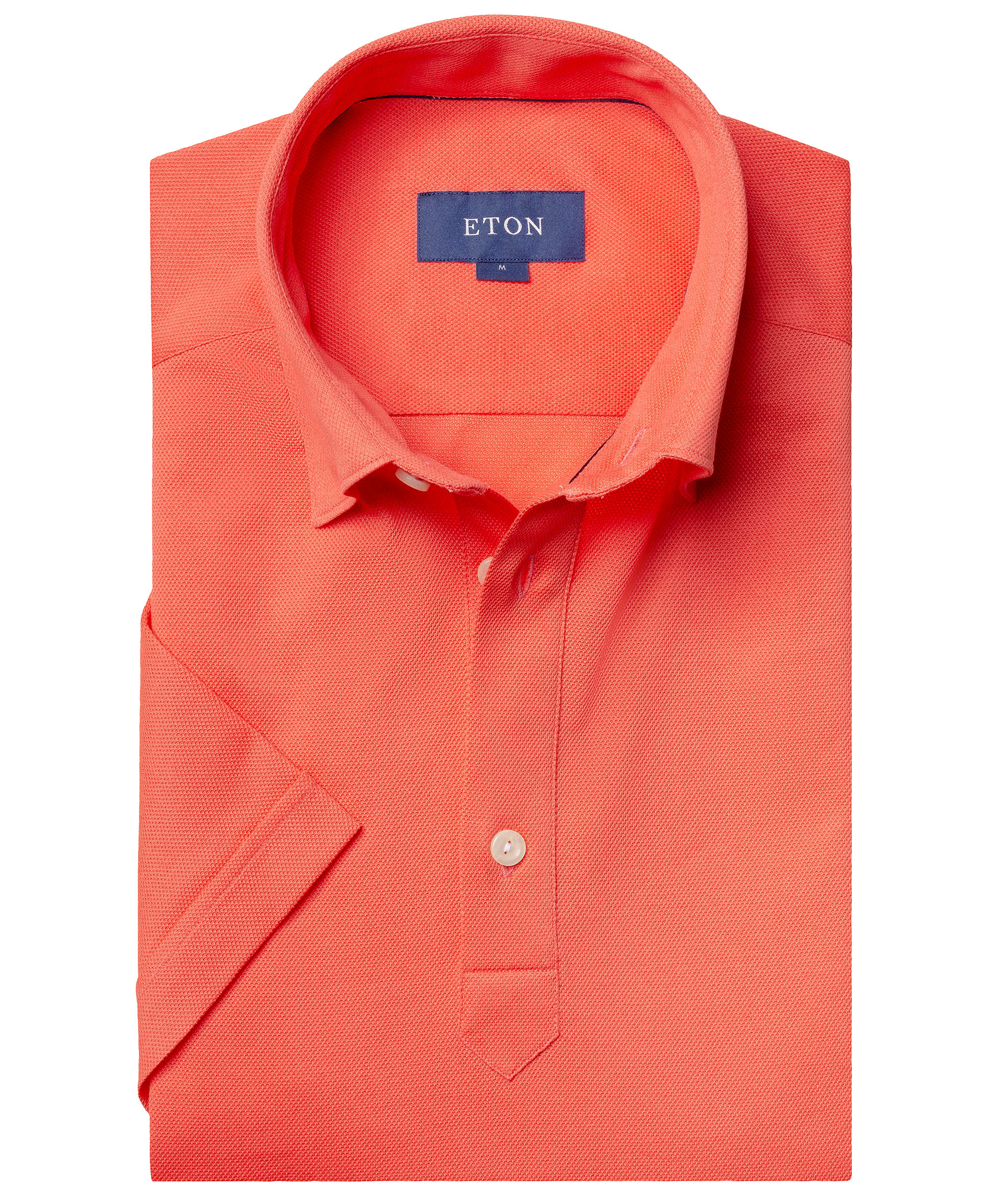 Korallfärgad kortärmad pikétröja från Eton. Smal passform, button under-krage samt ljusa knappar.