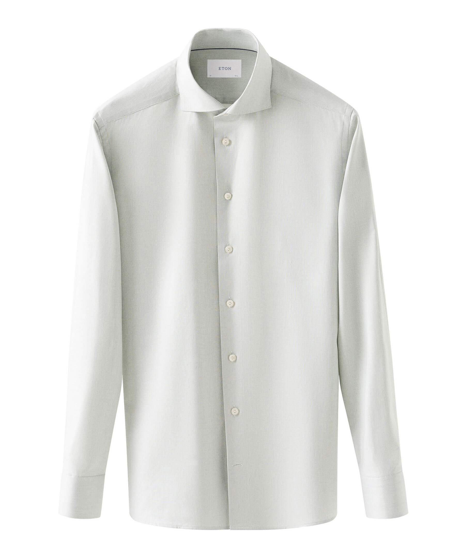 Ljusgrön businesskjorta från Eton. Tillverkad i deras Fine Twill-tyg vävt i ett melerat garn av 100 % ekologisk bomull. Skjortan har wide-spread krage och knappslå samt rundadde enkla manschetter. Tillverkad i 100% bomull.