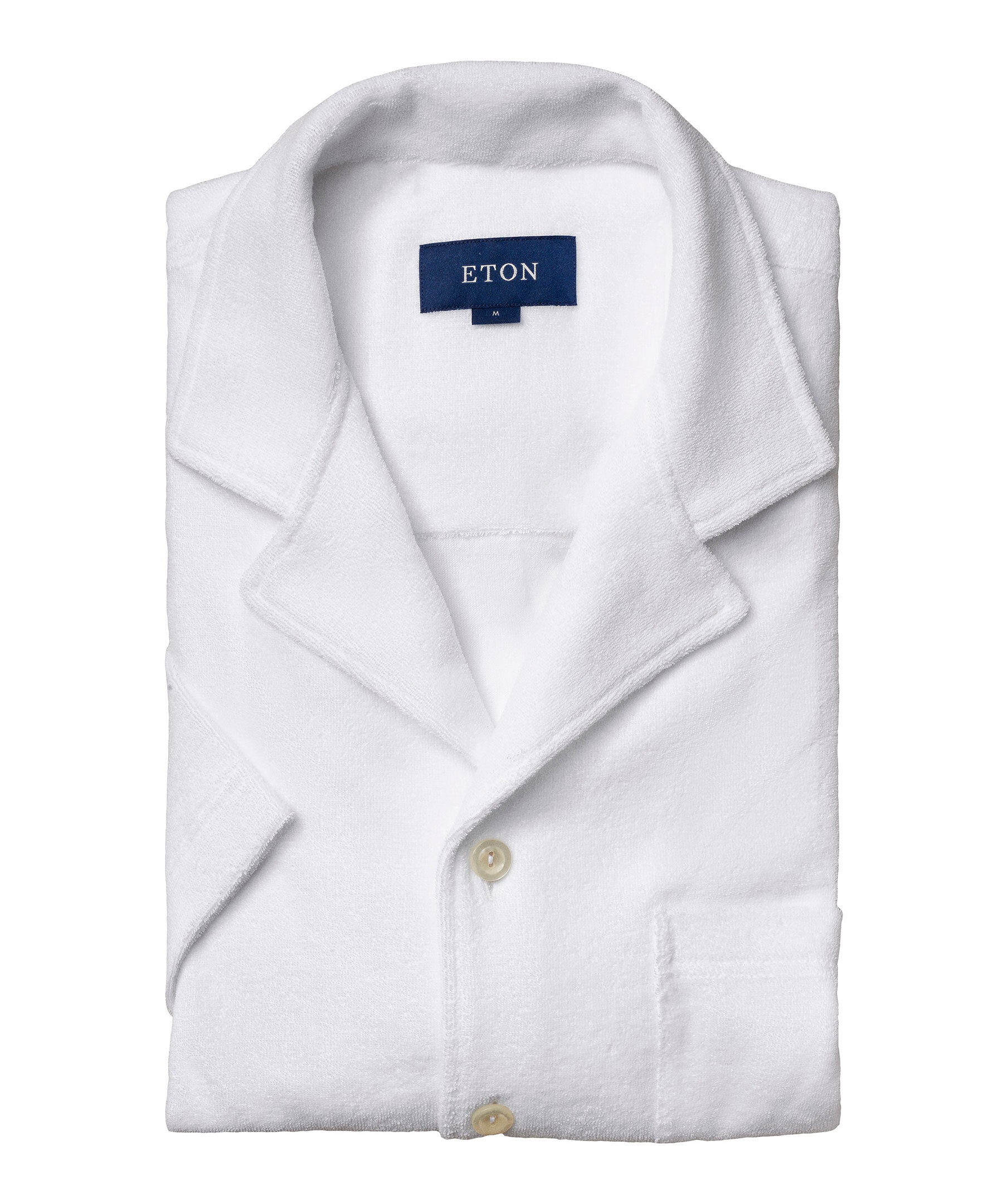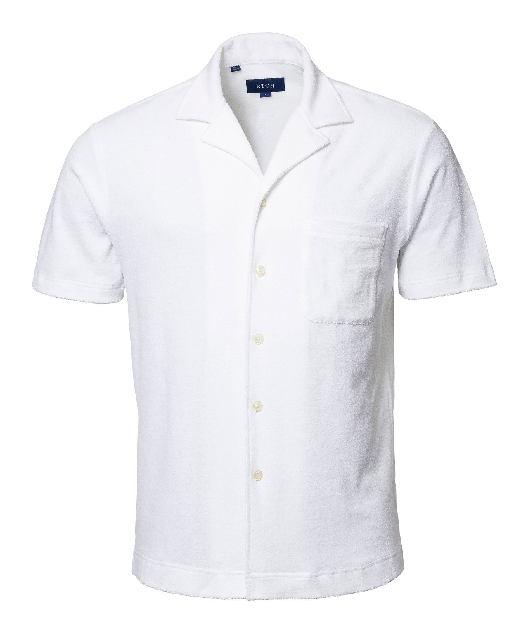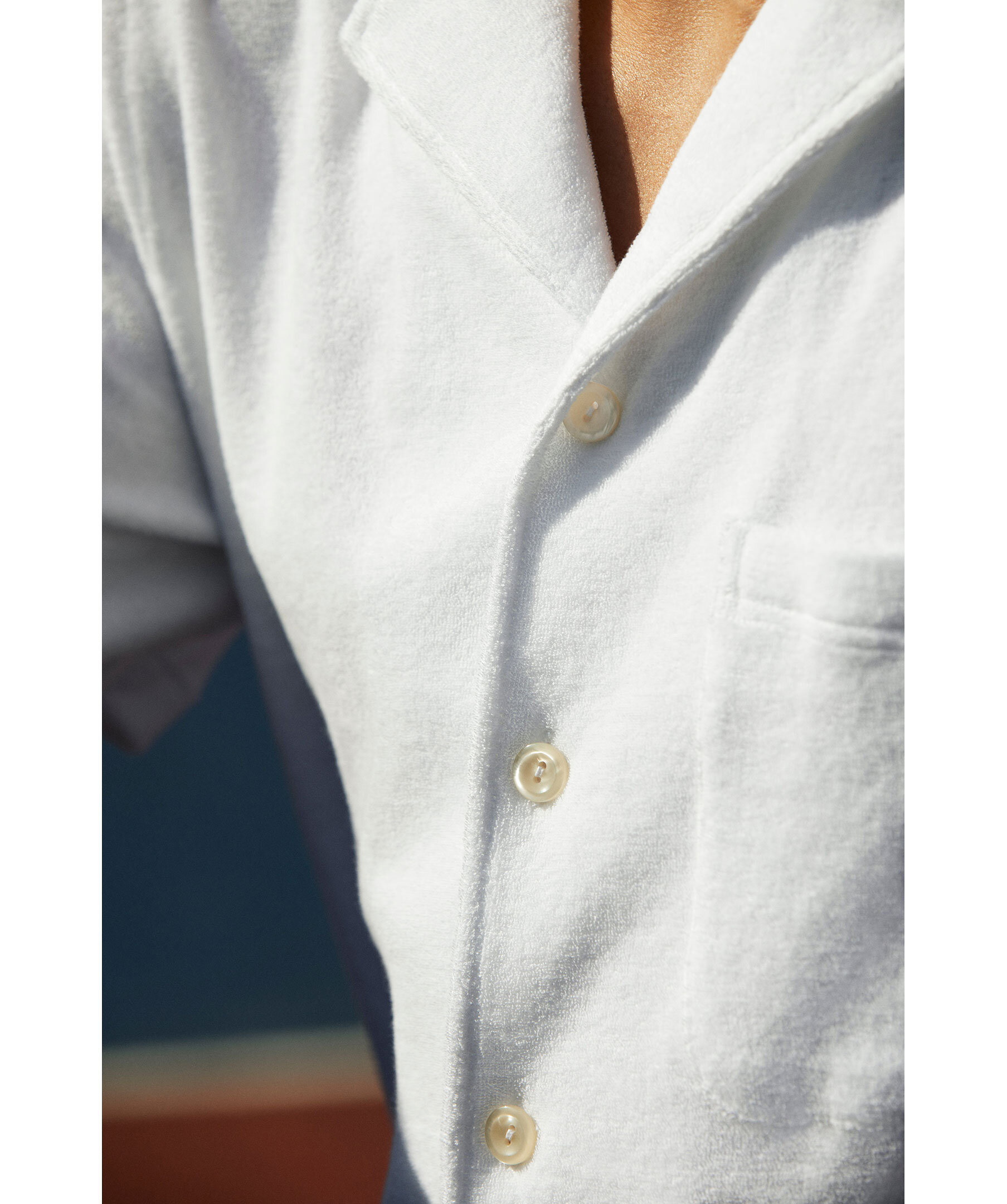 Vit retroinspirerad resortskjorta med knäppning, gjord av mjuk och skön italiensk bomullsfrotté. En skön sextiotalskänsla som passar lika bra på stan som på stranden.