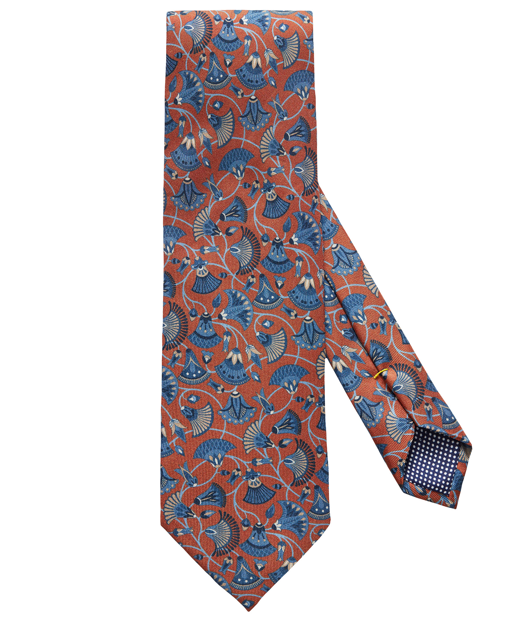 Orange, mönstrad slips från Eton. Blommigt motiv, tillverkad i siden.