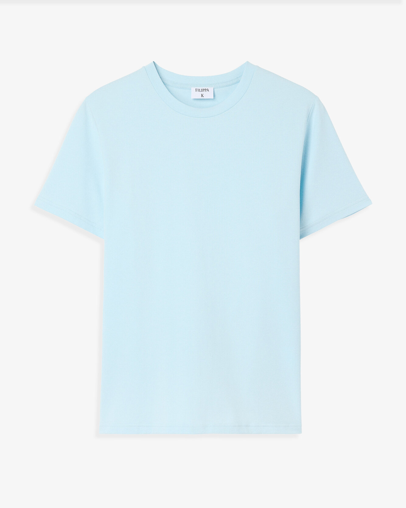 Ljusblå t‑shirt i ekologisk stretch‑bomull från Filippa K med rund hals och korta ärmar — ett tidlöst basplagg för vardag och lager‑på‑lager‑looks.