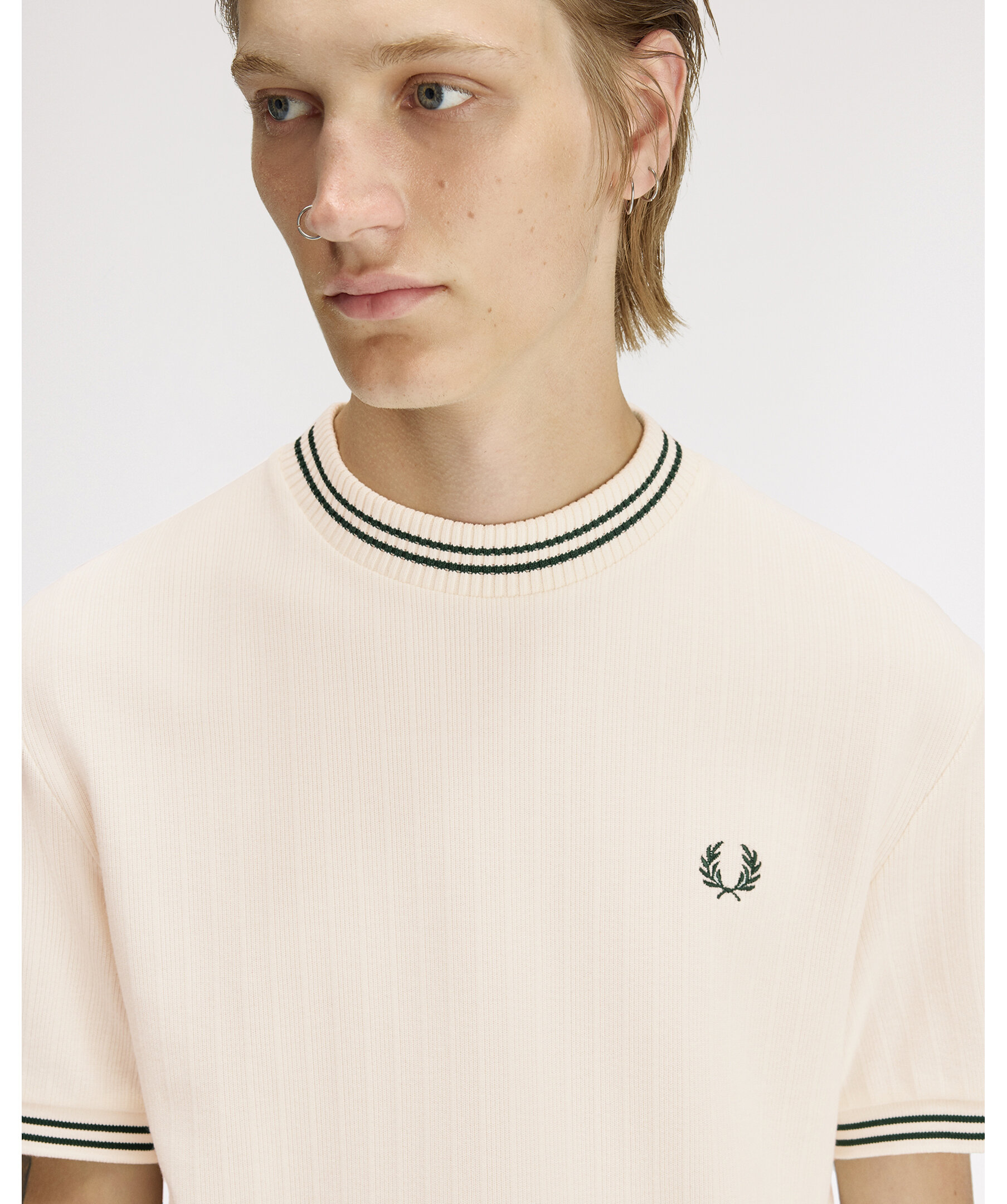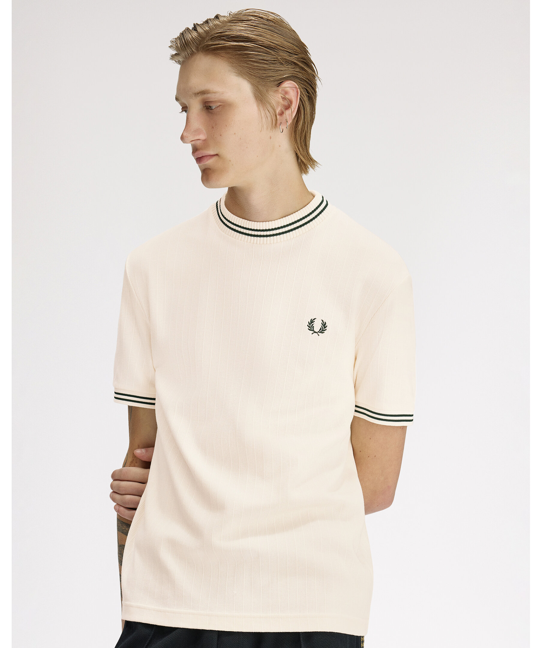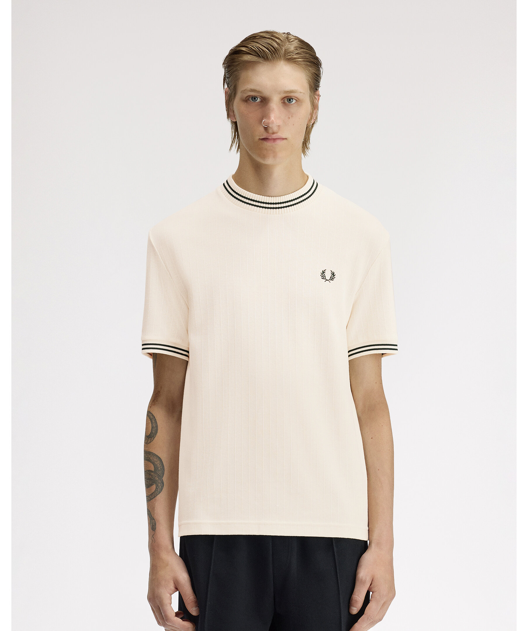 Fred Perry Ribbed Jersey T-Shirt - Ecru