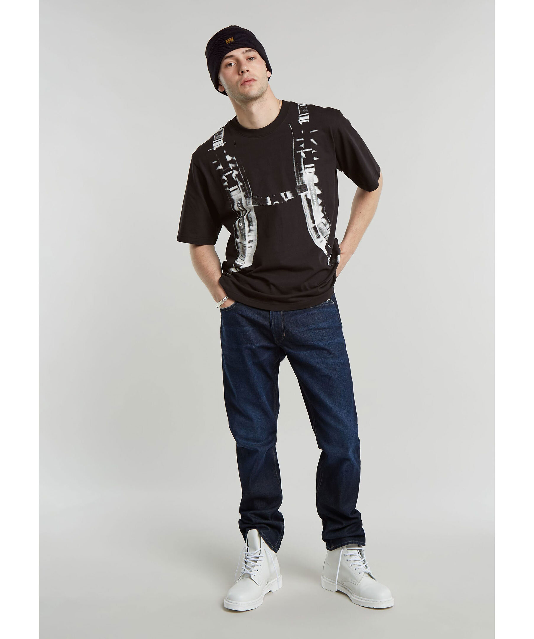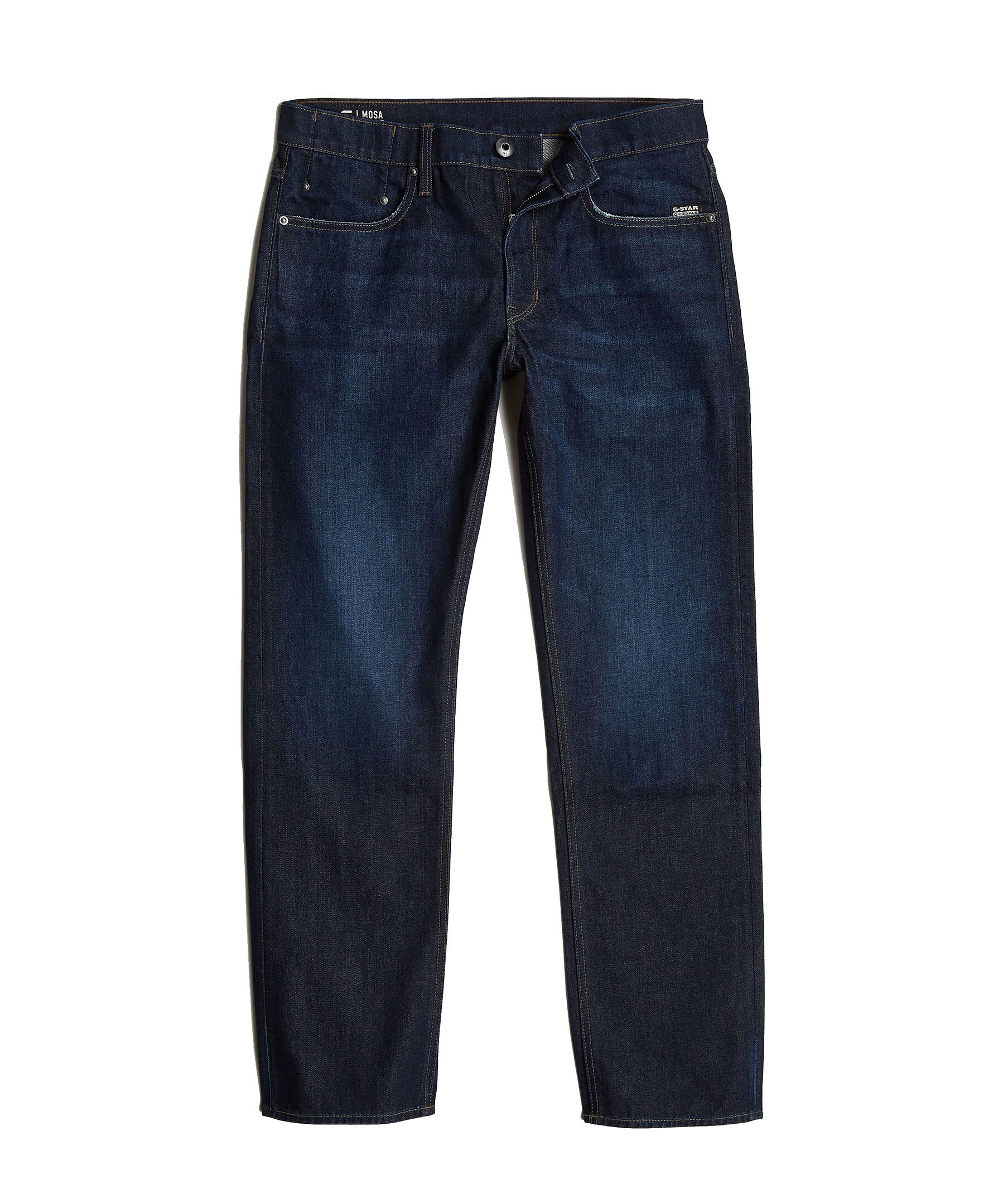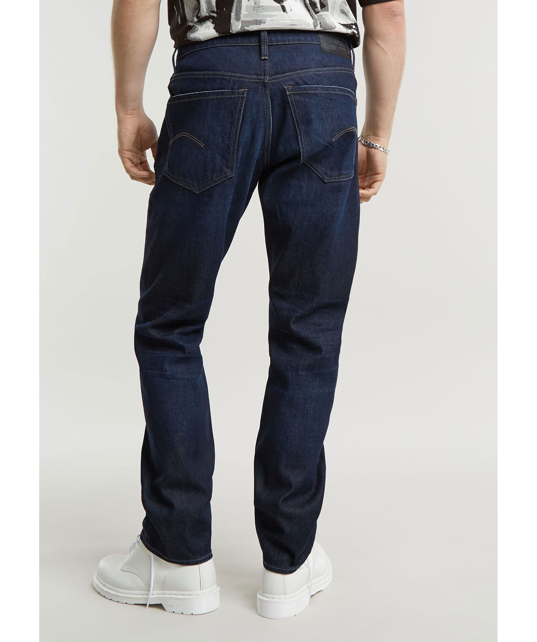 Mörkblåa jeans från G-star. Byxorna har en regular straight-fit med smala ben. Vid linningen på baksidan finns en läderliknande patch med G-stars logotyp. Jeansen är stretchiga och har gylf. Tillverkade av en bomullsblandning.