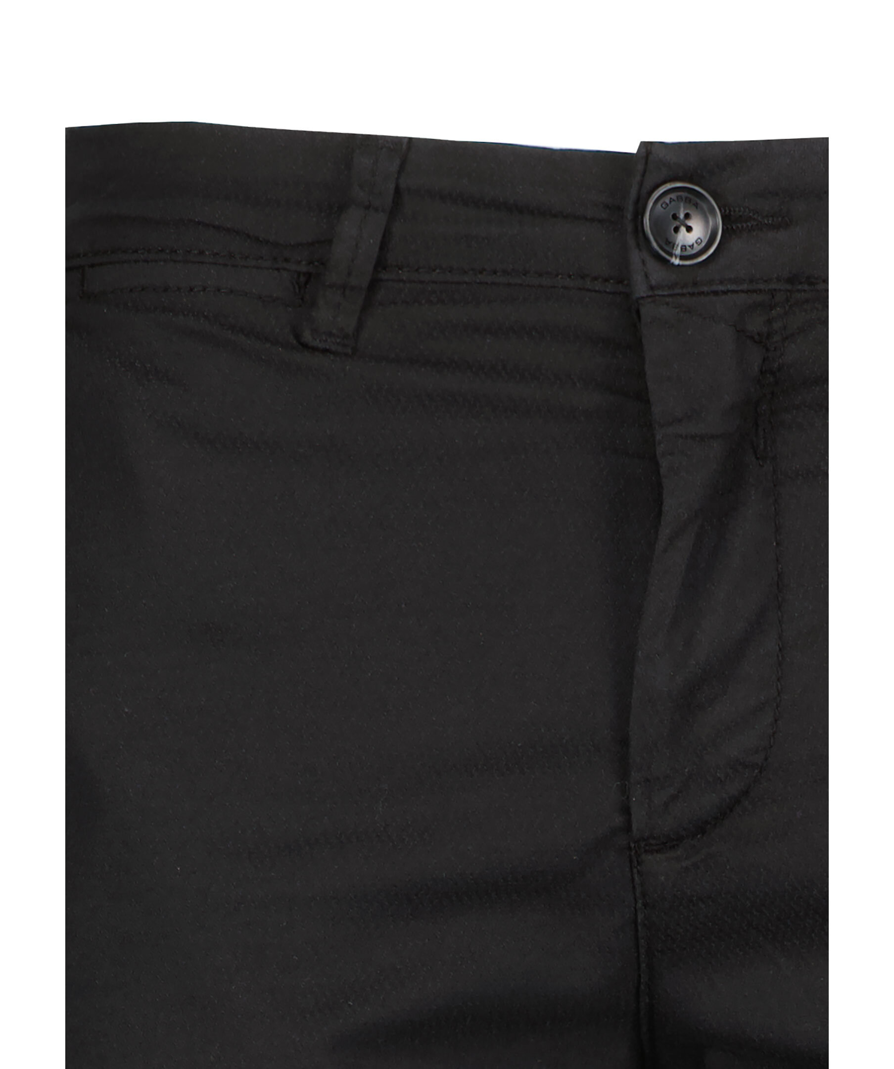 Svarta byxor från Gabba. Byxorna har bälteshällor i midjan, två snedställda sidfickor, två bakfickor med knapp och en liten logotyp i metall vid ena sidfickan. Tillverkade i en bomullsblandning.