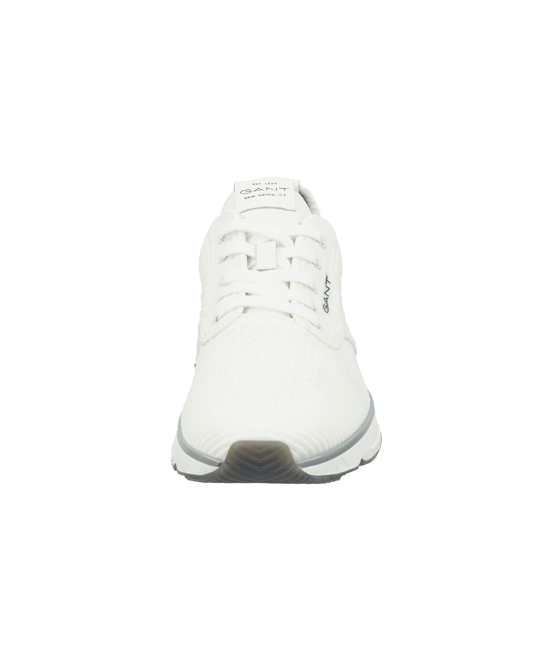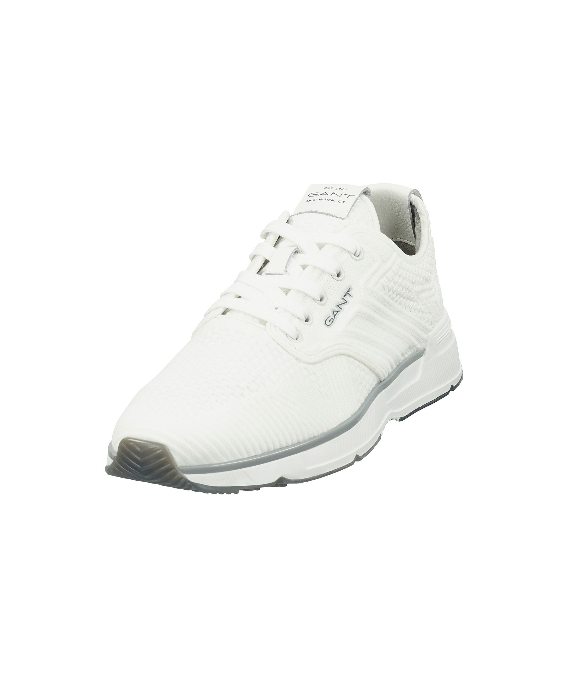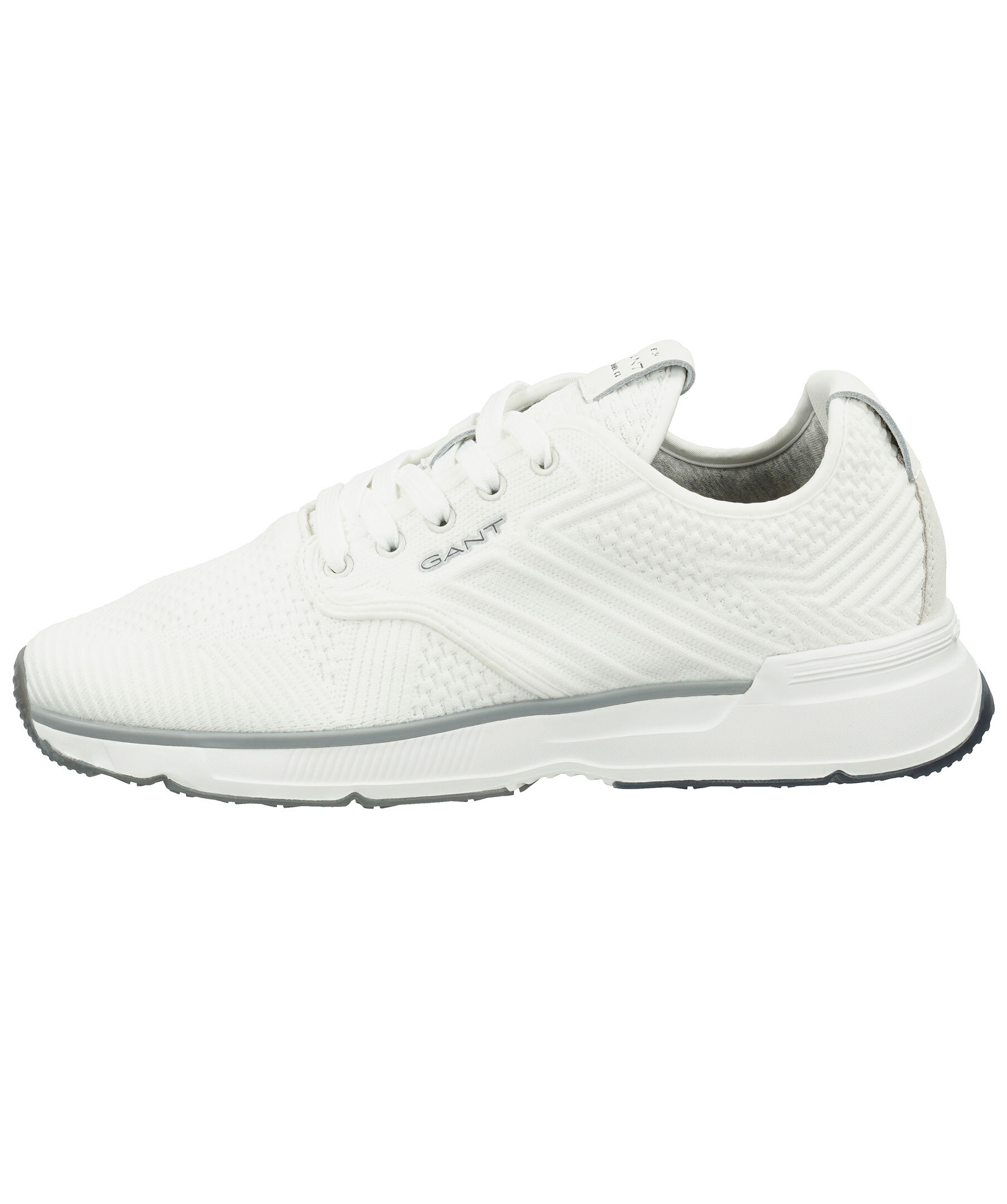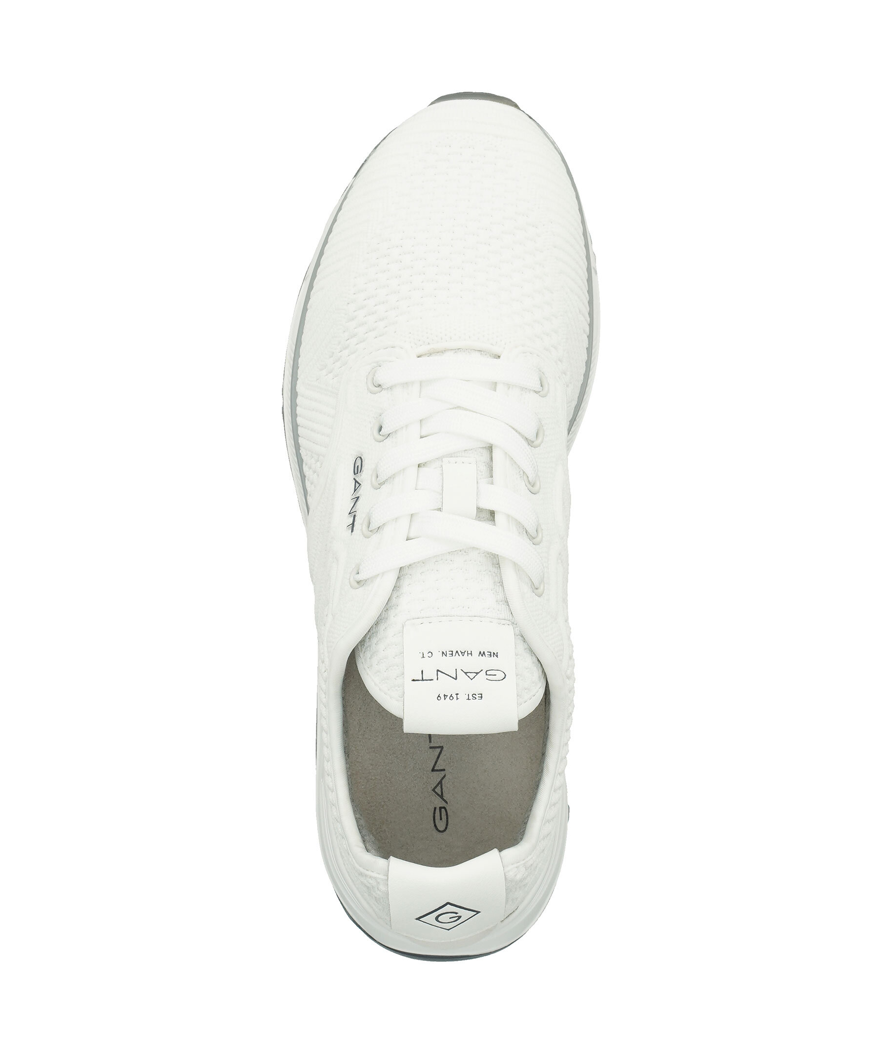 Vita sneakers från Gant. Tillverkade i stickat material och har en liten logotyp på sidan och vit sula i gummi. Vit snörning, detaljer i vitt läder på plösen och bak på hälen med logotyp på.