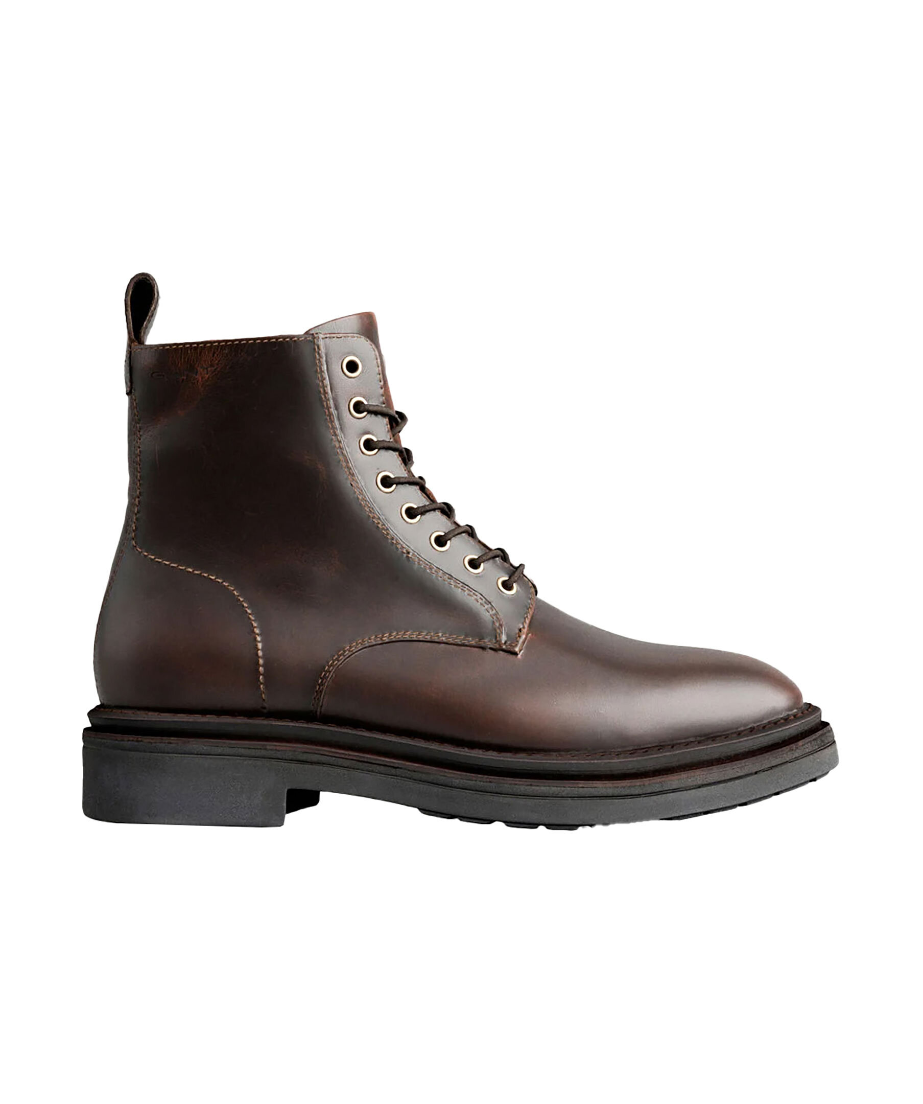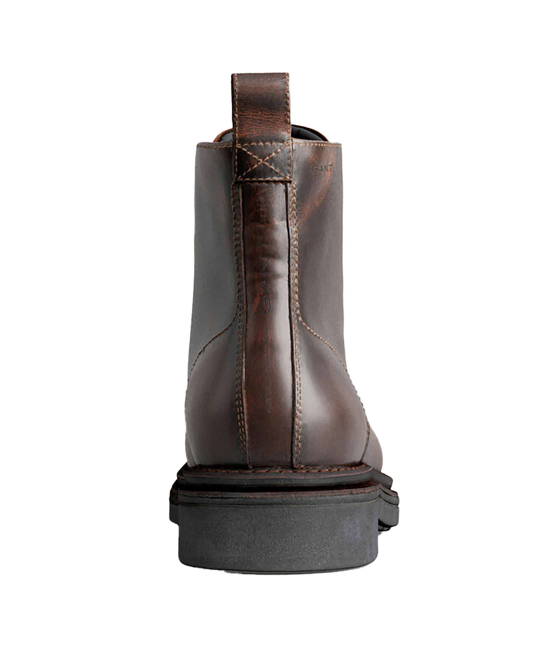 Bruna kängor i läder från Gant. Runda skosnören. Guldfärgade höljor. Grov sula i gummi. Ögla baktill vid hälen. Innersula i läder. Embossad logotyp på skons skaft på yttersidan av skon.