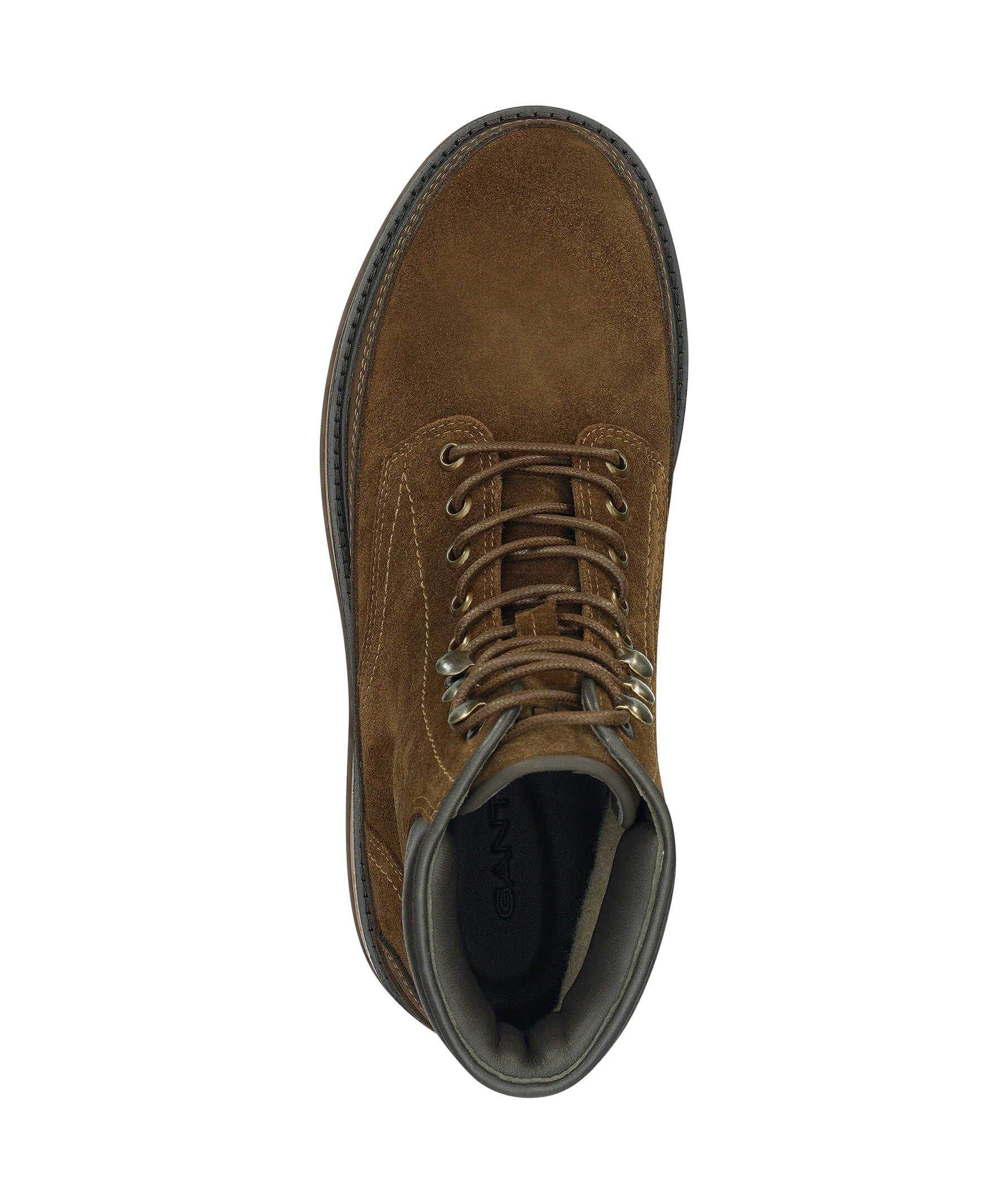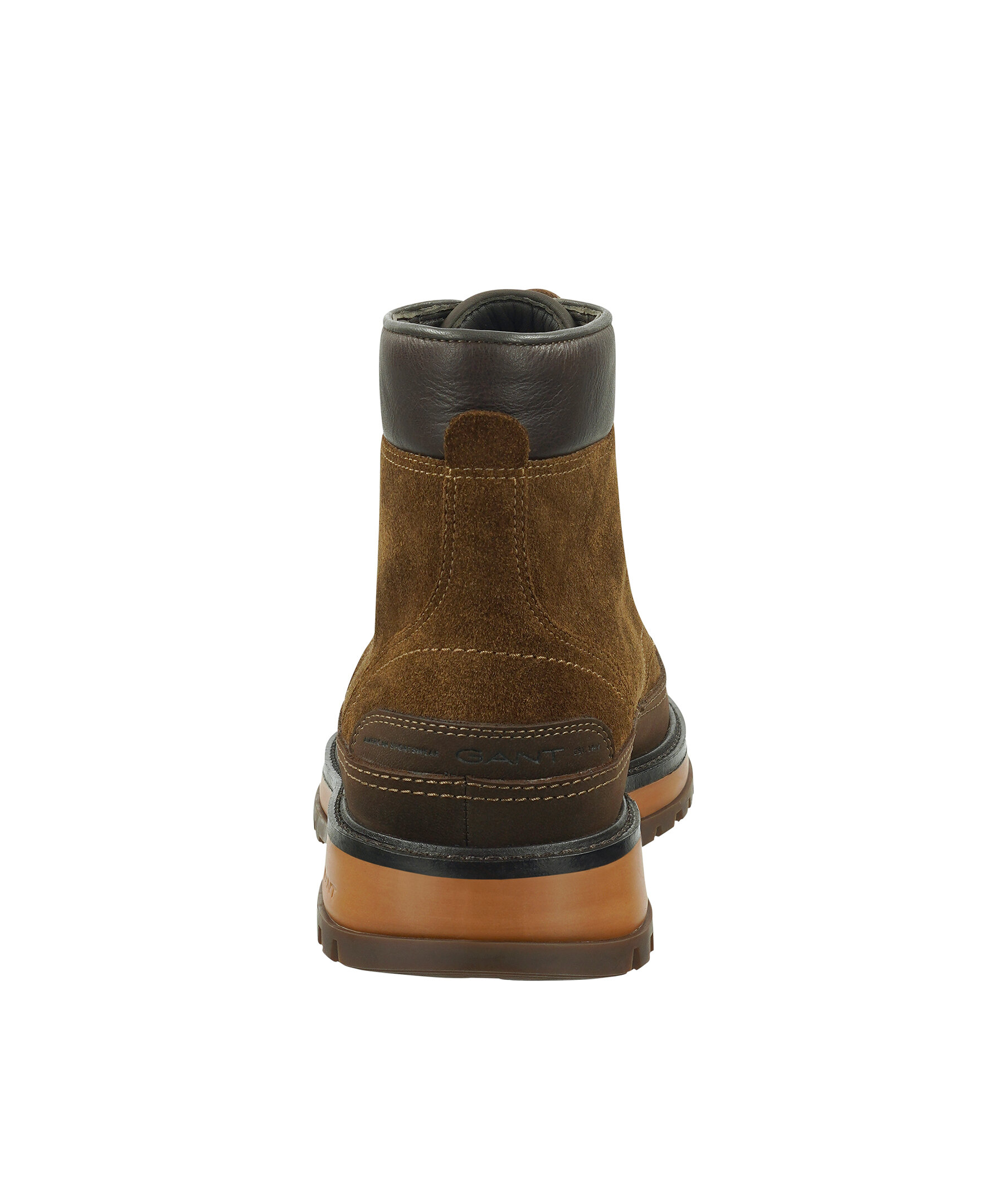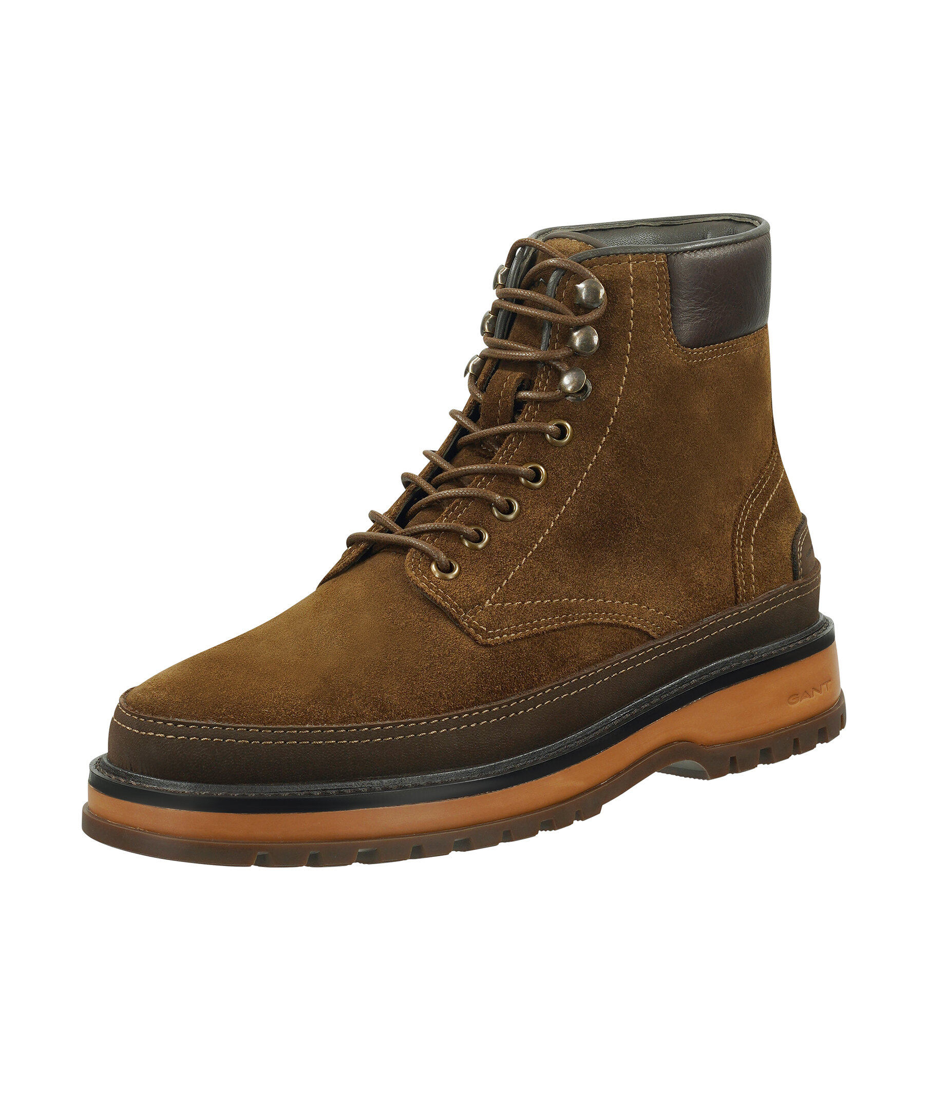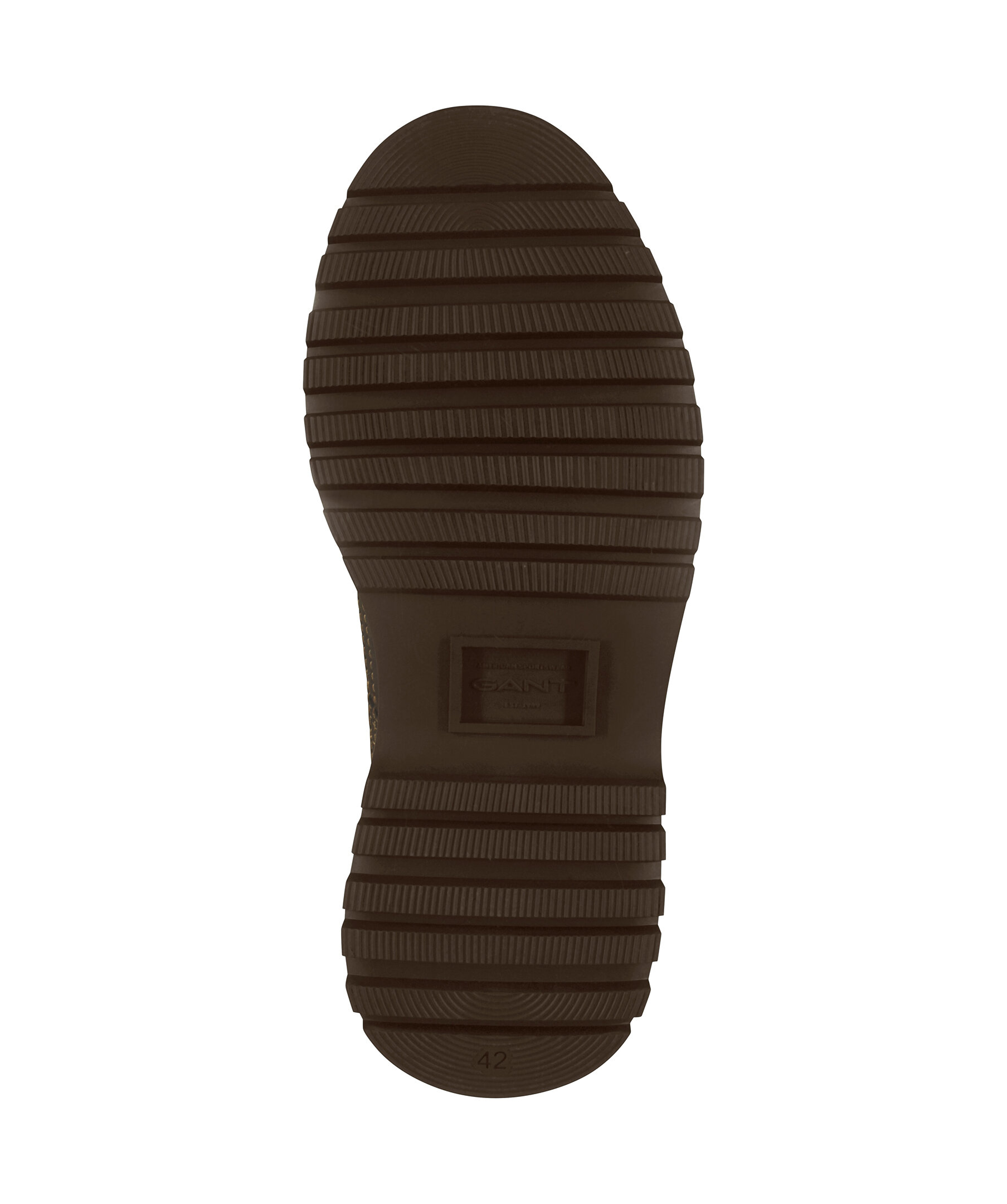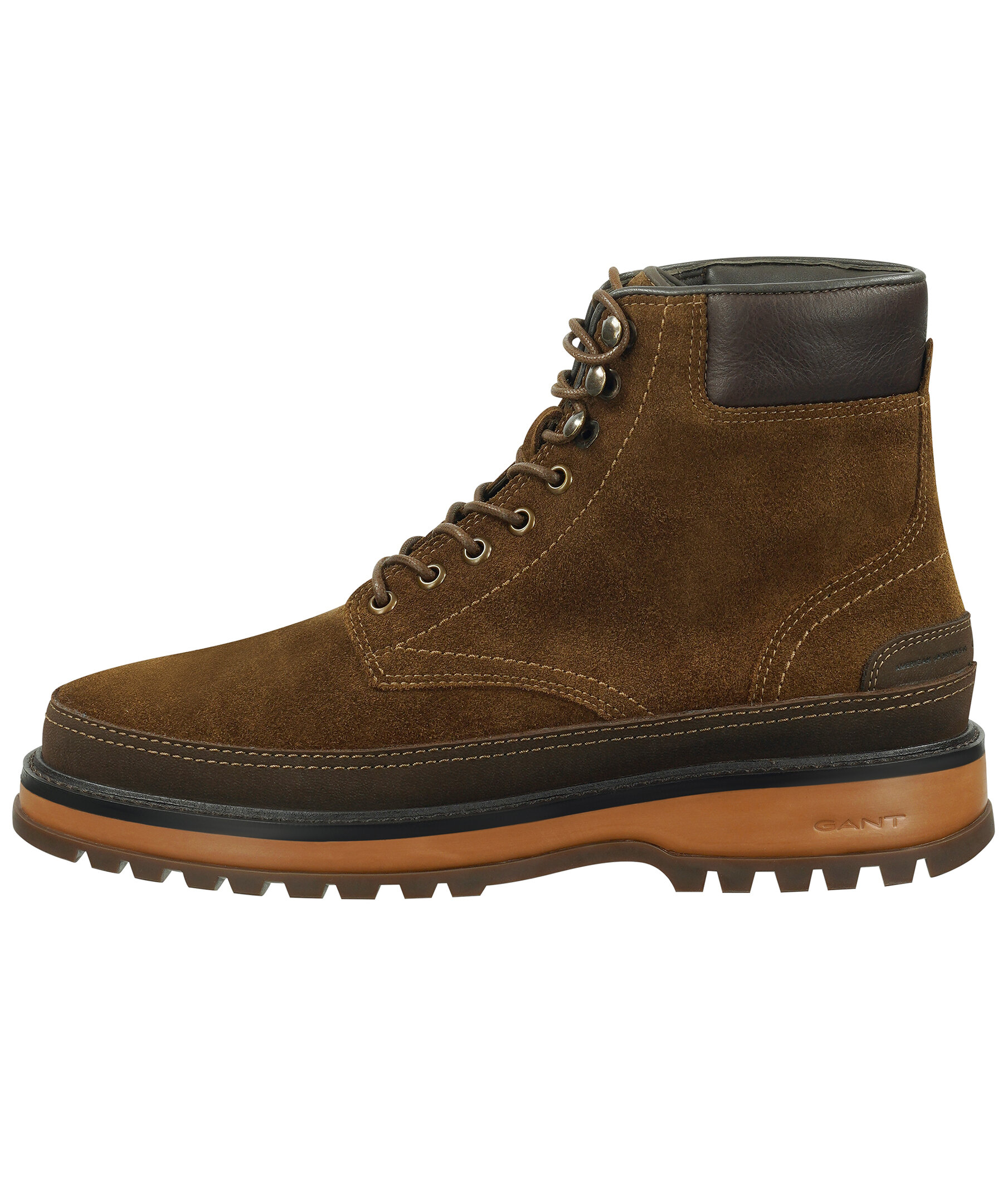 Bruna kängor i läder och mocka från Gant Footwear. Skorna har snörning framtill och logotyp på plösen, hälen samt utsidan. Skorna har kontrasterande sömmar och en gummisula som gör den både hållbar och pålitlig i alla väder. Det mjuka ullfodret håller fötterna varma, medan läderinnersulan ger extra komfort. Denna boot är idealisk för både arbete och fritid – ett måste i din garderob.