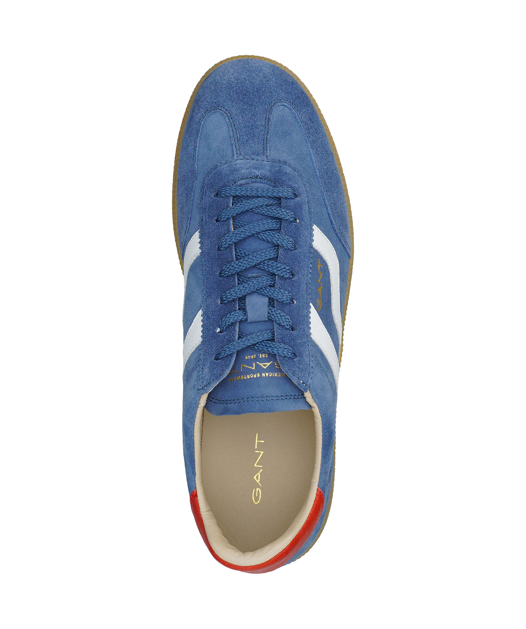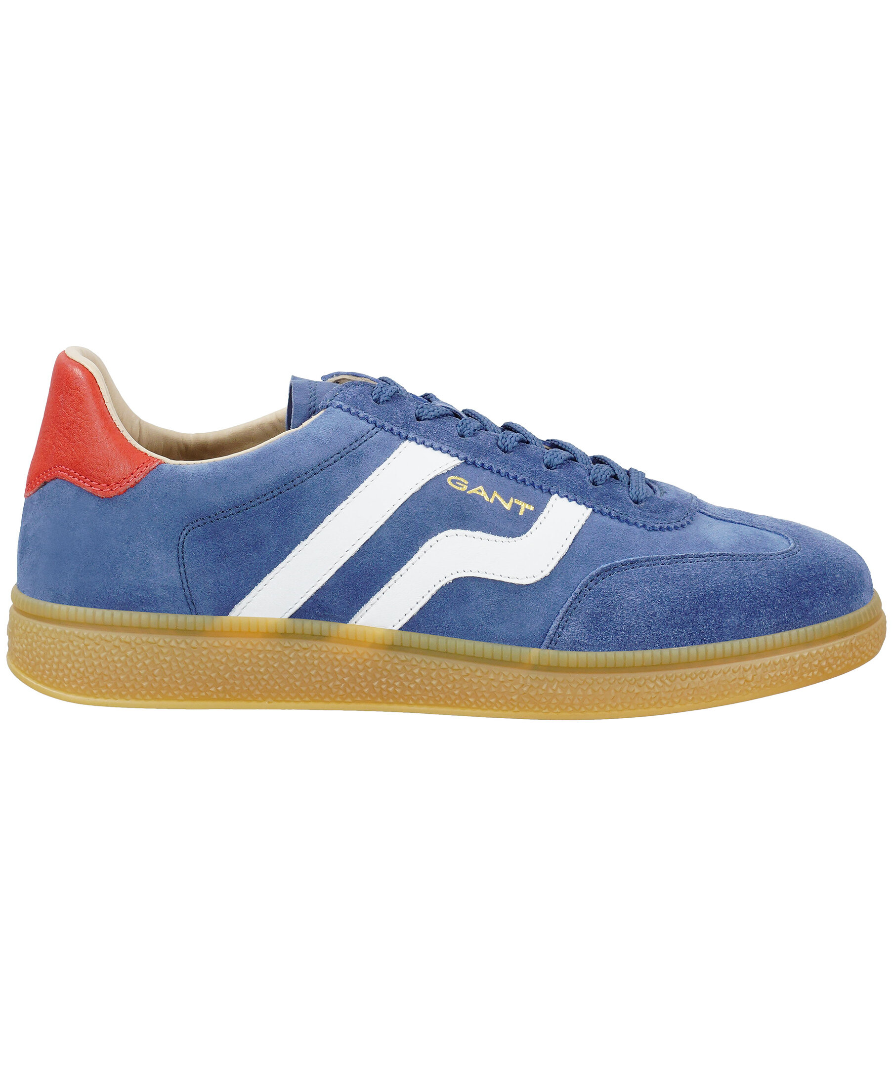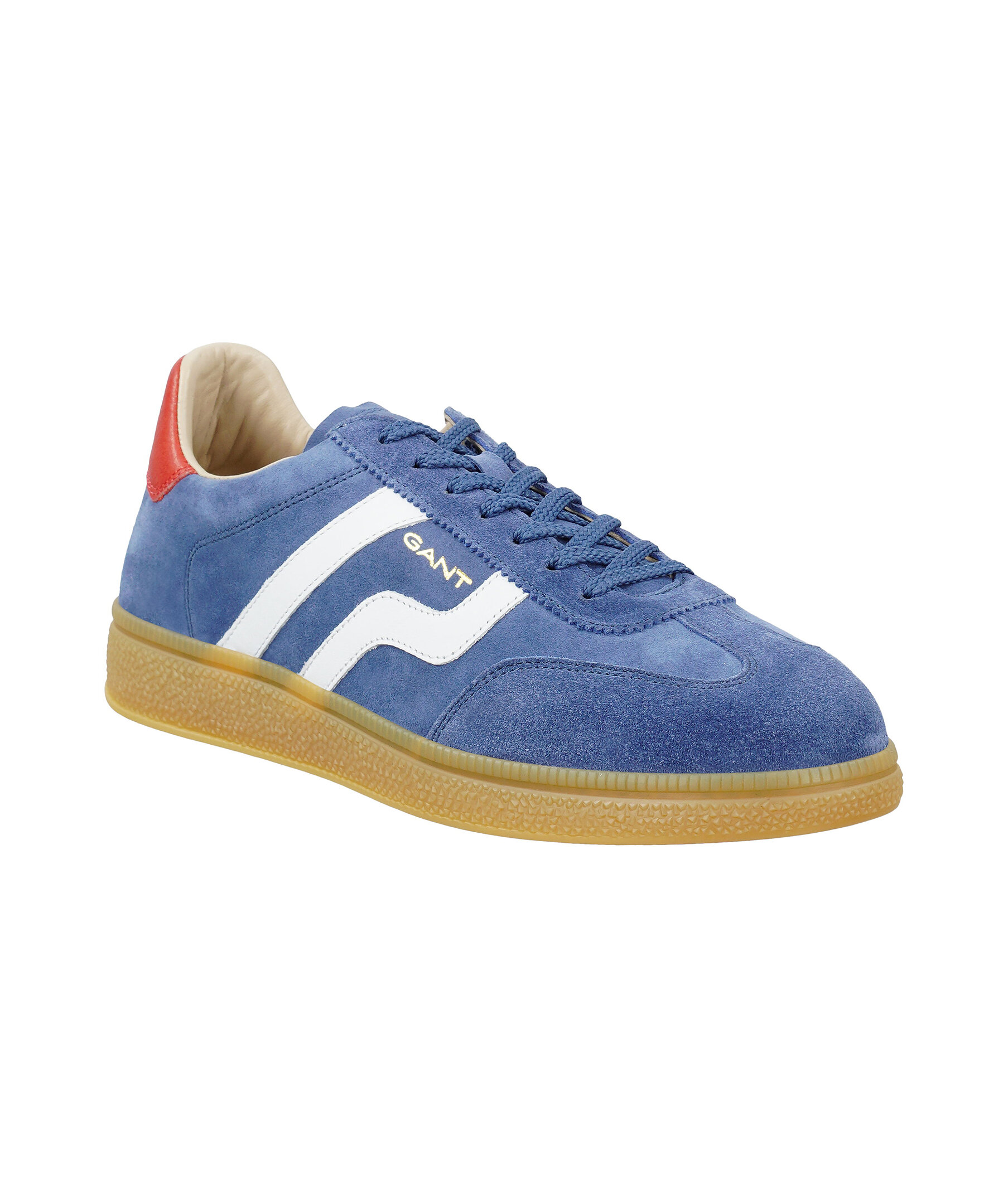 En elegant retroinspirerad sneaker med en slimmad silhuett och vintagecharm. Tillverkad av silkeslen mocka för en otrolig komfort. Blå nyanser ger Cuzmo-sneakers en lugnande känsla, och deras ikoniska honungsfärgade yttersulor tillför karaktär. Den här säsongen har GANT valt ut ett urval av djärva, retroinspirerade färger för att ge kollektionen en livfull men nostalgisk touch.