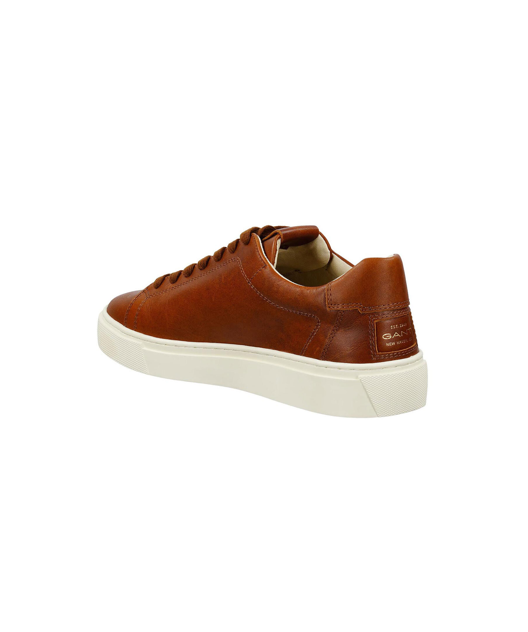 Konjakfärgade sneakers i läder från Gant Footwear. Skorna har beige sula, röd undersida samt logotyp på plösen, utsidan och hälen.