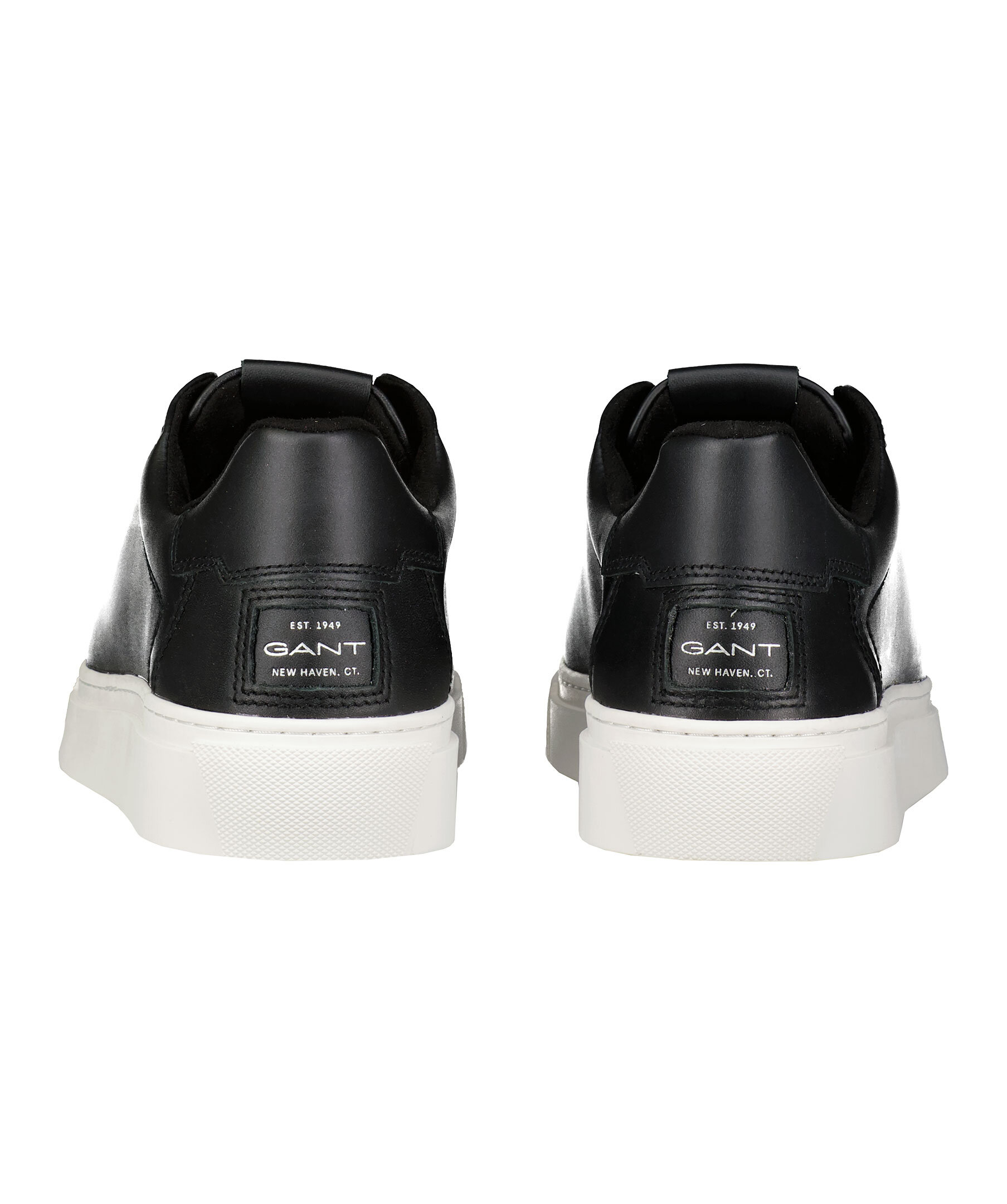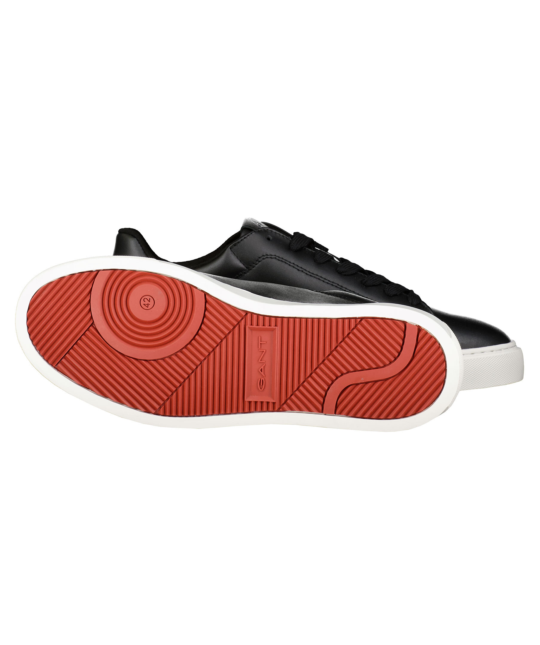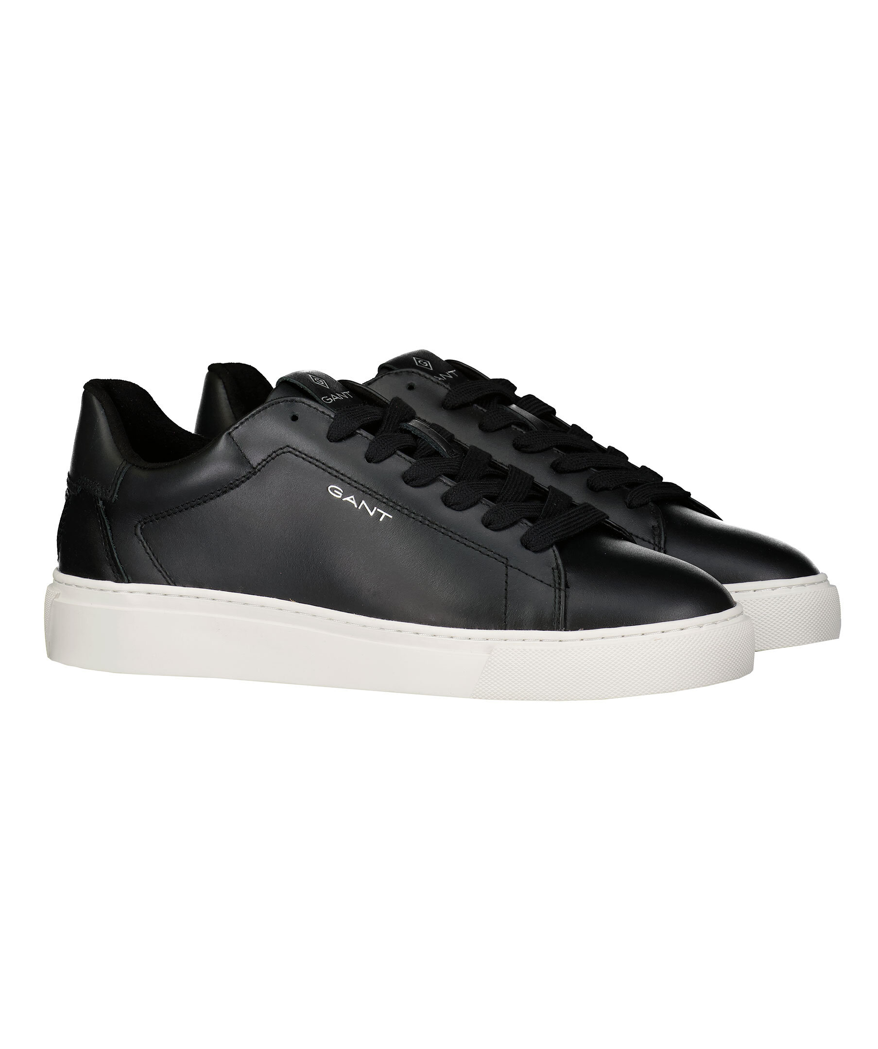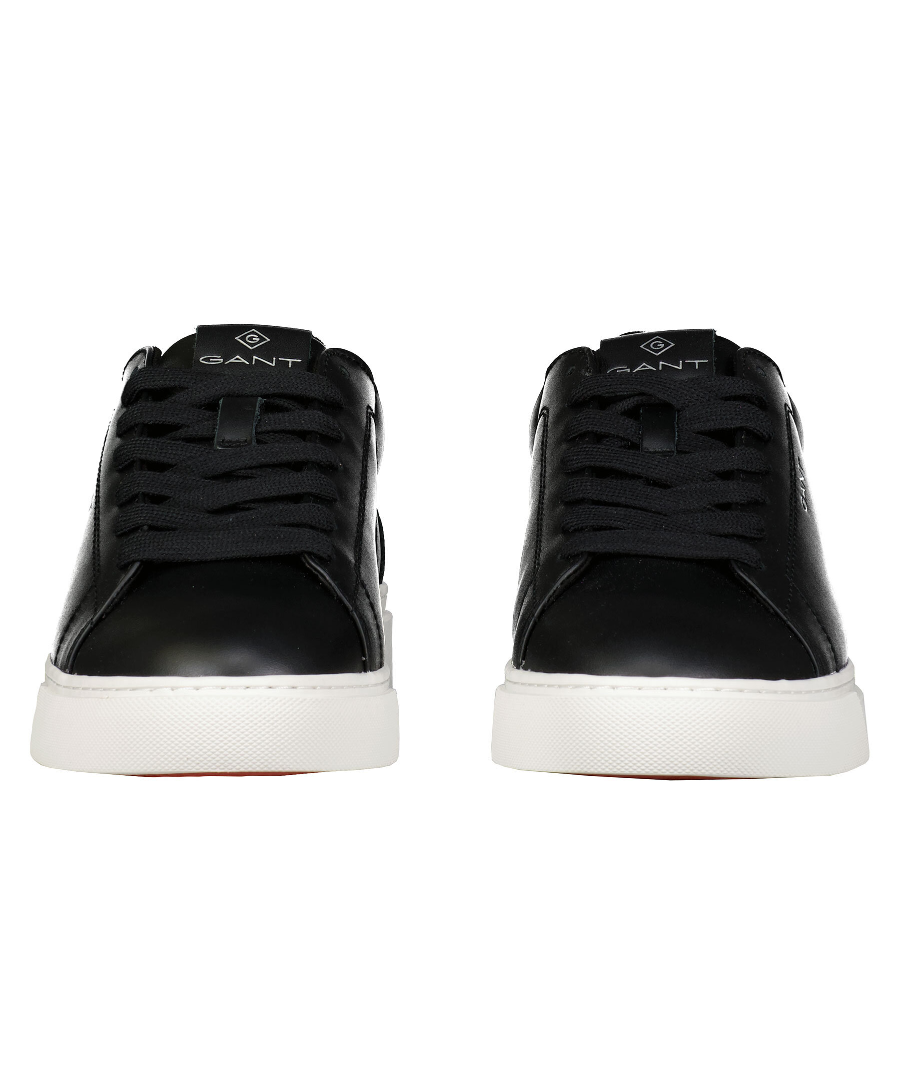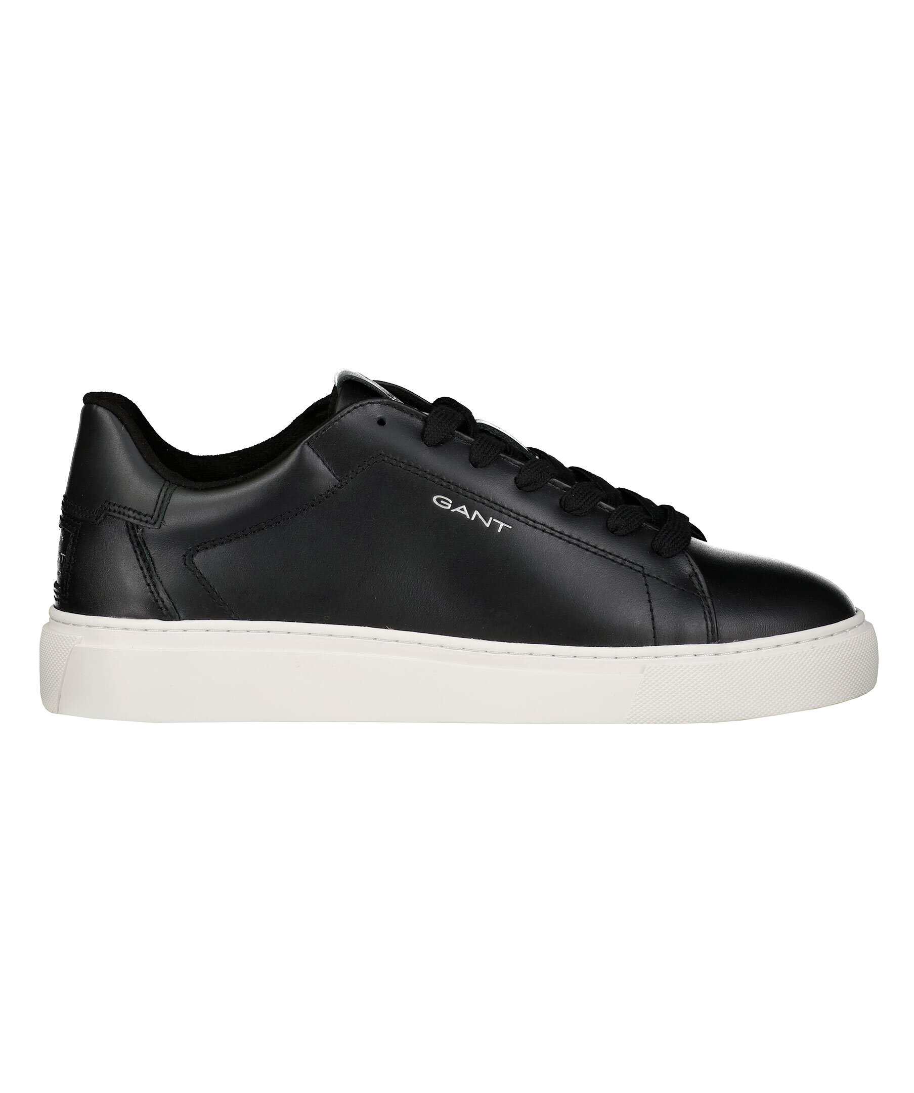 Sneakers i svart skinn från Gant. Simpel siluett med en vit gummi sula. Logotyp på plös, häl och skons sida.