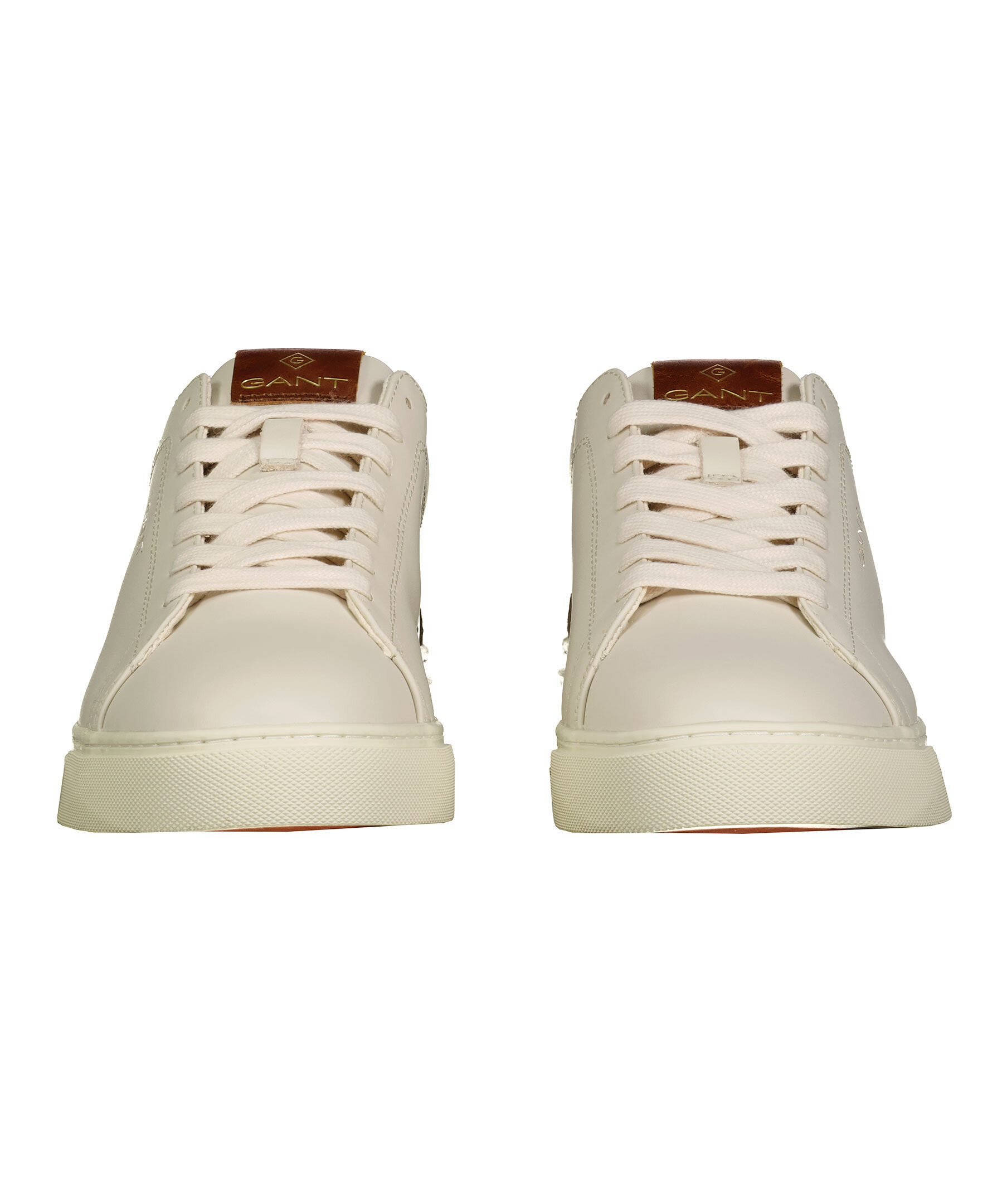 Krämvita sneakers från Gant. Guldfärgad logotyp på skons yttersida, bak och på plösen. detalj i brunt läder på hälen samt plösen. Foder i textil och memory foam. Vit gummisula och vit detalj på hälen i läder. Vita skosnören.