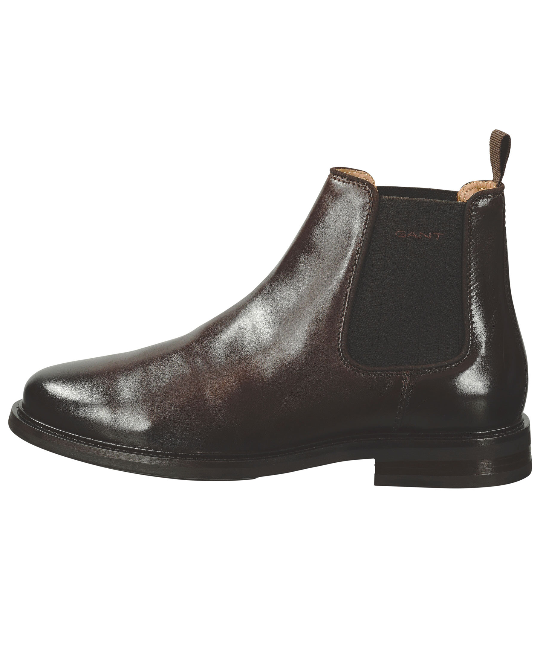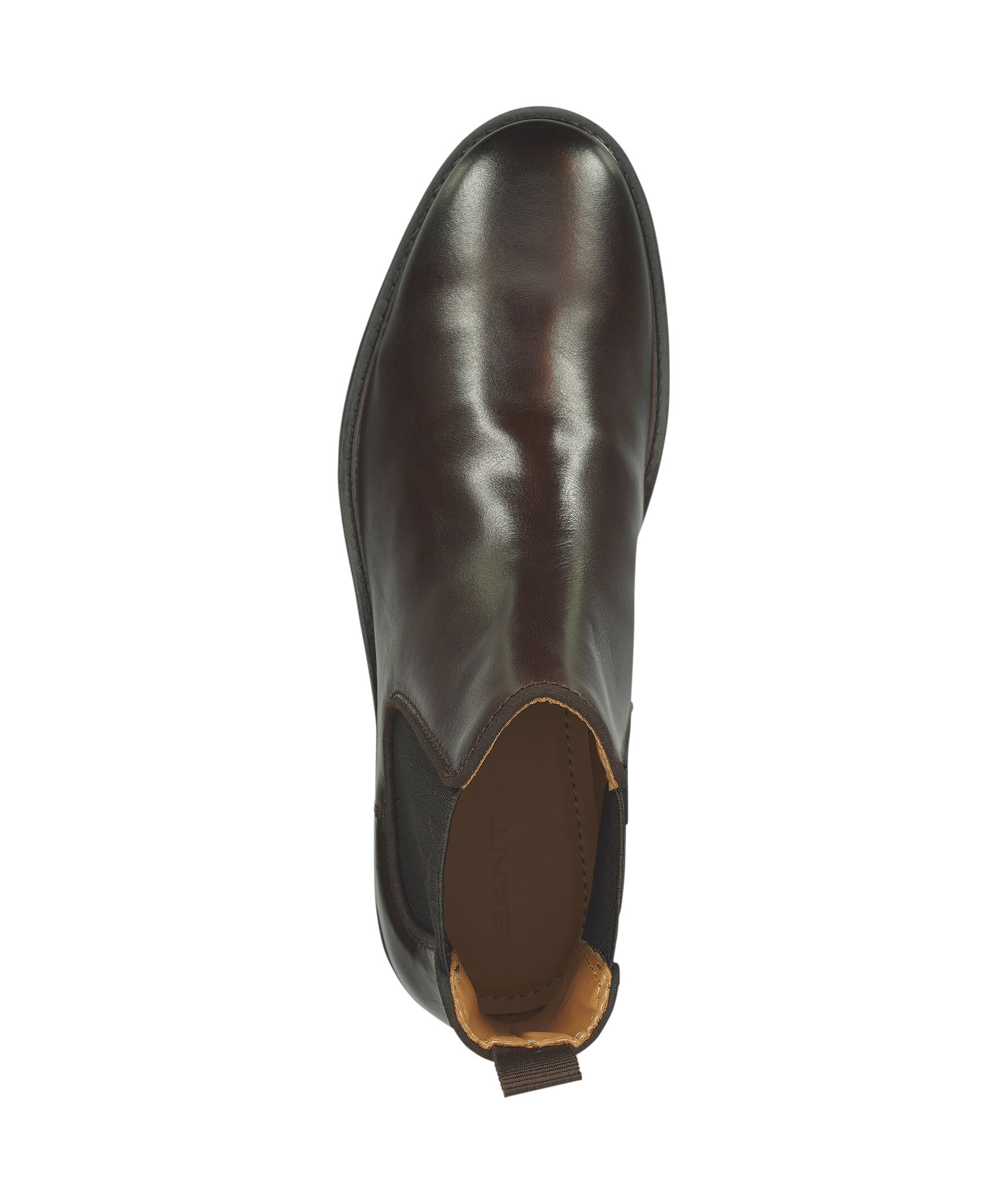 Tidlös Chelsea-känga med en elegant siluett. Ovandelen är av högkvalitativt läder med typiska elastiska inlägg, en pådragbar ögla för enkel ingång och subtila GANT-bokstäver. Helt läderfodrad och med innersula av läder. Genom att köpa denna produkt stödjer du ansvarsfull lädertillverkning av Leather Working Group.