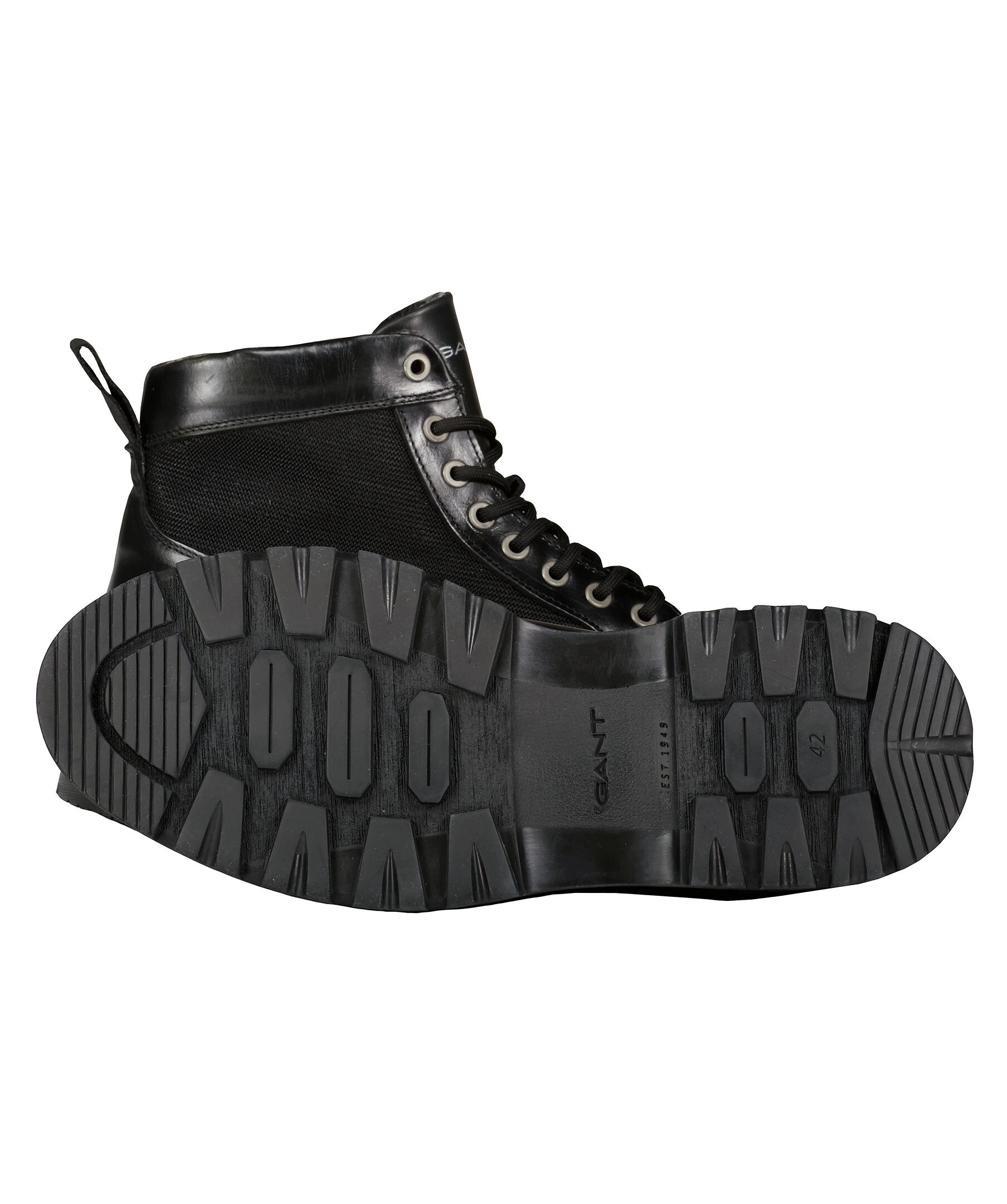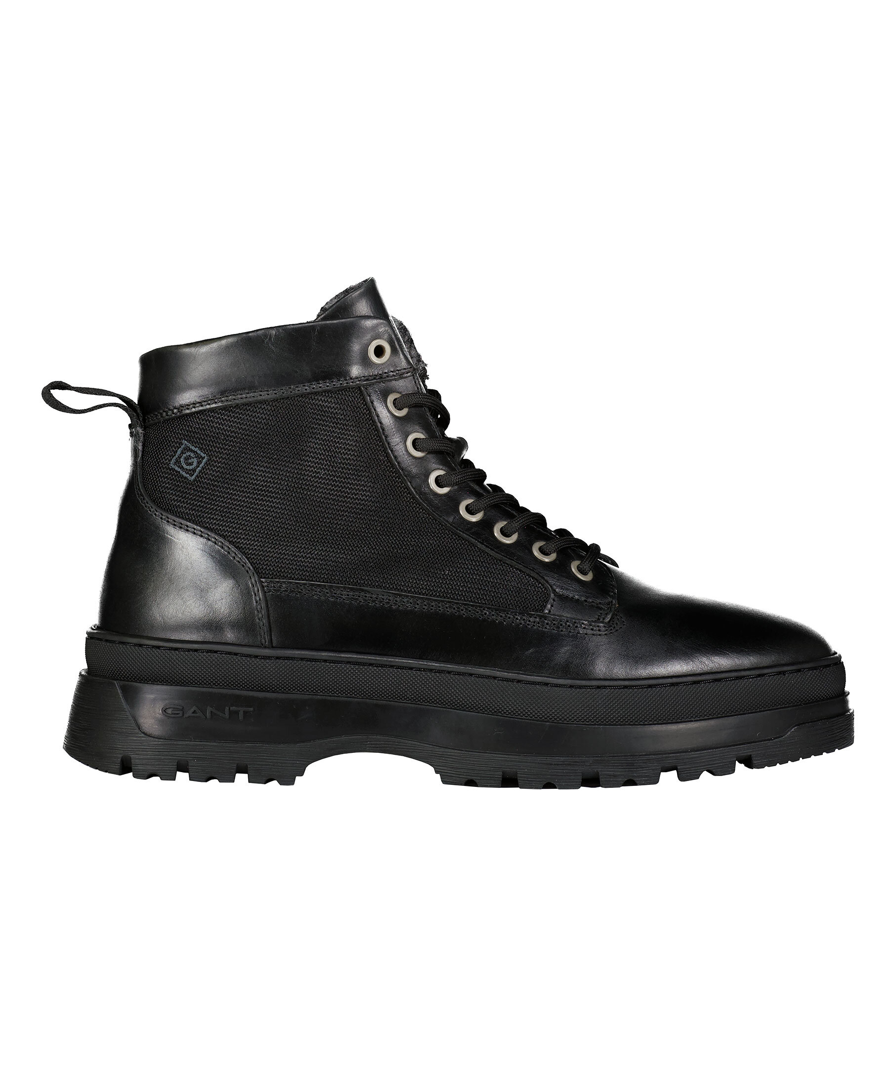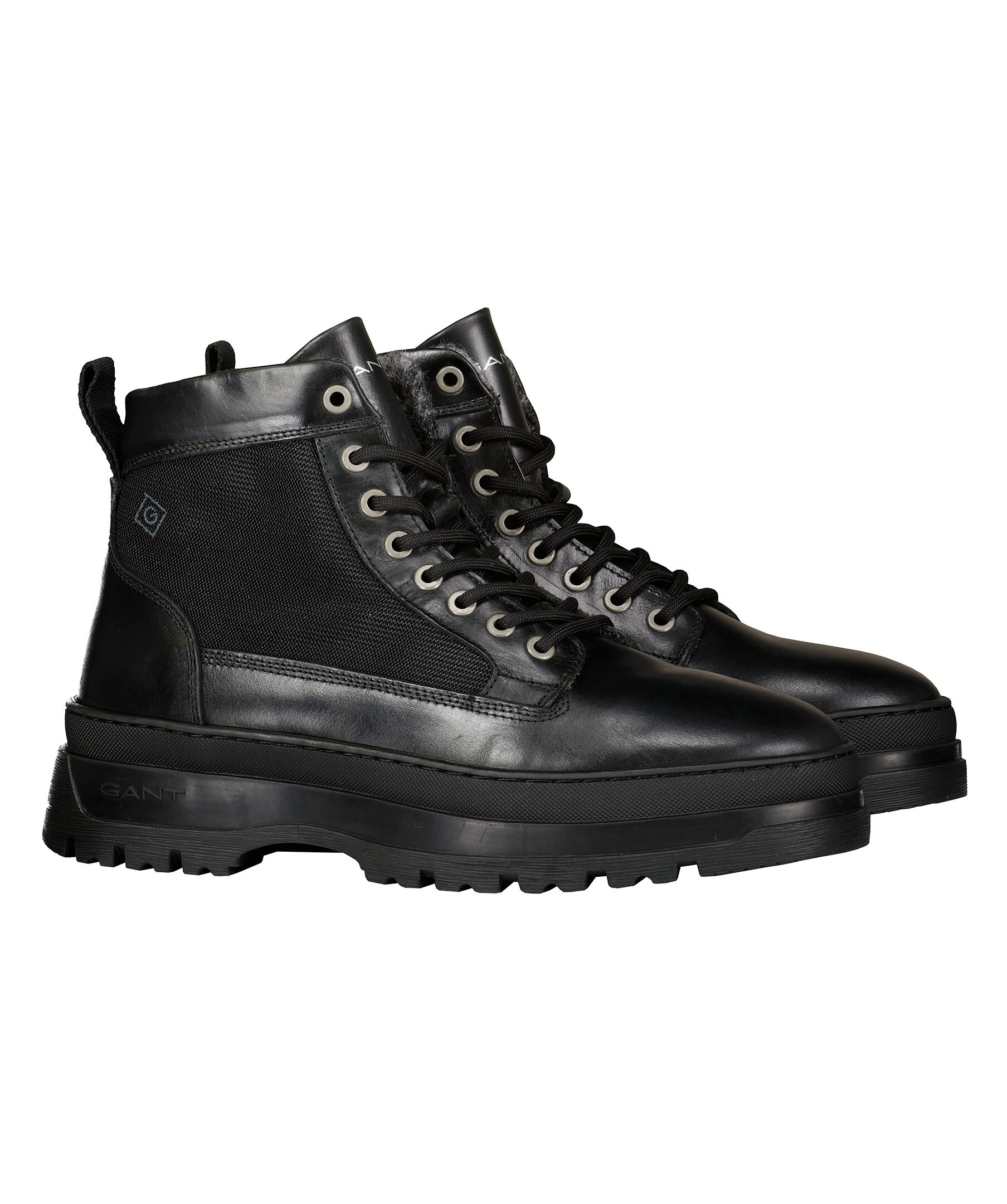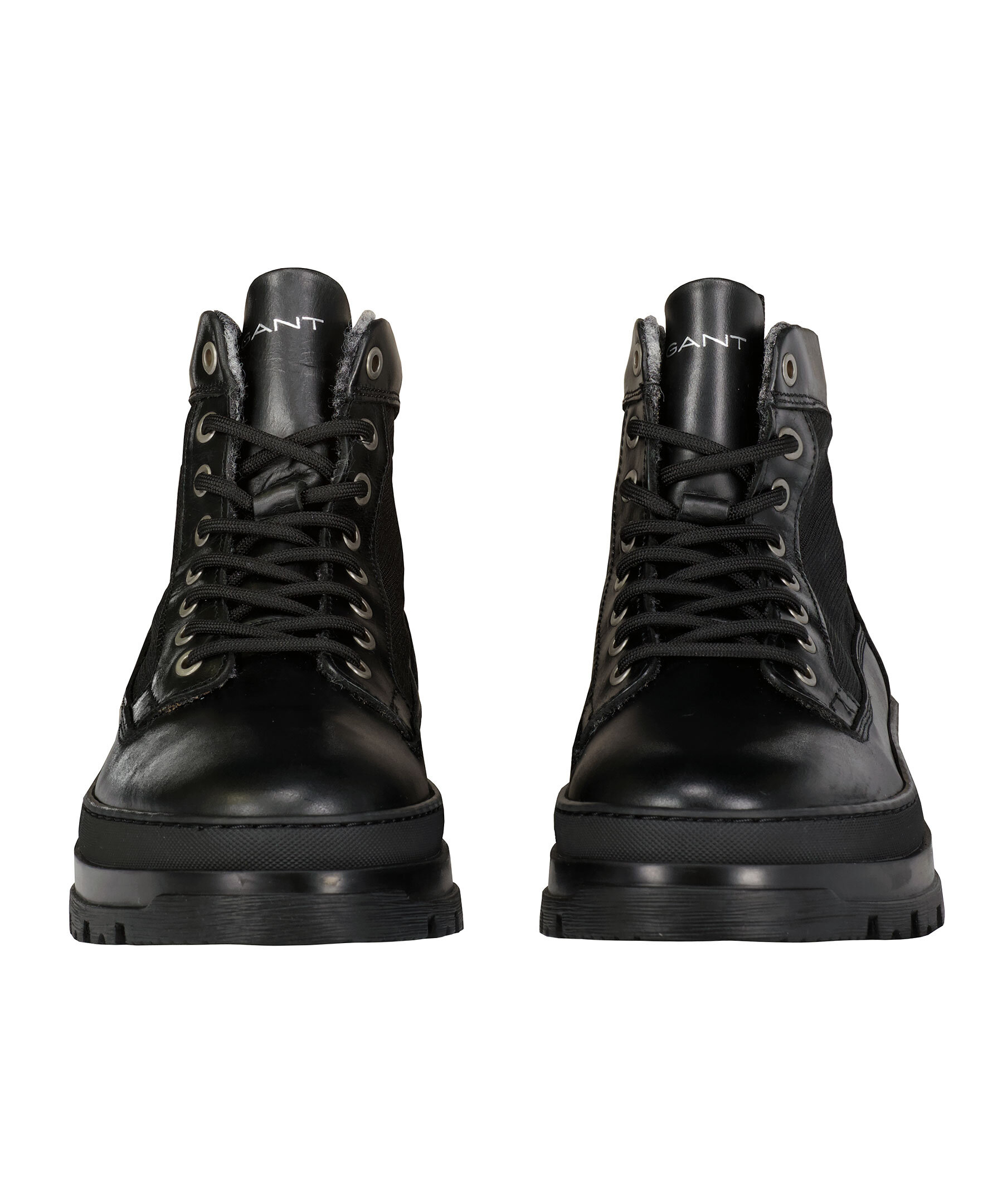 Svarta kängor med snörning från GANT. Ovansida i nylon med skinndetaljer. Inner sula och foder i värmande ull. Sula i kraftig gummi. Normal passform.