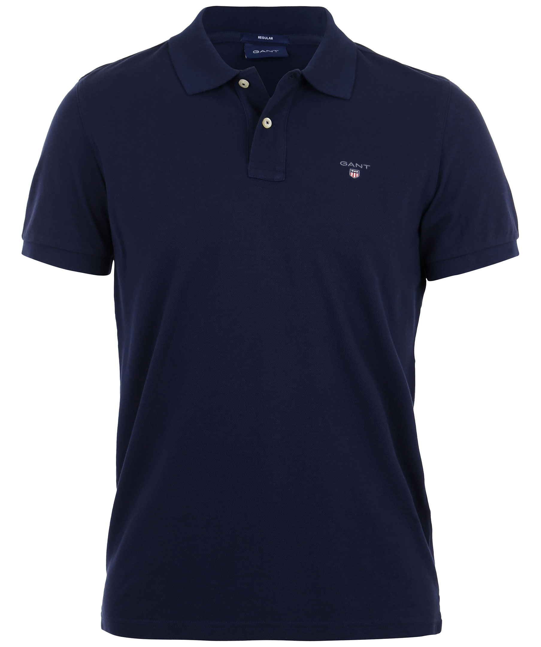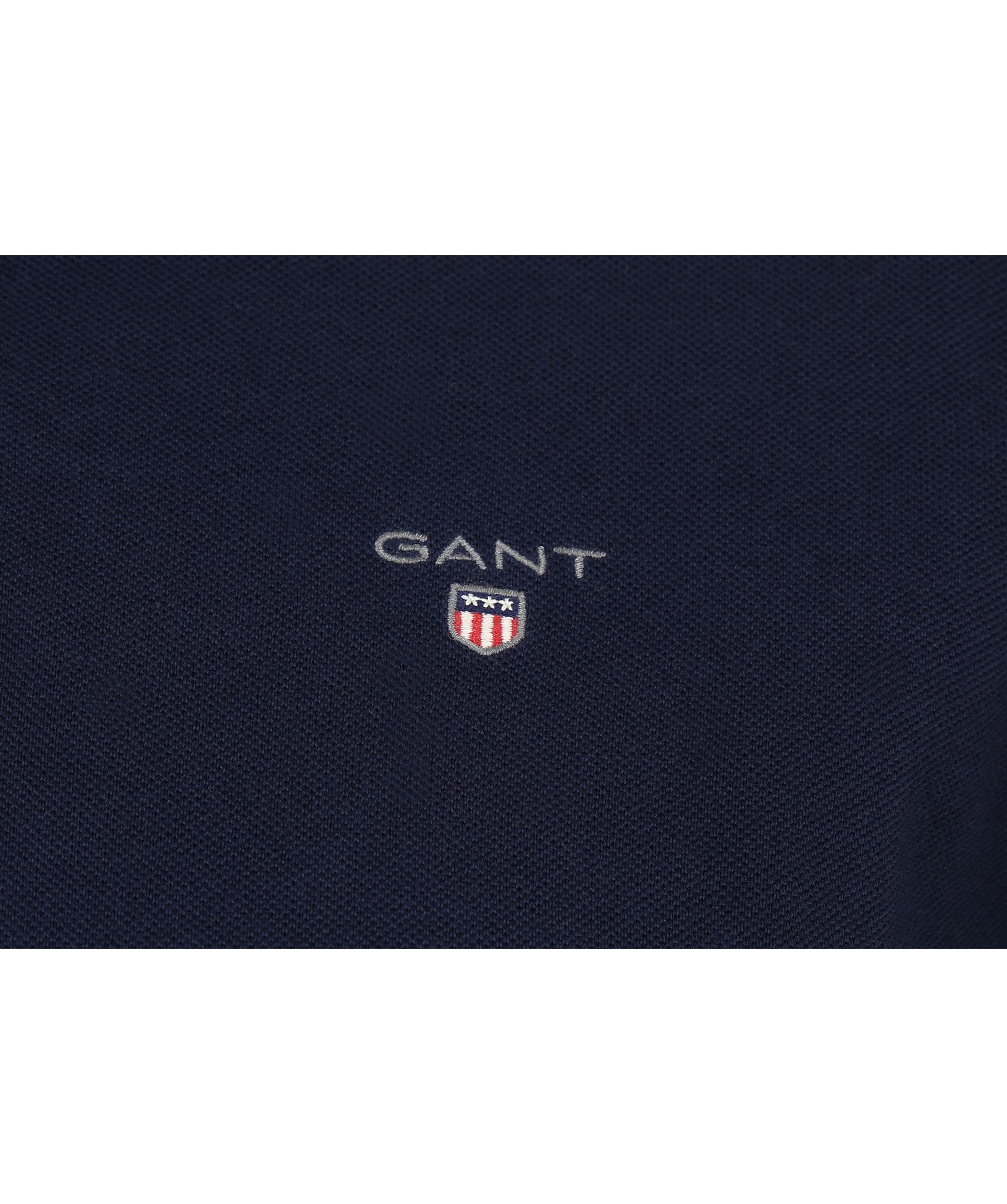 Marinblå kortärmad piké från Gant. Broderad logotyp till vänster på bröstet. Tillverkad i 100% bomull.