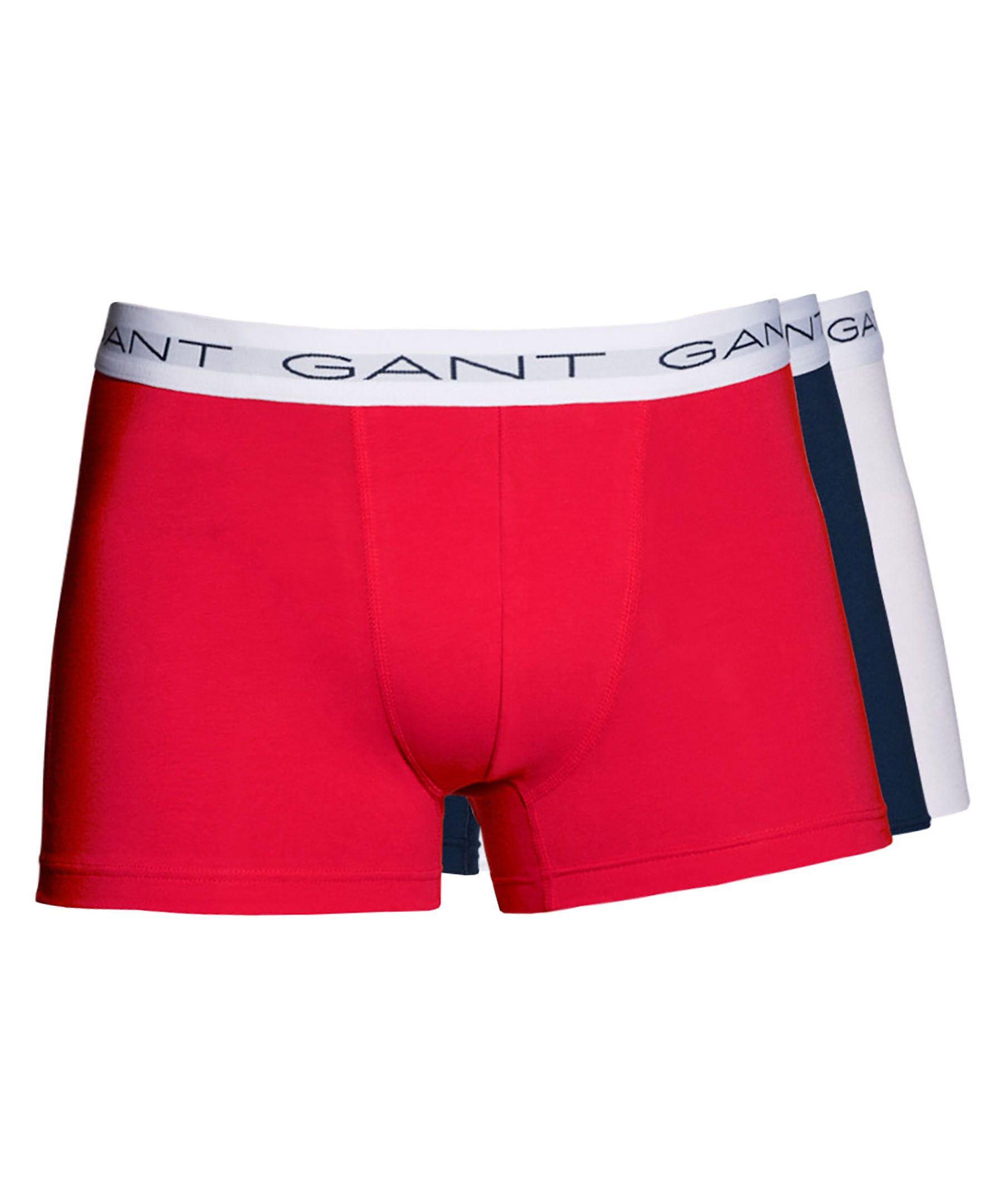 3-pack kalsonger från Gant i rött, marinblått och vitt.