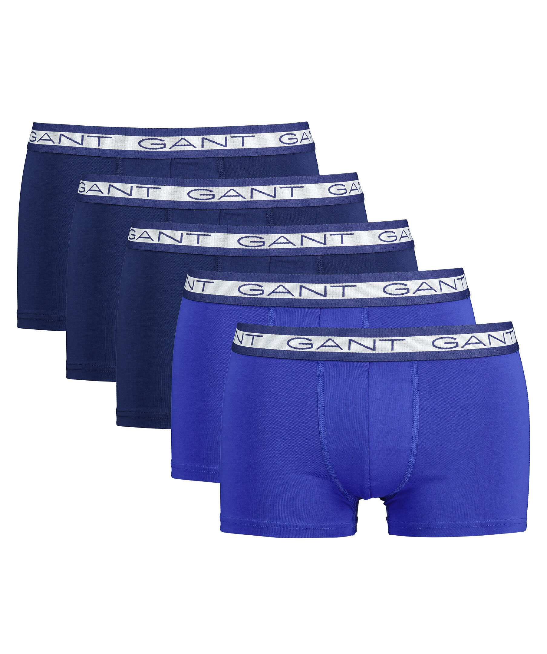 5-pack enfärgade kalsonger i två nyanser av blått. Trunk modell tillverkad i stretchig bomull. Alla har blå resor med ett vitt streck i mitten med logotyp på i midjan. *Resår med logotyp *Bomullsmix *Trunk modell