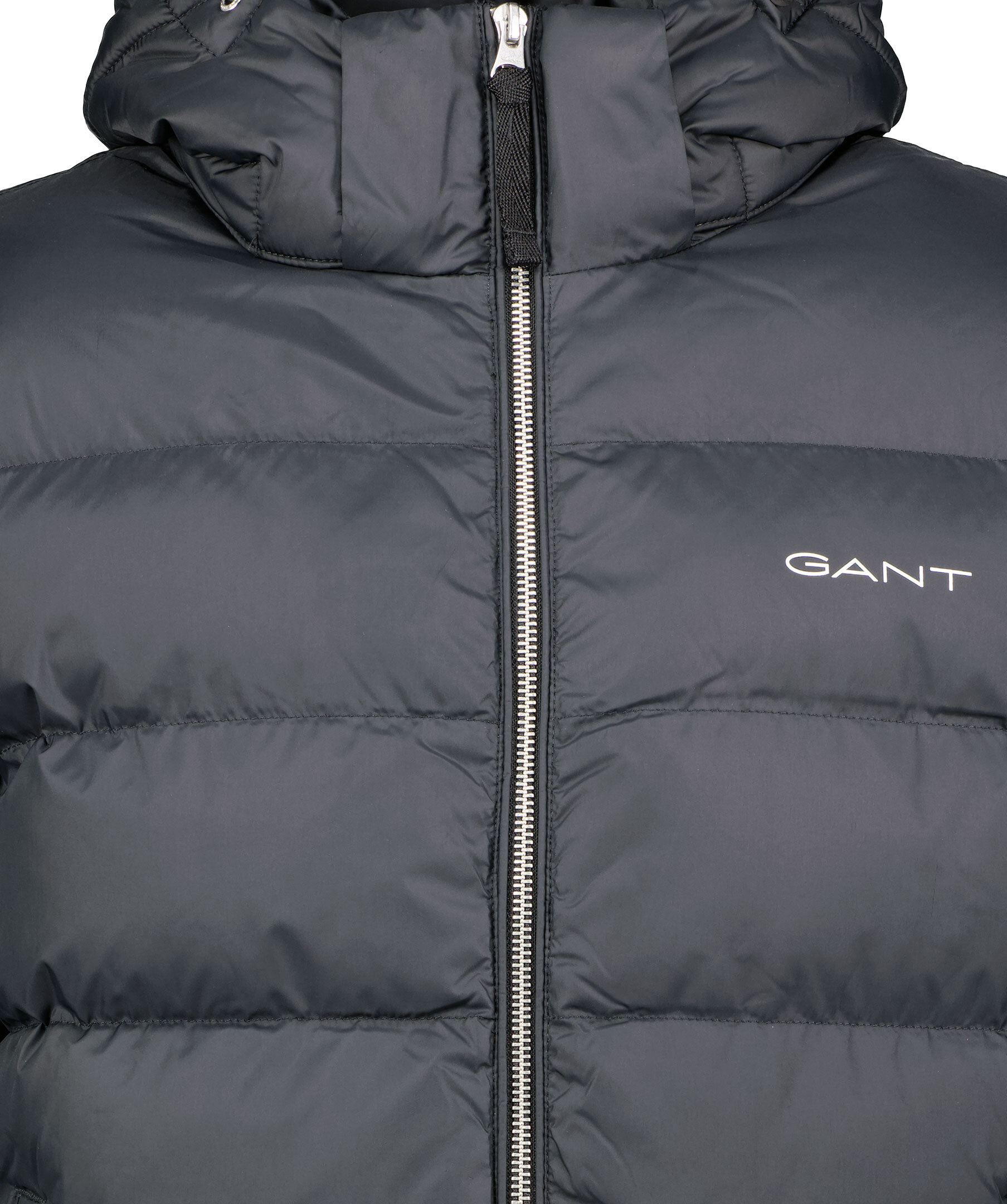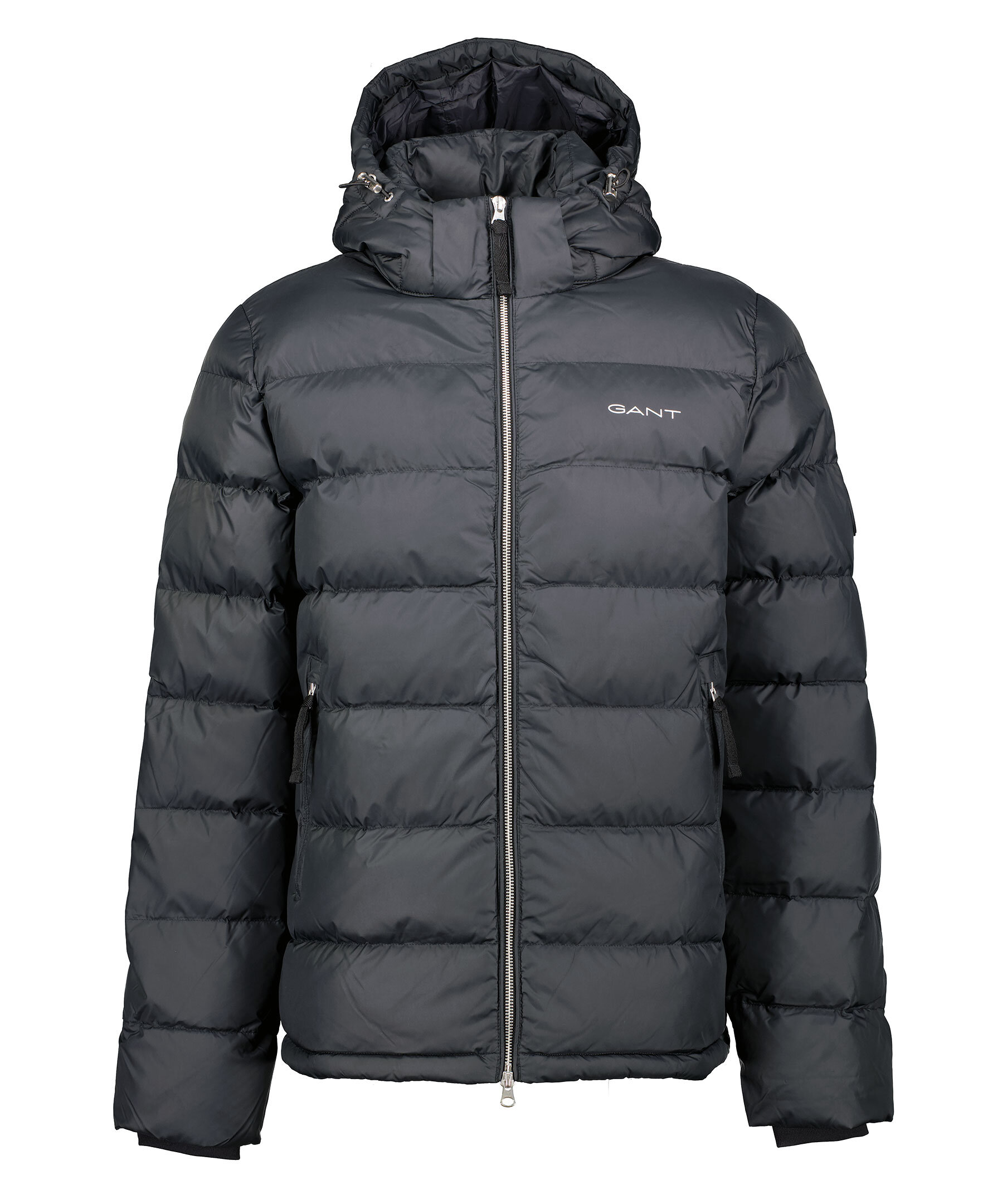 Svart höst- och vinterjacka från Gant. Jackan är fodrad med polyester och slutar vid höften. Stängs med en tvåvägsdragkedja och har två framfickor och tre innerfickor. Vit logotyp tryckt på bröstet och svart patch i gummi på vänster överärm. Luva med dragsko.