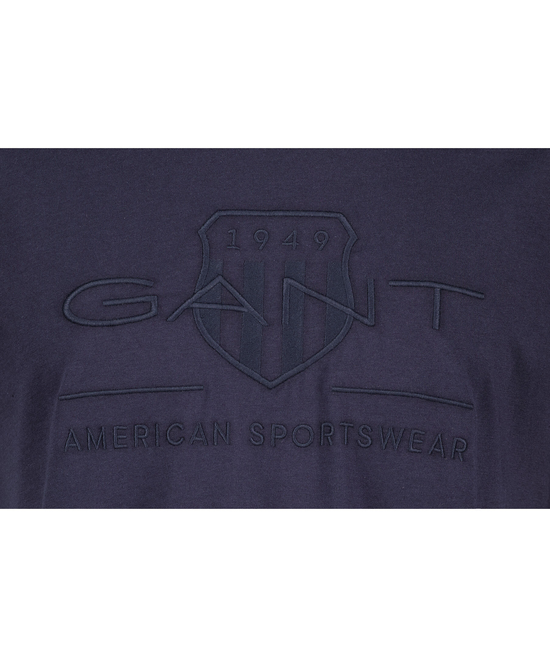 Mörkblå T-shirt från Gant. Rundad halsringning. Broderad ton i ton logotyp över bröstet. Normal Passform. Tillverkad i 100% bomull.