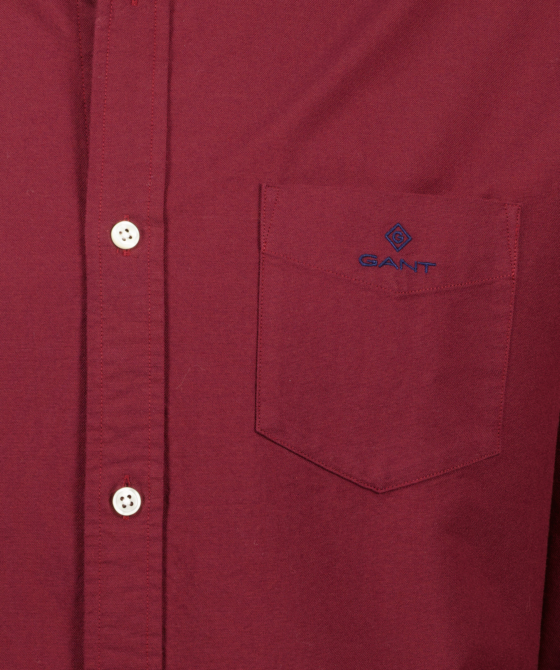 Vinröd oxfordskjorta från Gant i 100% bomull. Normal passform, button down-krage, bröstficka med logotyp, boxpleat och locket loop. Tröjan är gjord i en kraftigare oxfordväv än vanligt som passar sig bättre till svalare dagar.