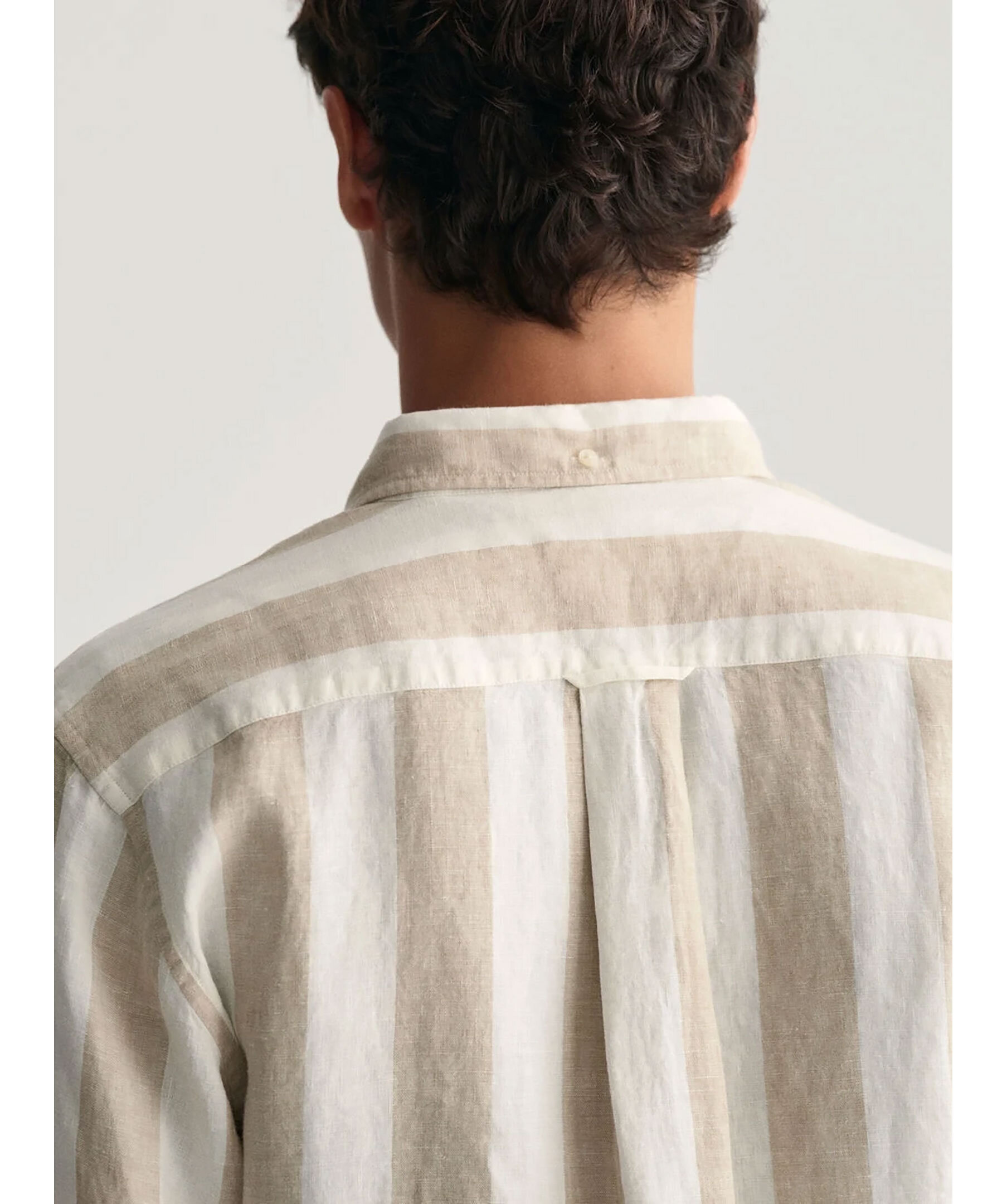 Vit och beige randig skjorta i linne från Gant. Stängs framtill med knappar. Button down-krage. Bröstficka på vänster sida med broderad logotyp. Enkla manschetter. Tillverkad i 100% Linne. Box pleat och locket loop i ryggen.
