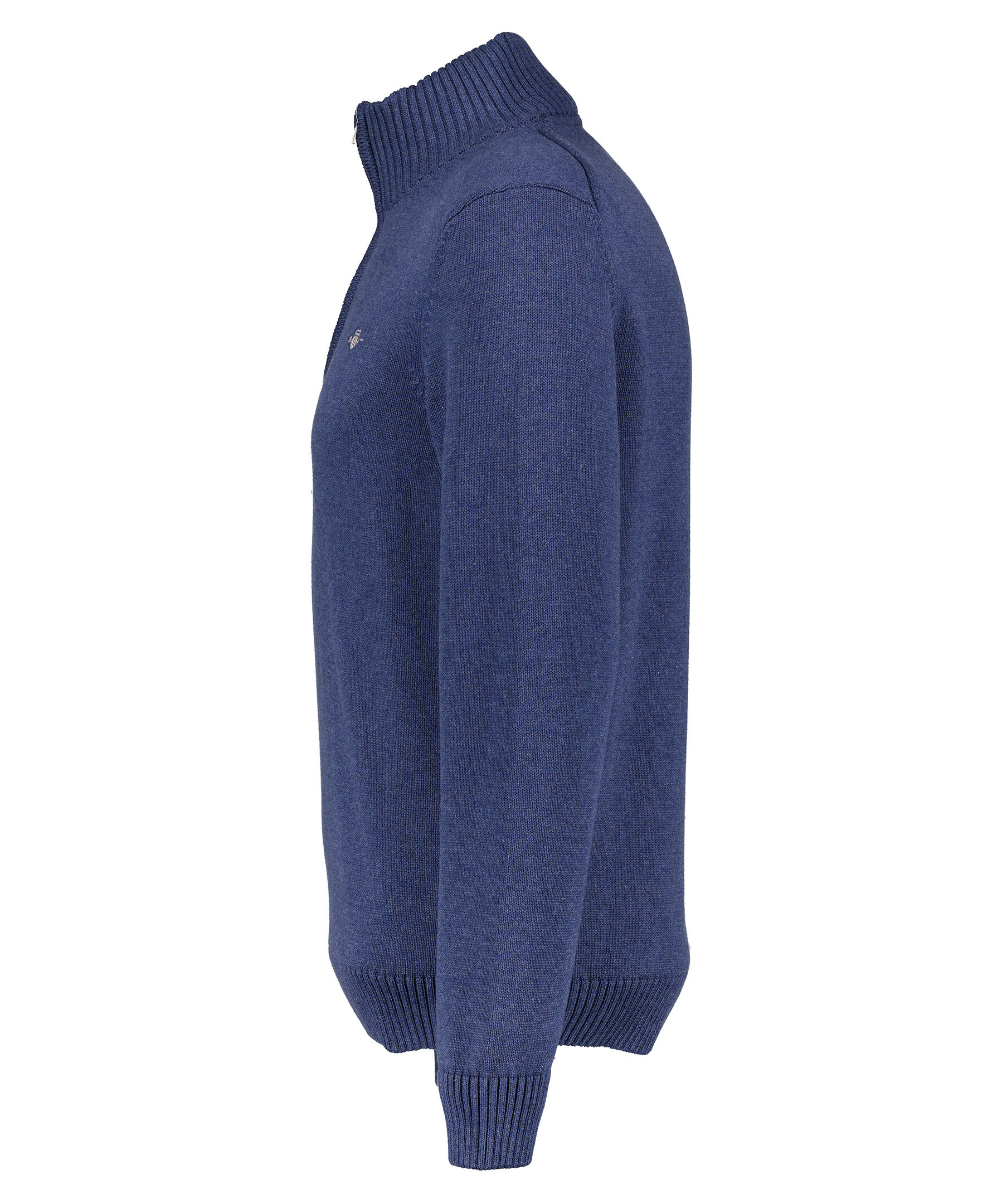 Blå tröja med krage och halv dragkedja i mellantjock bomull från Gant. Normal passform, med deras sköldlogotyp broderad på bröstet. Den är ett värmande stillager som du snyggt stylar med jeans eller välskurna byxor. Tillverkad i 100% bomull.
