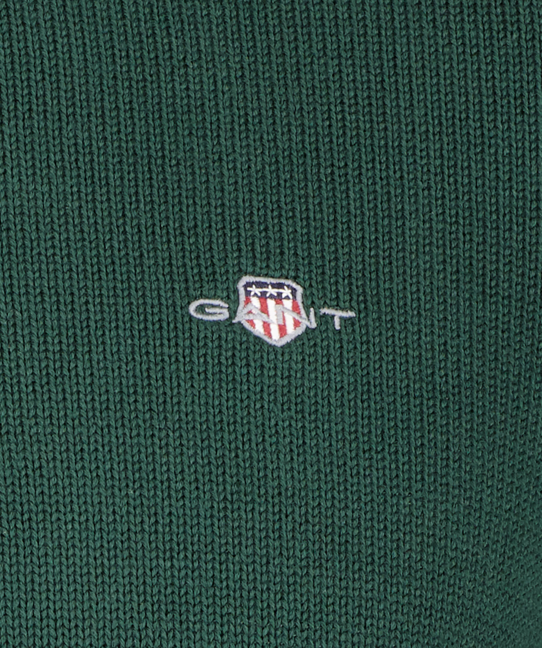 Skogsgrön tröja med krage och halv dragkedja i mellantjock bomull från Gant. Normal passform, med deras sköldlogotyp broderad på bröstet. Den är ett värmande stillager som du snyggt stylar med jeans eller välskurna byxor. Tillverkad i 100% bomull.