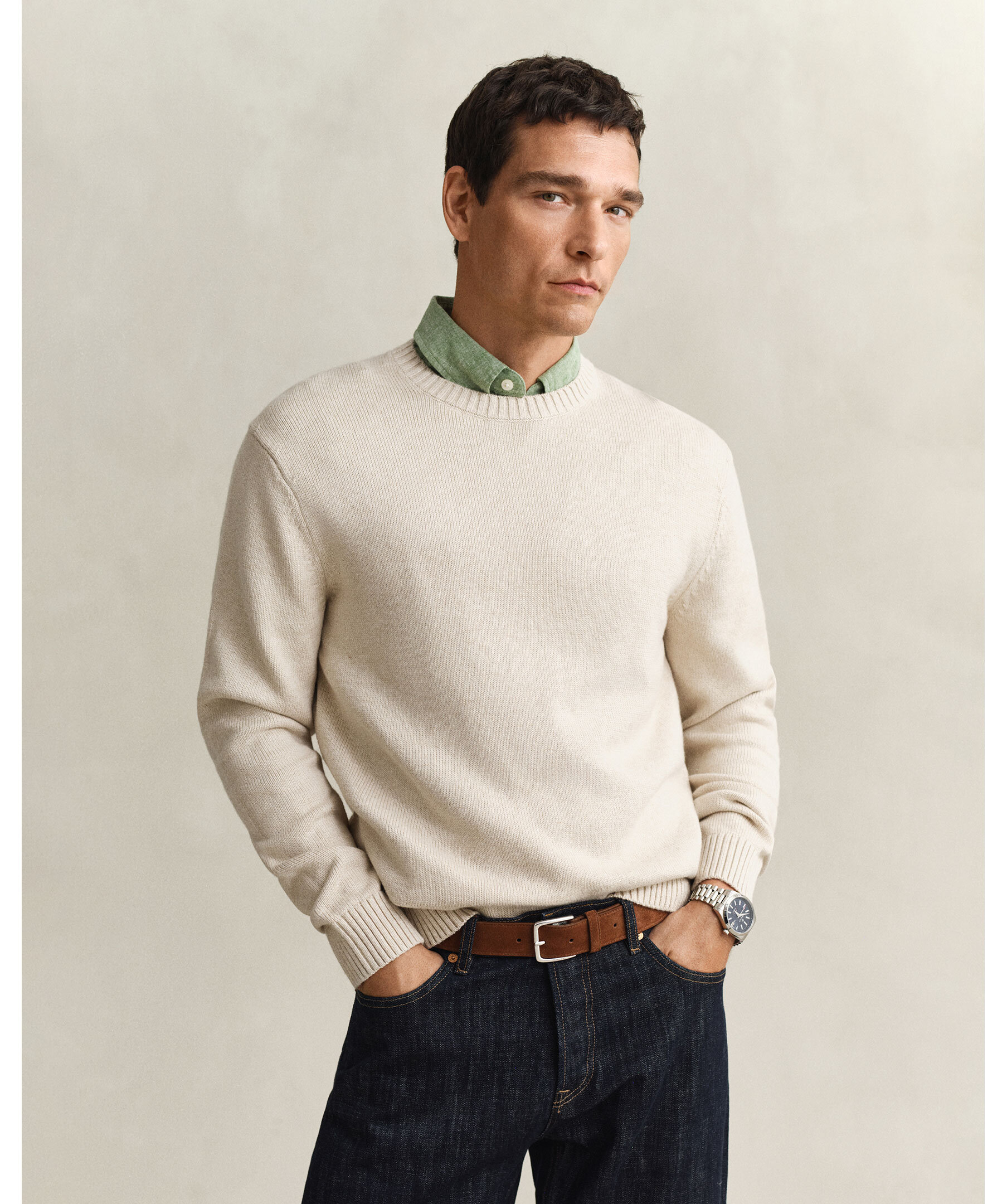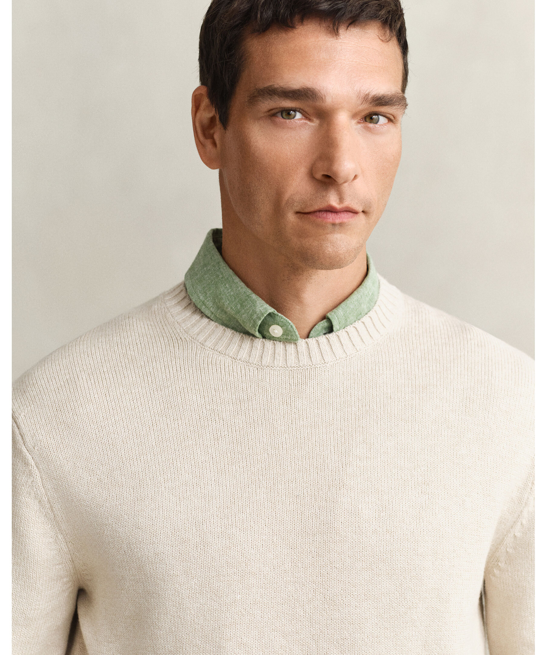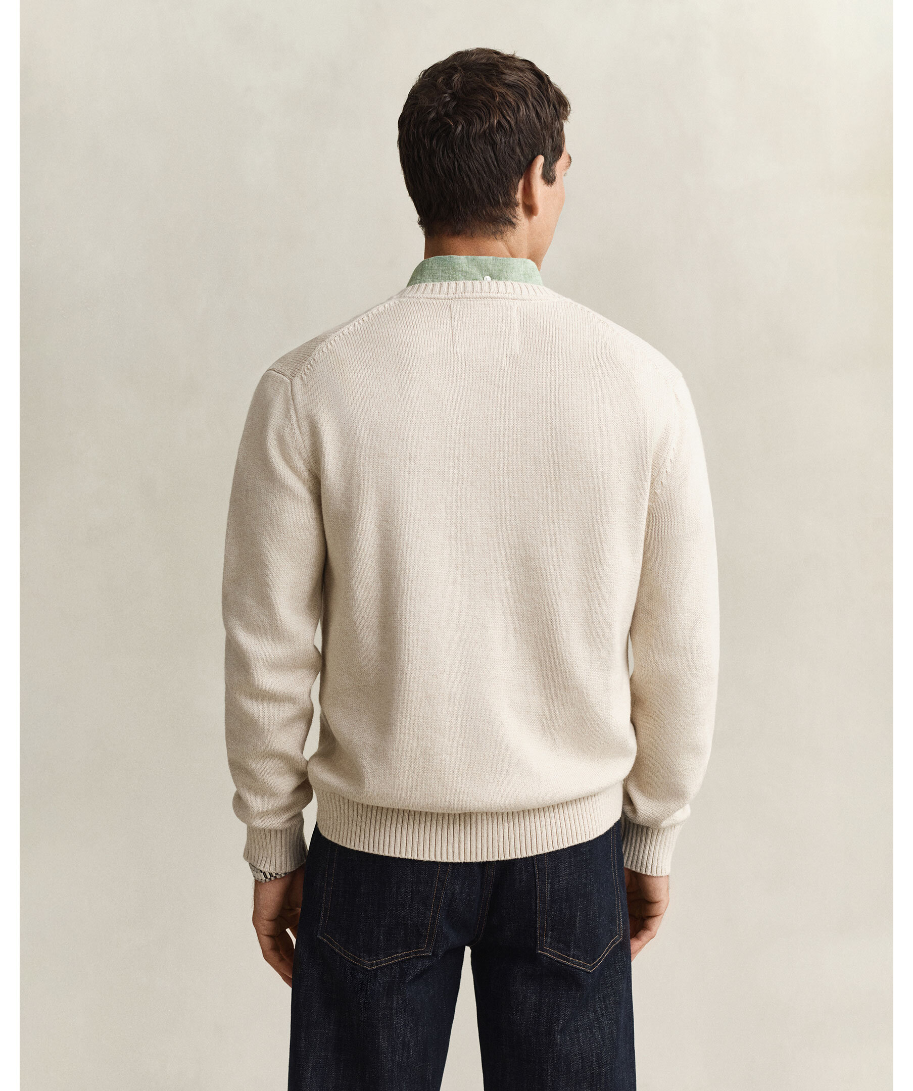 Stickad tröja från Gant, tillverkad i en bomulls- och kashmirblandning med mjuk känsla och diskret slubstruktur. Normal passform med rund halsringning och ribbade detaljer vid hals, nederkant och ärmslut.