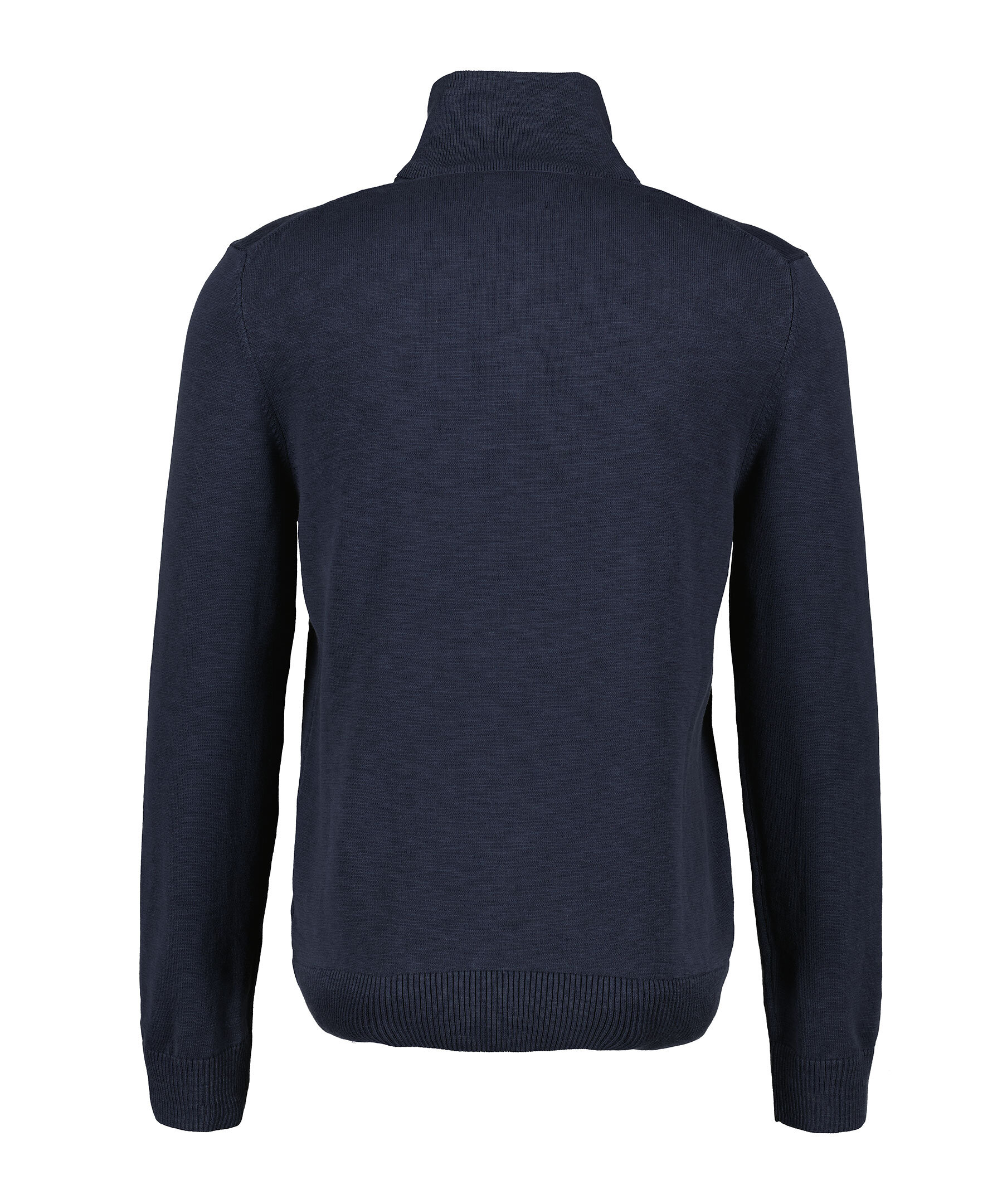 Marinblå, finstickad half-zip tröja från Gant. Tillverkad i 100% bomull. Skuren för en normal passform och har ribbade detaljer vid fållen och ärmsluten och en GANT-logotyp broderad på bröstet.