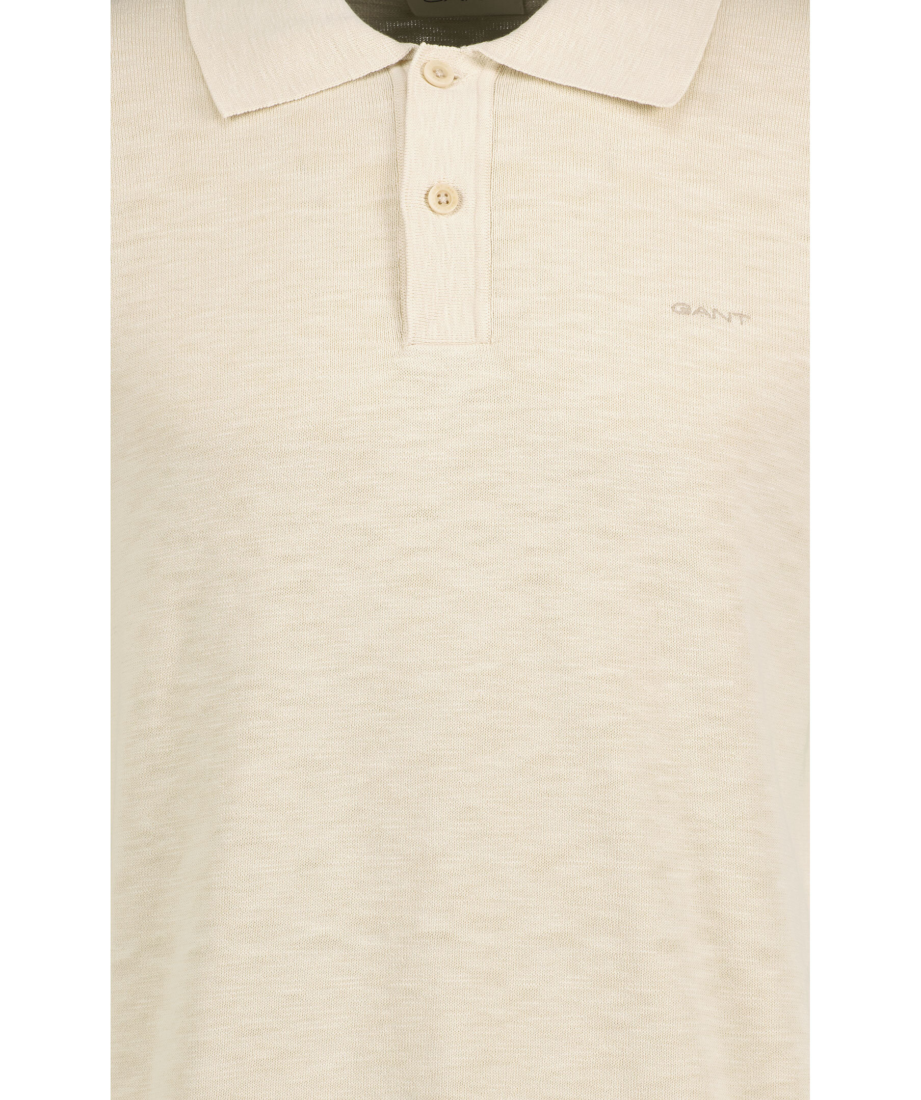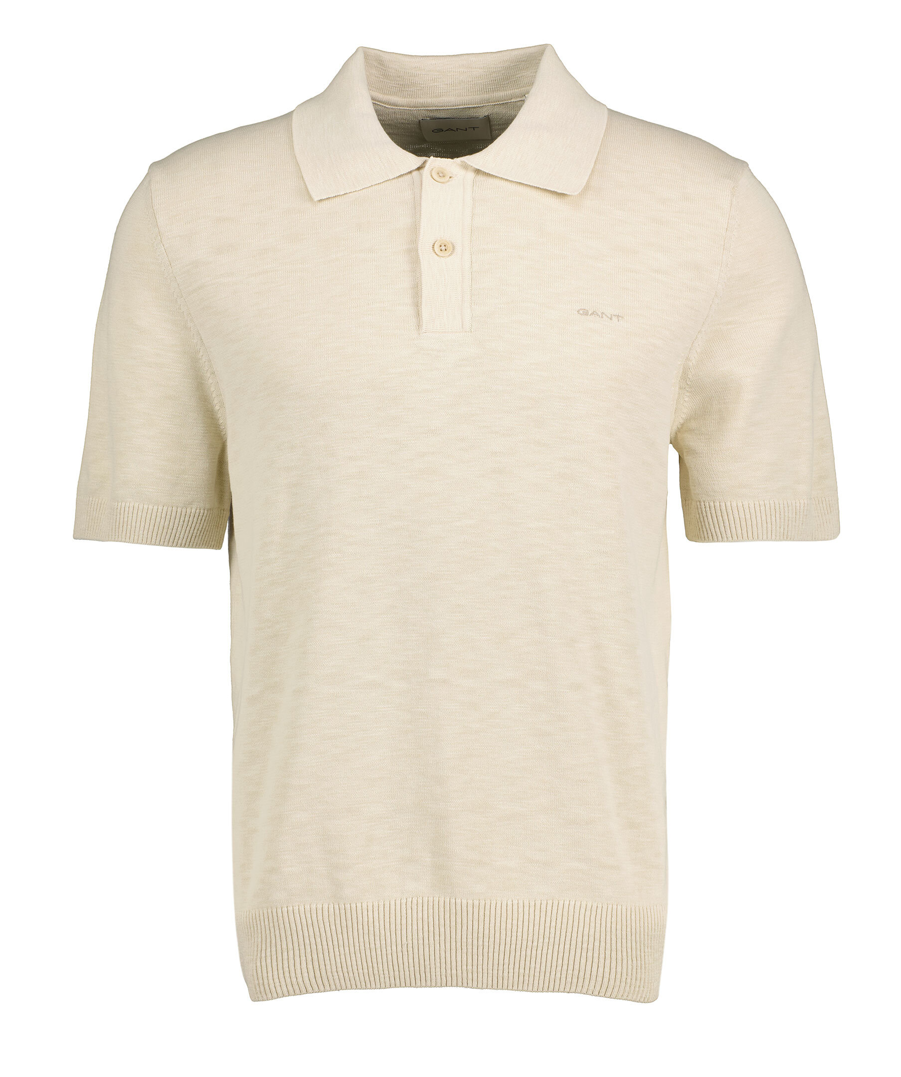 Benvit finstickad piké från Gant. Broderad logotyp på vänster bröst. Ribbstickad krage, ribbstickade muddar vid ärm- och plaggslut. Tillverkad i 100% Bomull.