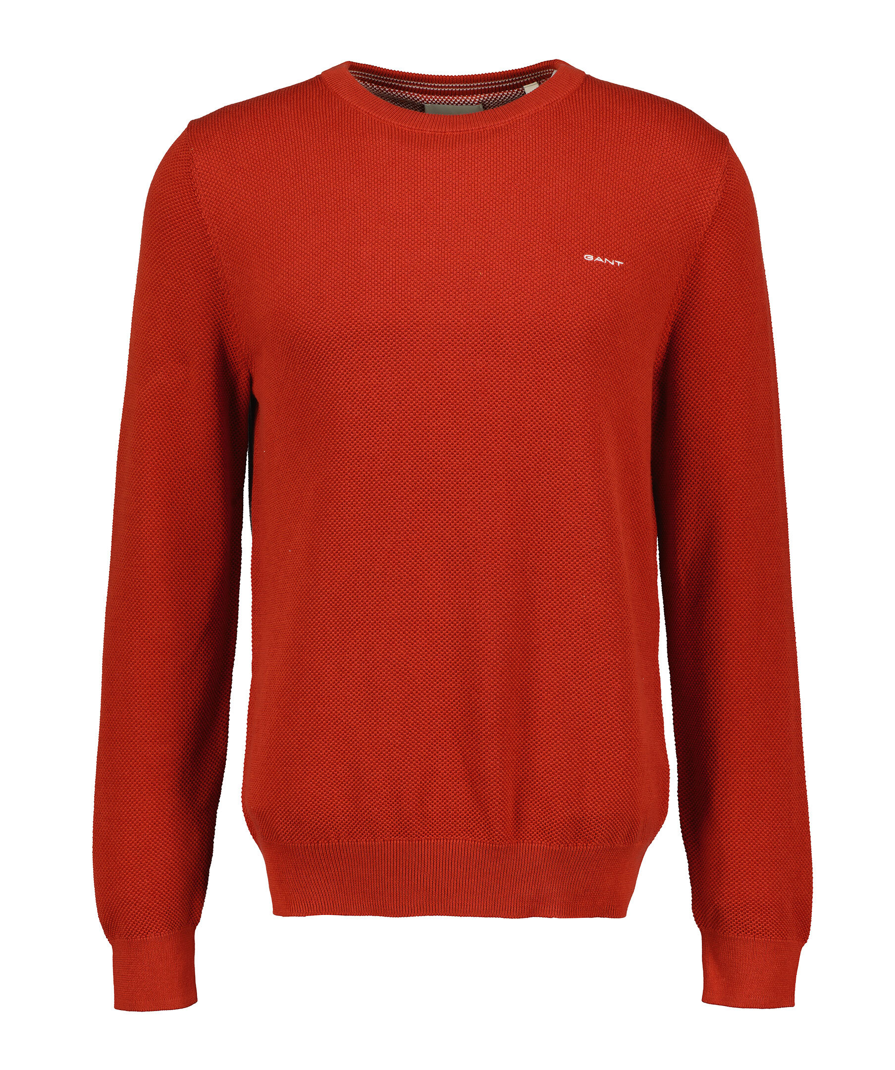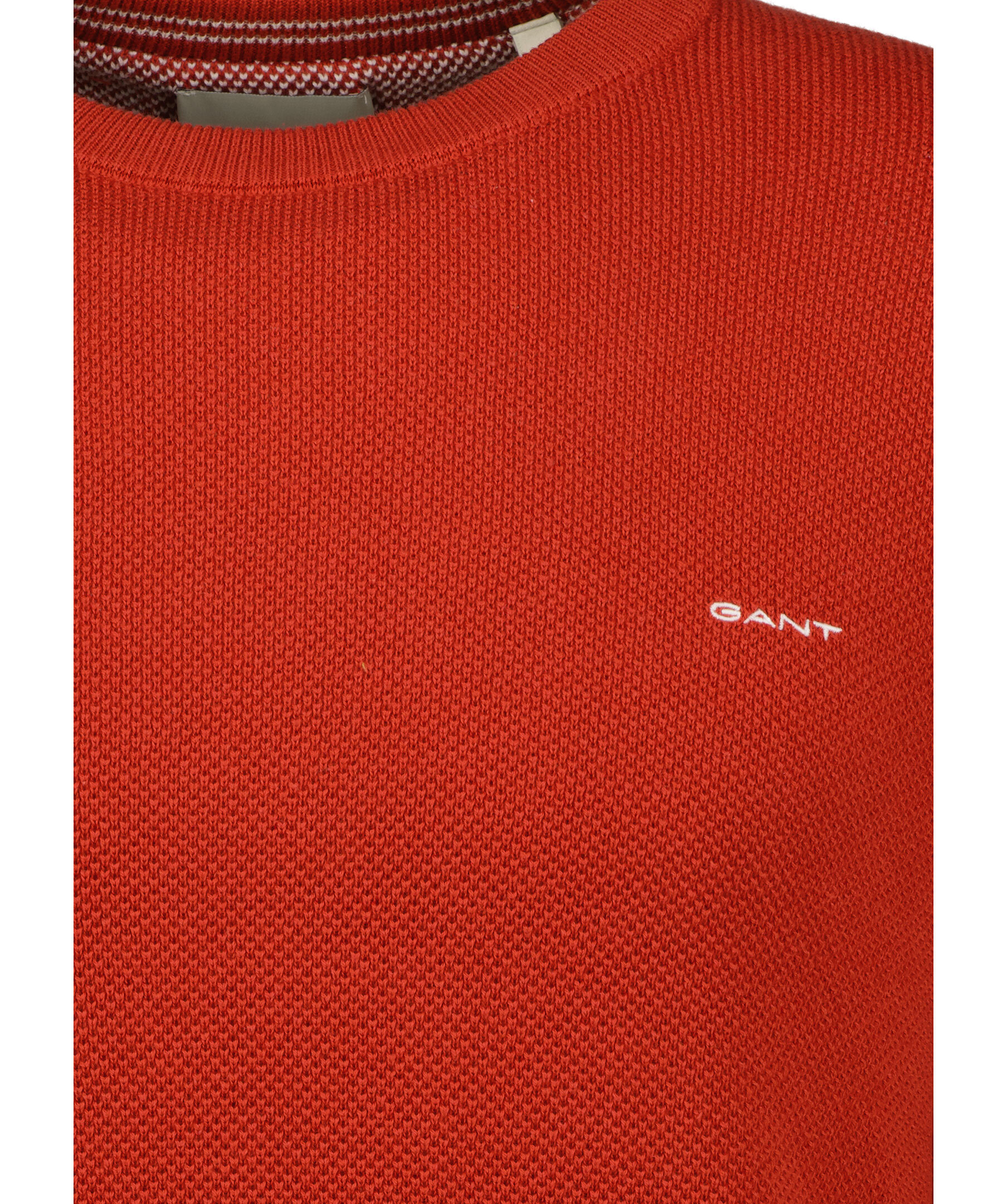 Röd tröja i tunn bomullspiké med rund halsringning från Gant. Ribbstickad krage och muddar samt broderad Gant-logotyp på bröstet. Tillverkad i bomull.