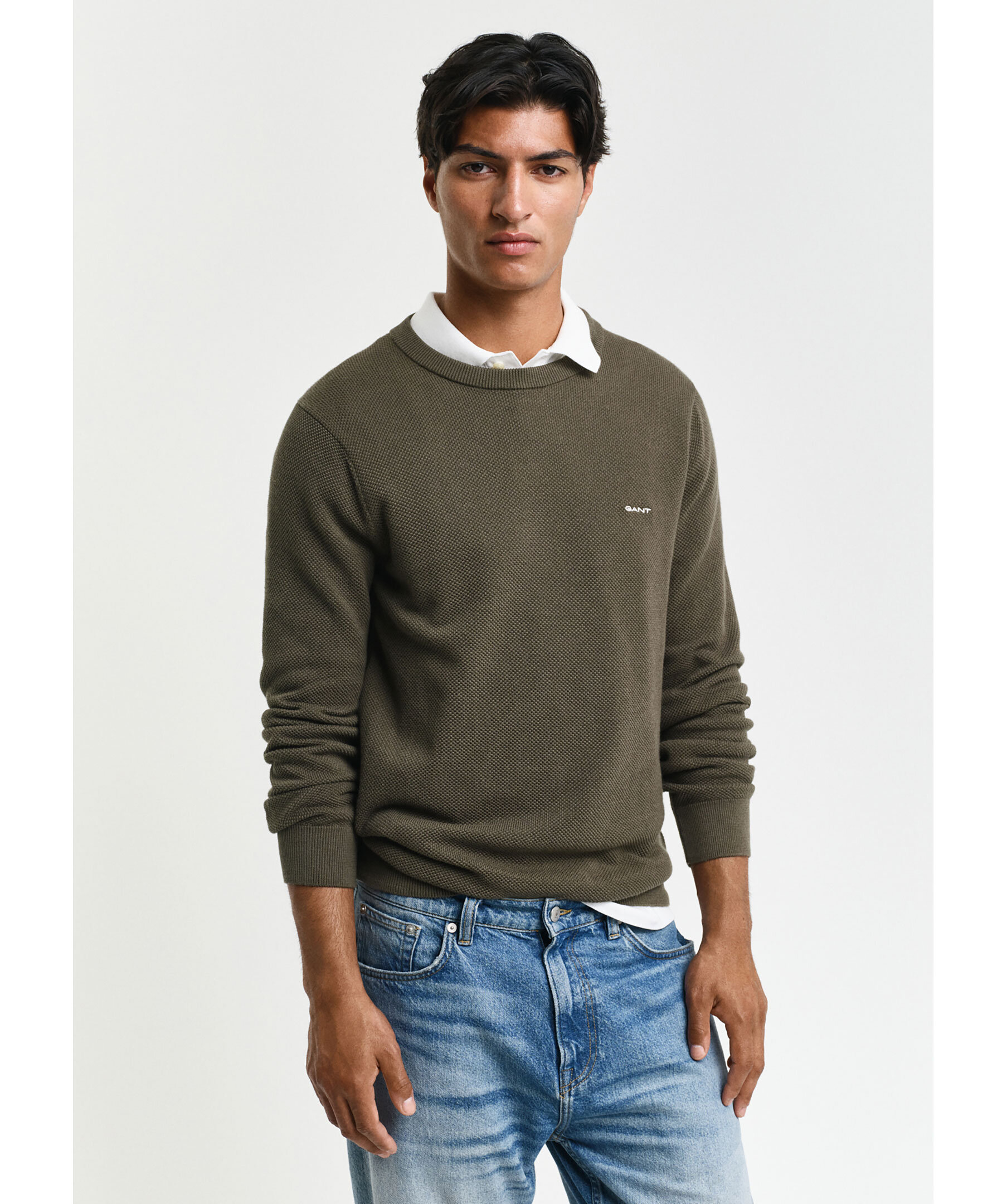 Gant Cotton pique c-neck - Grön