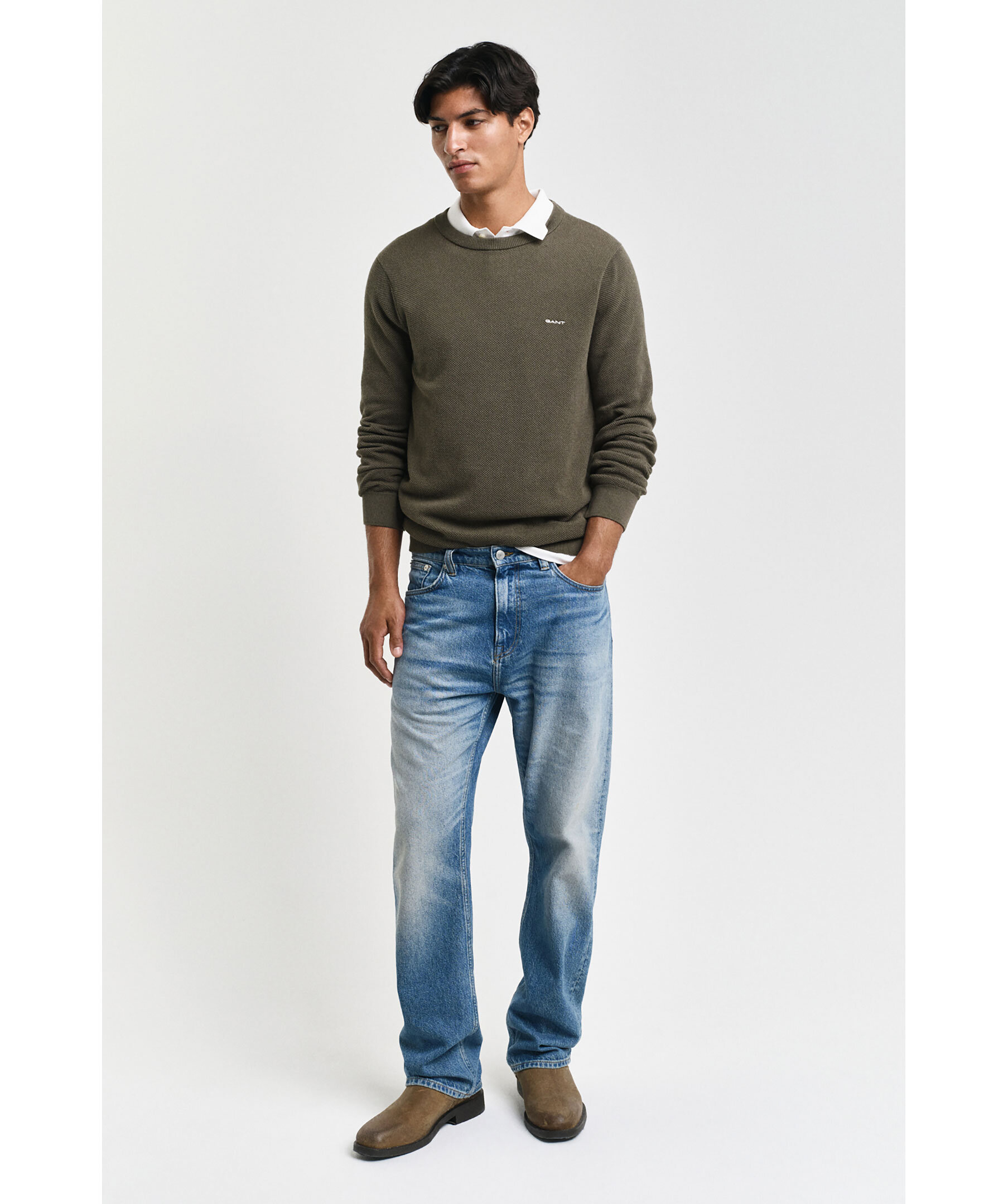 Grön tröja i tunn bomullspiké med rund halsringning för en enkel look från Gant. Den har en normal passform och deras klassiska GANT-logotyp broderad på bröstet. Ribbstickad krage och muddar. Den kommer garanterat bli en storfavorit i garderoben.