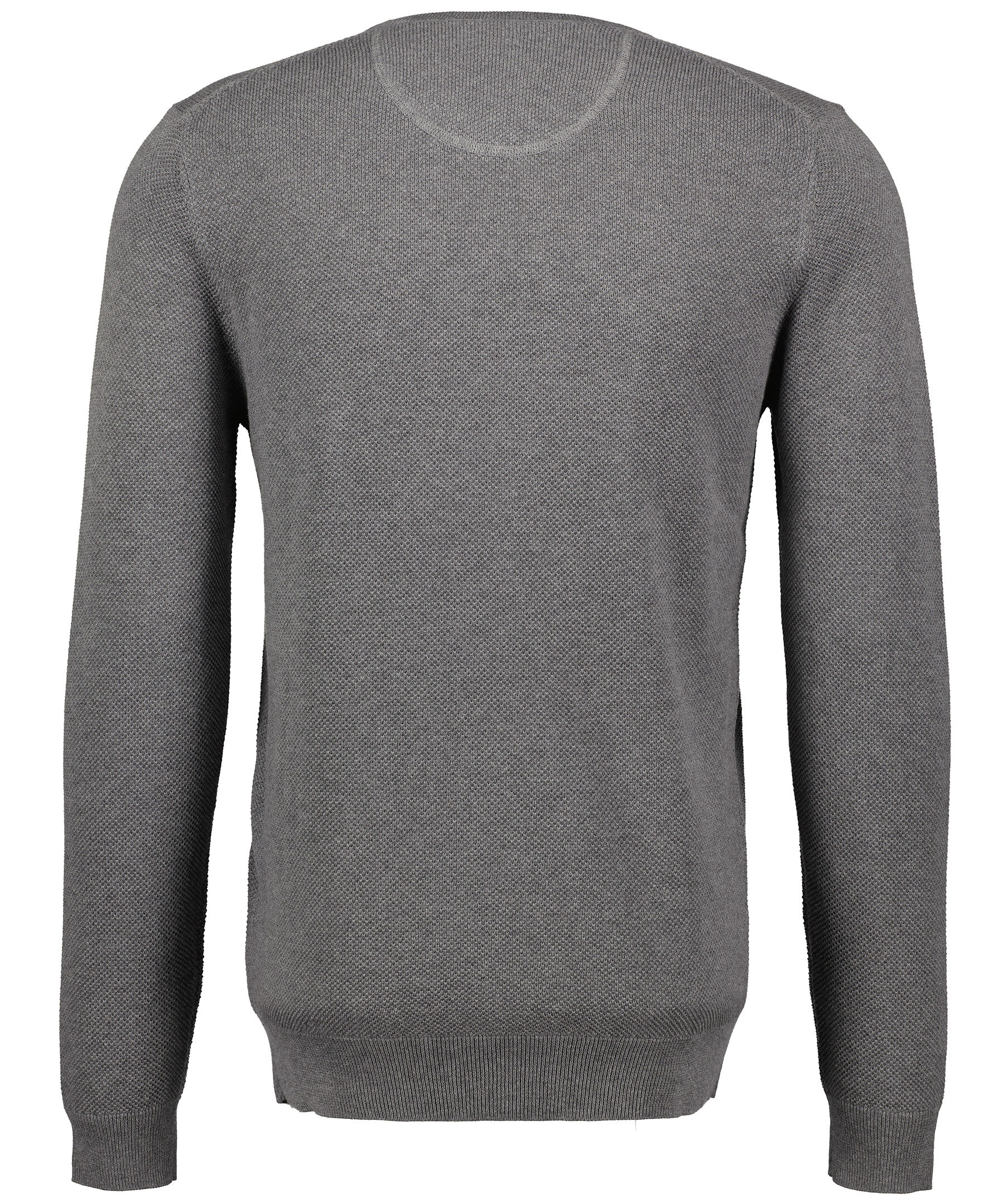 Grå stickad tröja i 100% bomull från Gant. Logotyp broderad på vänster sida av bröstet och ribbstickad krage, ärm och plaggslut. Rundad halsringning.