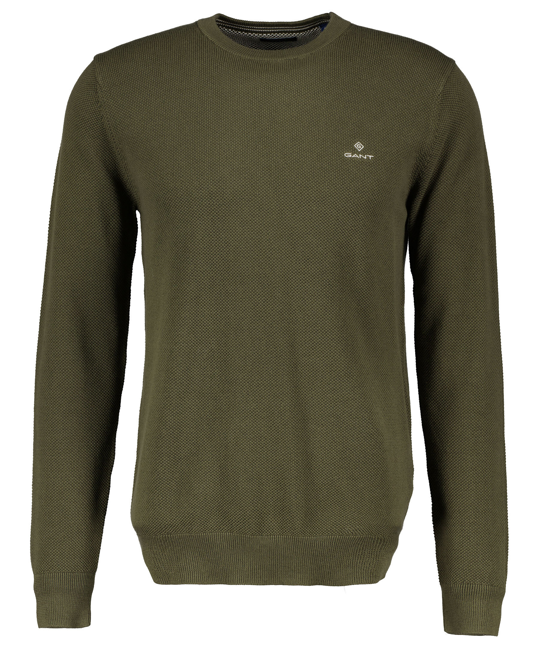 Olivgrön, långärmad tröja i pikéstruktur från Gant. Broderad logotyp i vitt på bröstet. Normal passform, rundad hals och ribbade muddar.