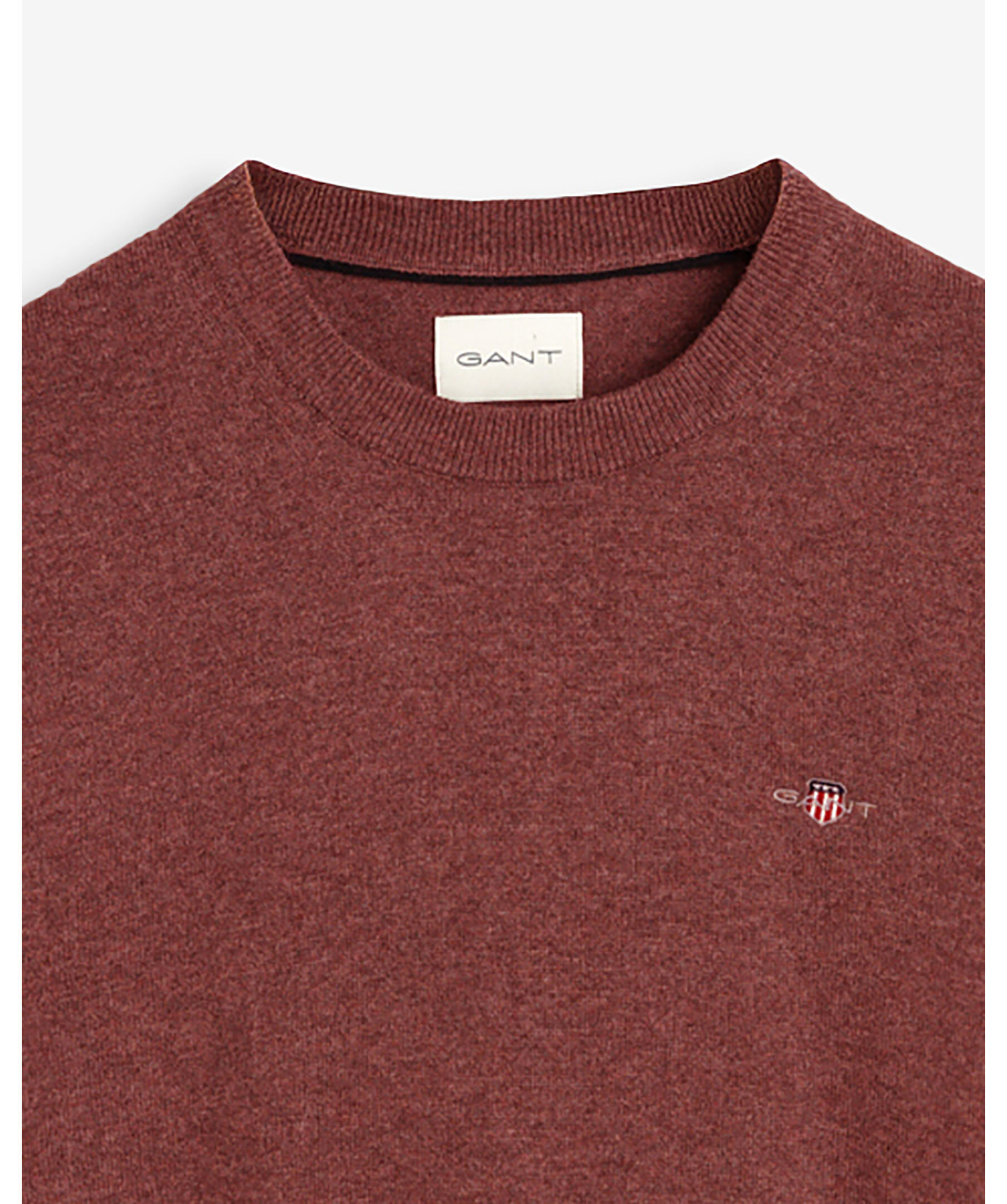 Roströd, finstickad pullover från Gant. Tröjan har en rundad, ribbstickad halsringning, ribbstickade muddar vid ärm- och plaggslut samt broderad logotyp på bröstet. Tillverkad i en bomull- och ullblandning.