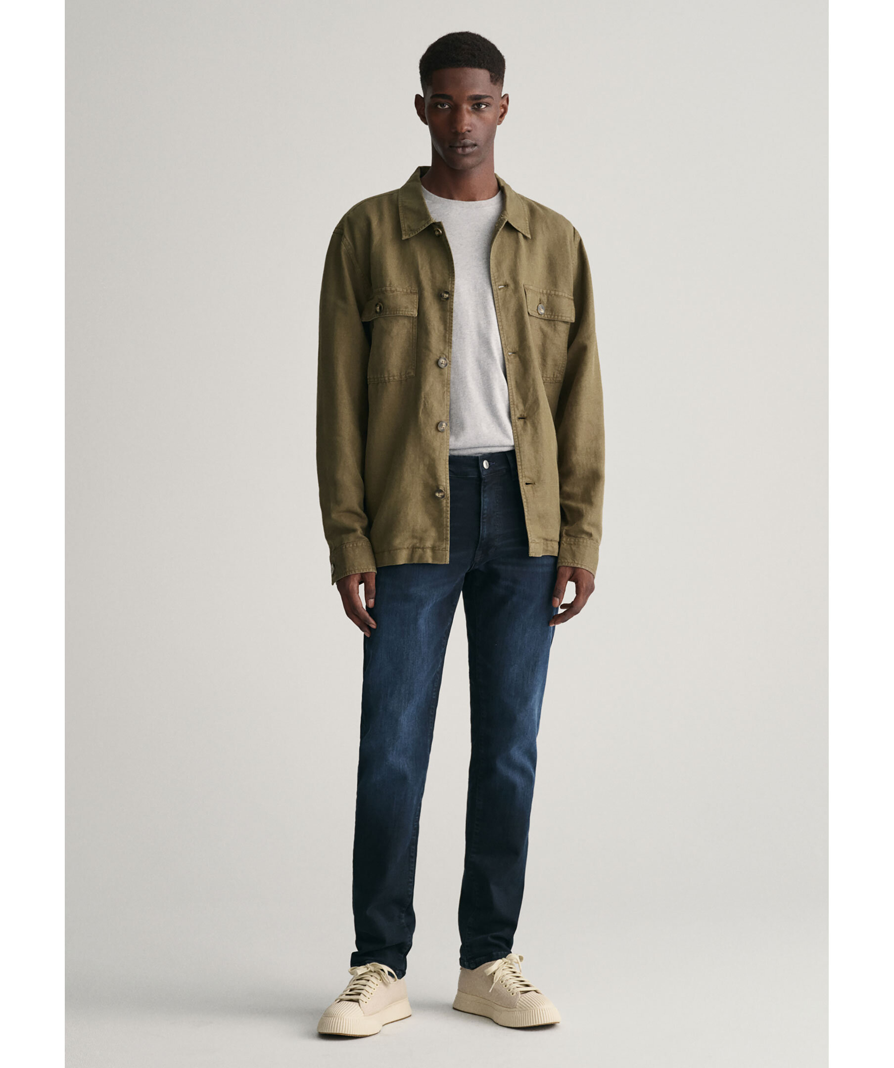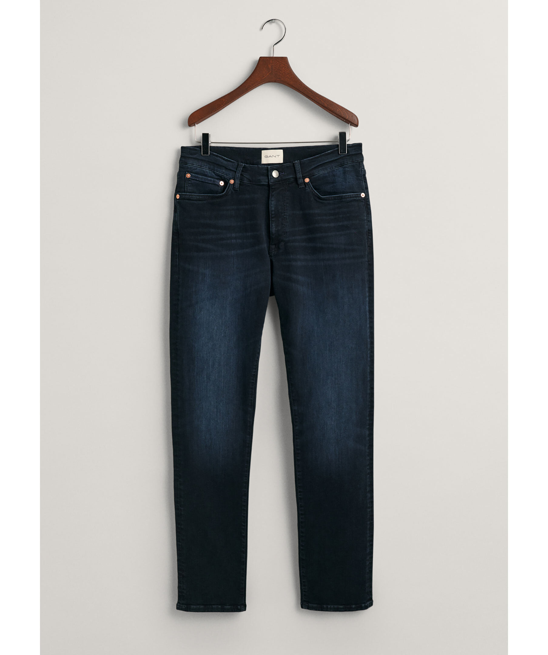 Mörkblåa jeans från Gant. Jeansen har en medelhög midja och extra slim fit från höft till vrist för en strömlinjeformad silhuett. De har fem fickor och ett Gant-märke baktill. Tillverkade i en bomullsblandning.