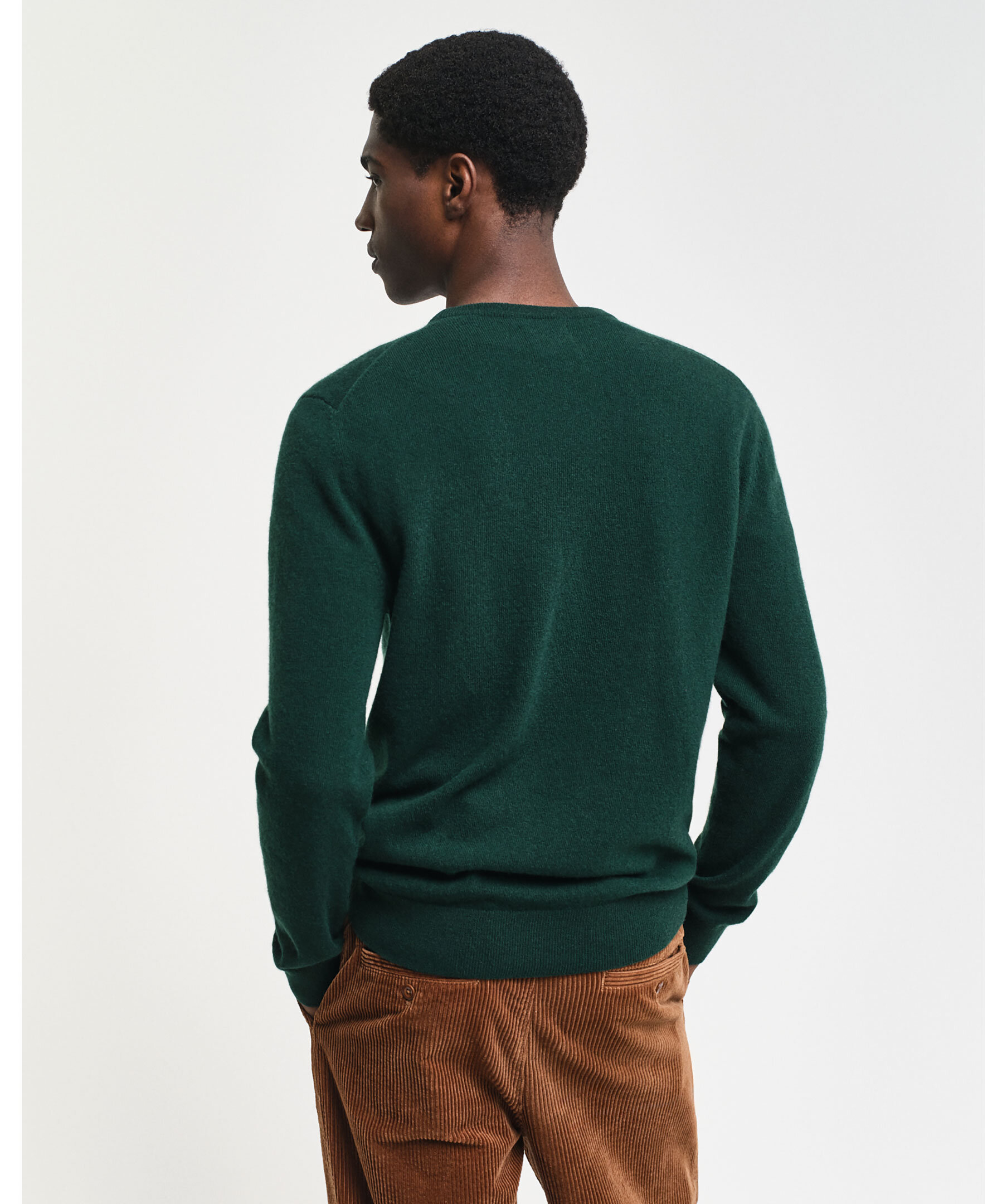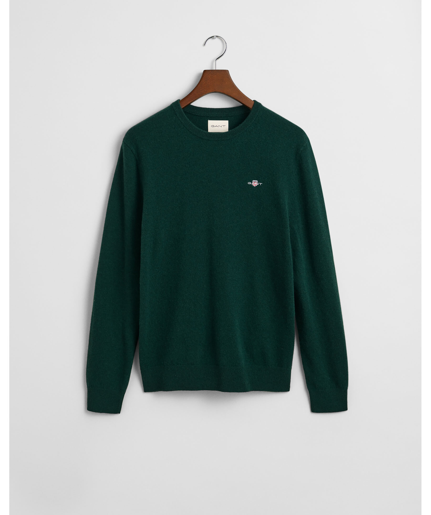 Mörkgrön stickad tröja från GANT. Tröjan är stickad i extra fin lammull för en supermjuk känsla och är en vardagsklassiker som passar att bära över skjortor eller som den är. Normal passform, slätstickad struktur, klassisk rund halsringning, ribbstickade detaljer och GANT-sköld broderad på bröstet.